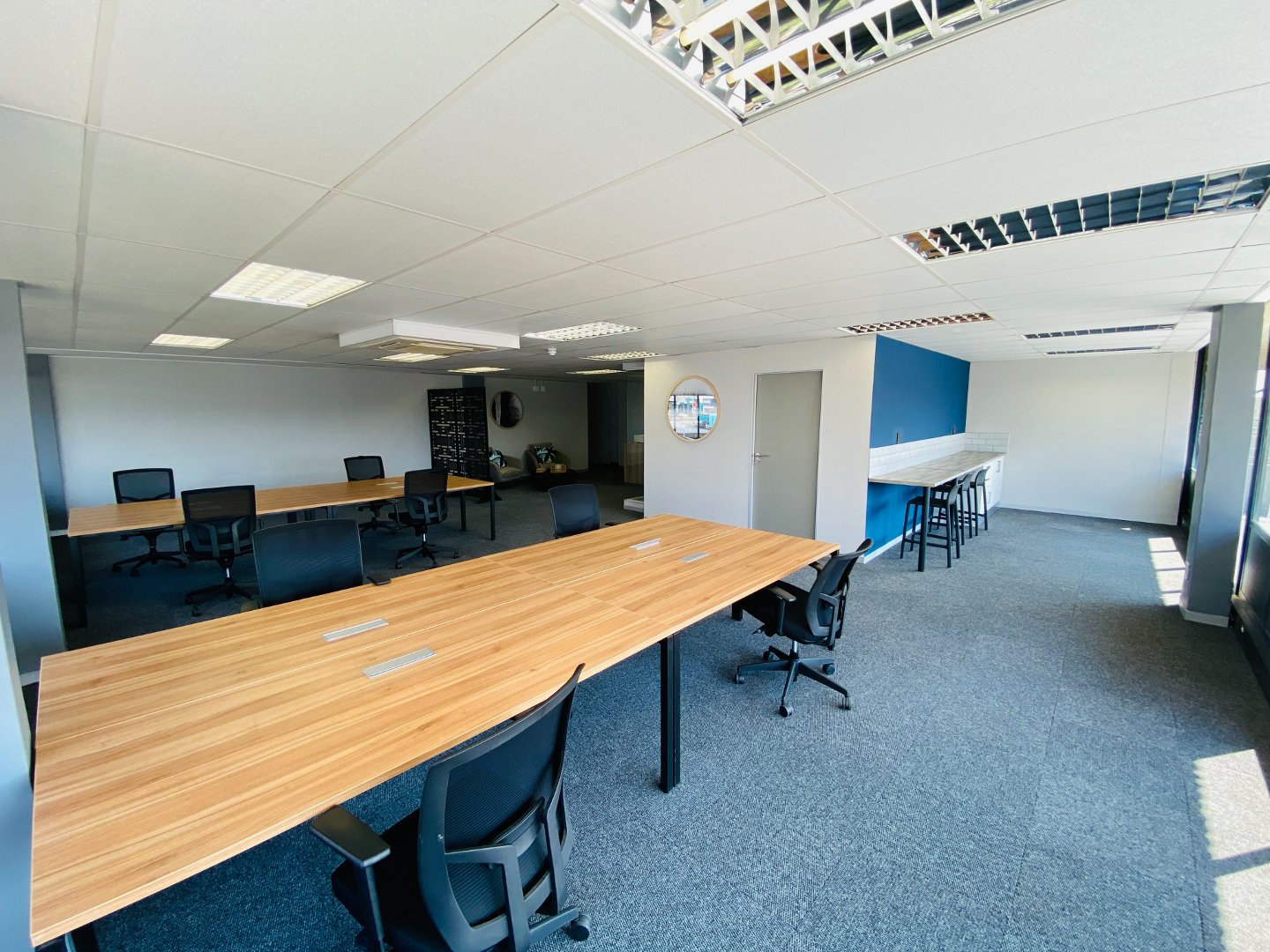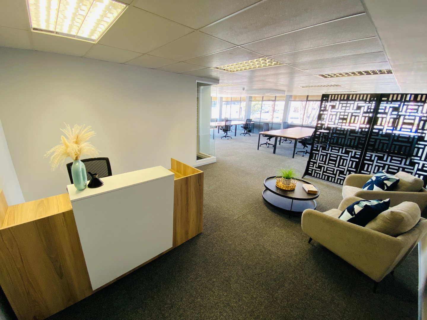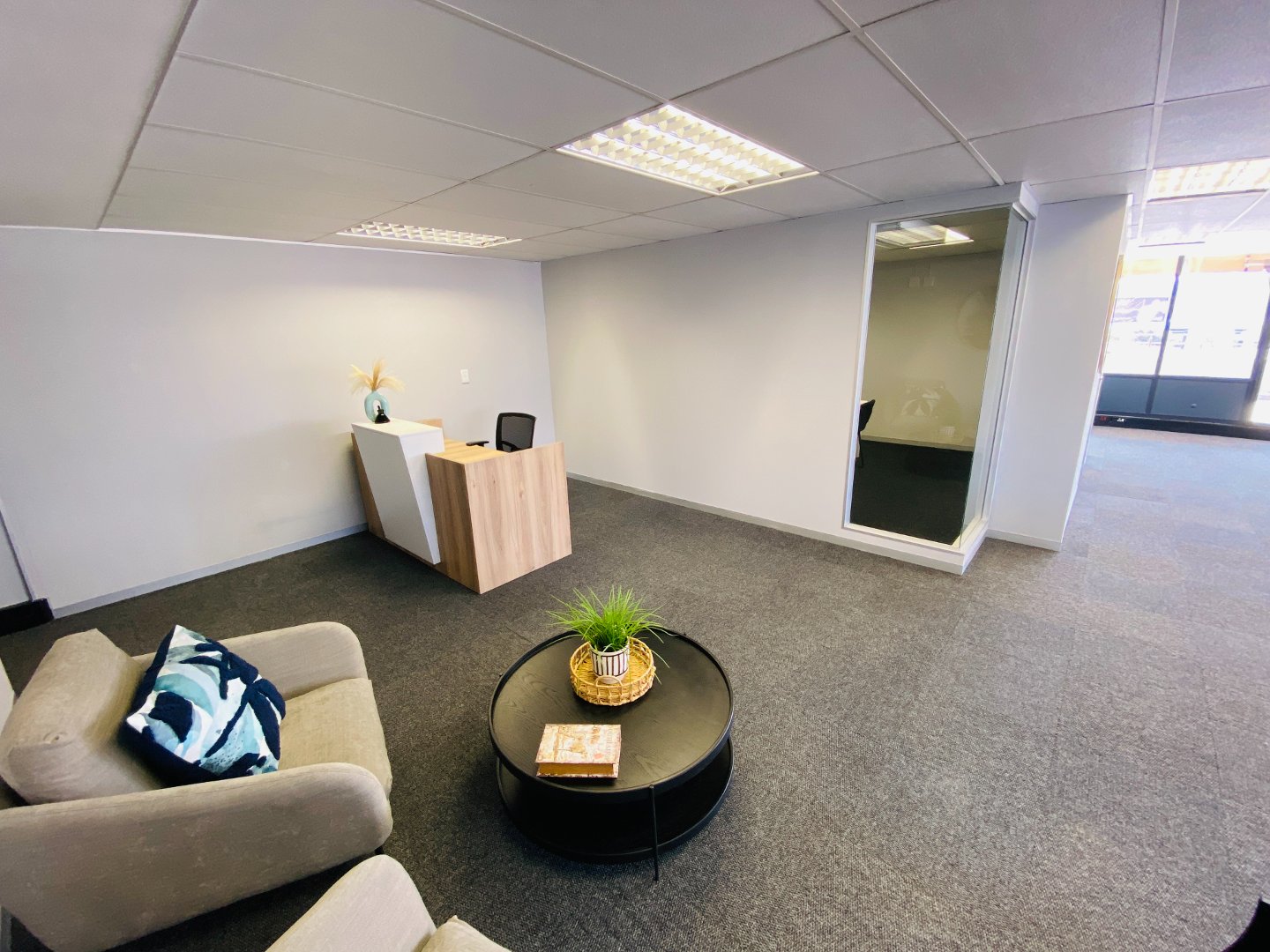 This office provides a reception area, open plan work space, dry kitchen (communal kitchens are also available), boardroom with a large private balcony creating an open feeling and relaxed getaway. This office has been staged, furniture options are available at additional cost. The buildings common areas have all been upgraded to a modern clean look creating an inviting environment. Well-equipped property combining modern amenities with a prime address in one of Johannesburg’s most sought-after commercial nodes.