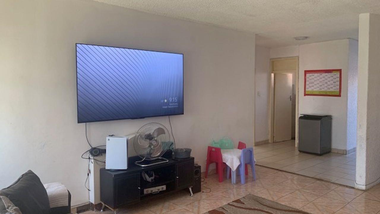 Large 2 Bedroom tiled ground floor unit, BIC fitted kitchen and tiled bathrooom . Enclosed parking and security on doors and windows. Perfect for a first time home.