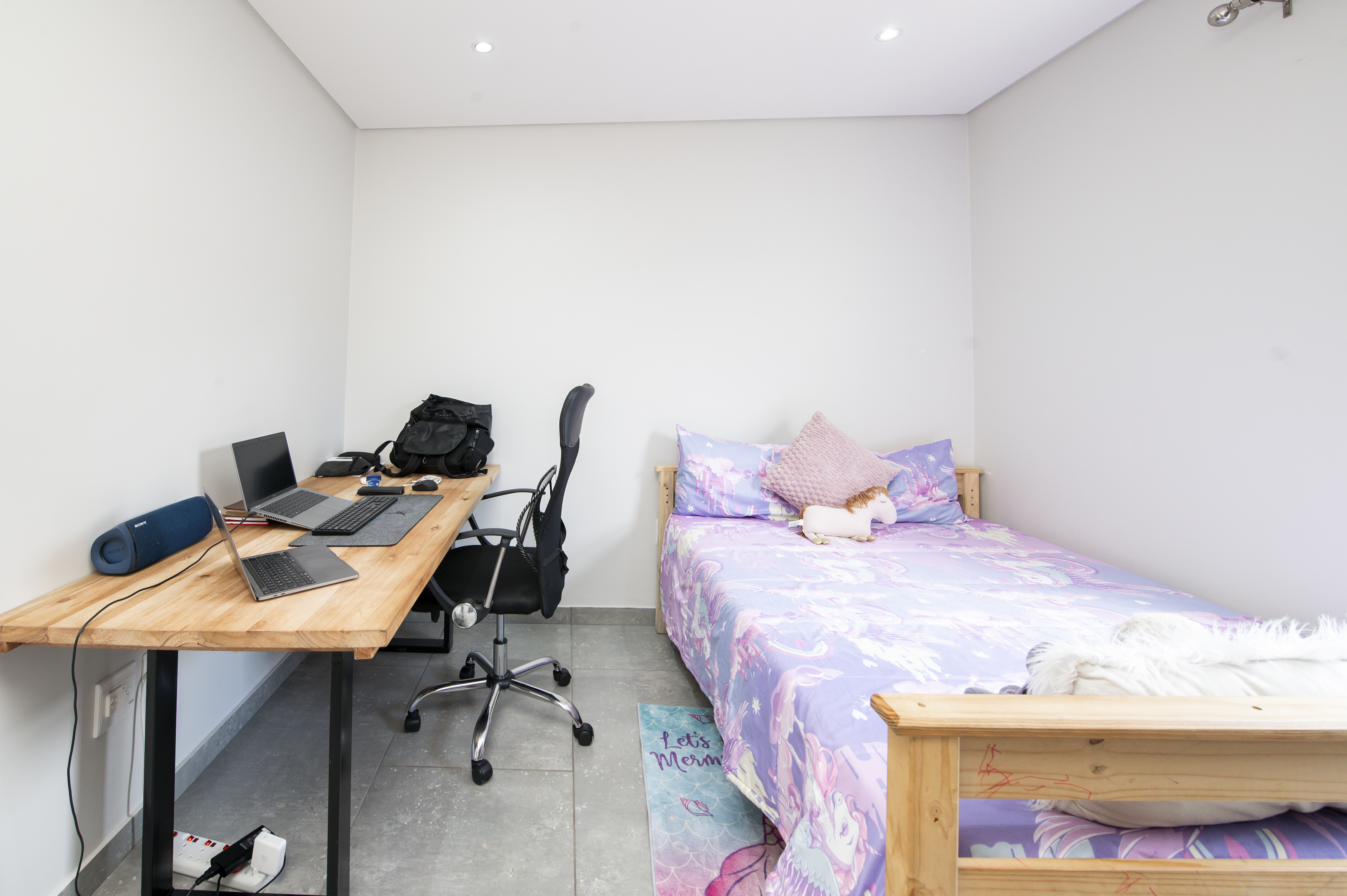 Spacious bedroom: 4 generously sized bedrooms provide ample space. The master suite is huge with lots of cupboard space. The bathroom includes a bath and a shower.