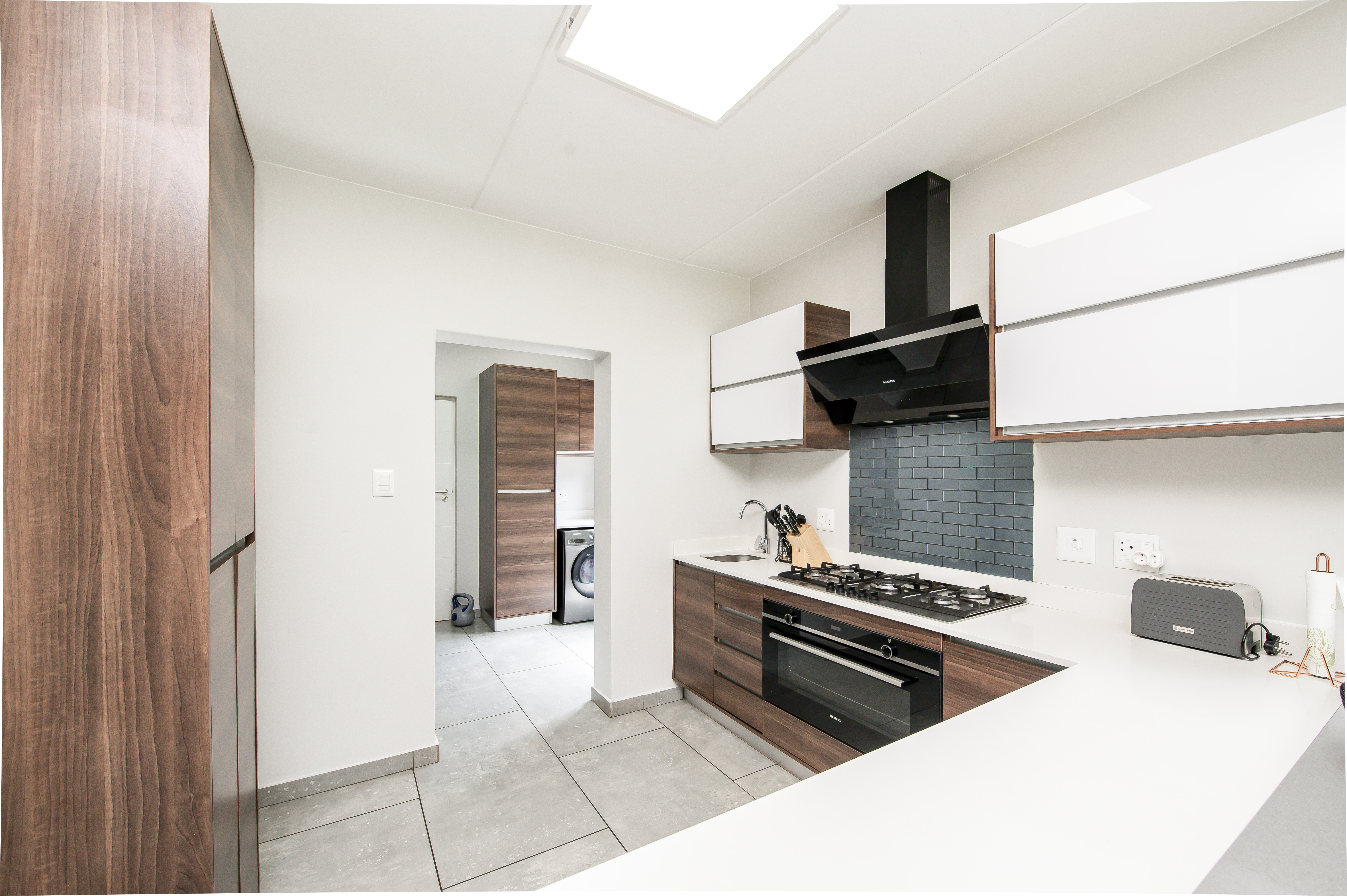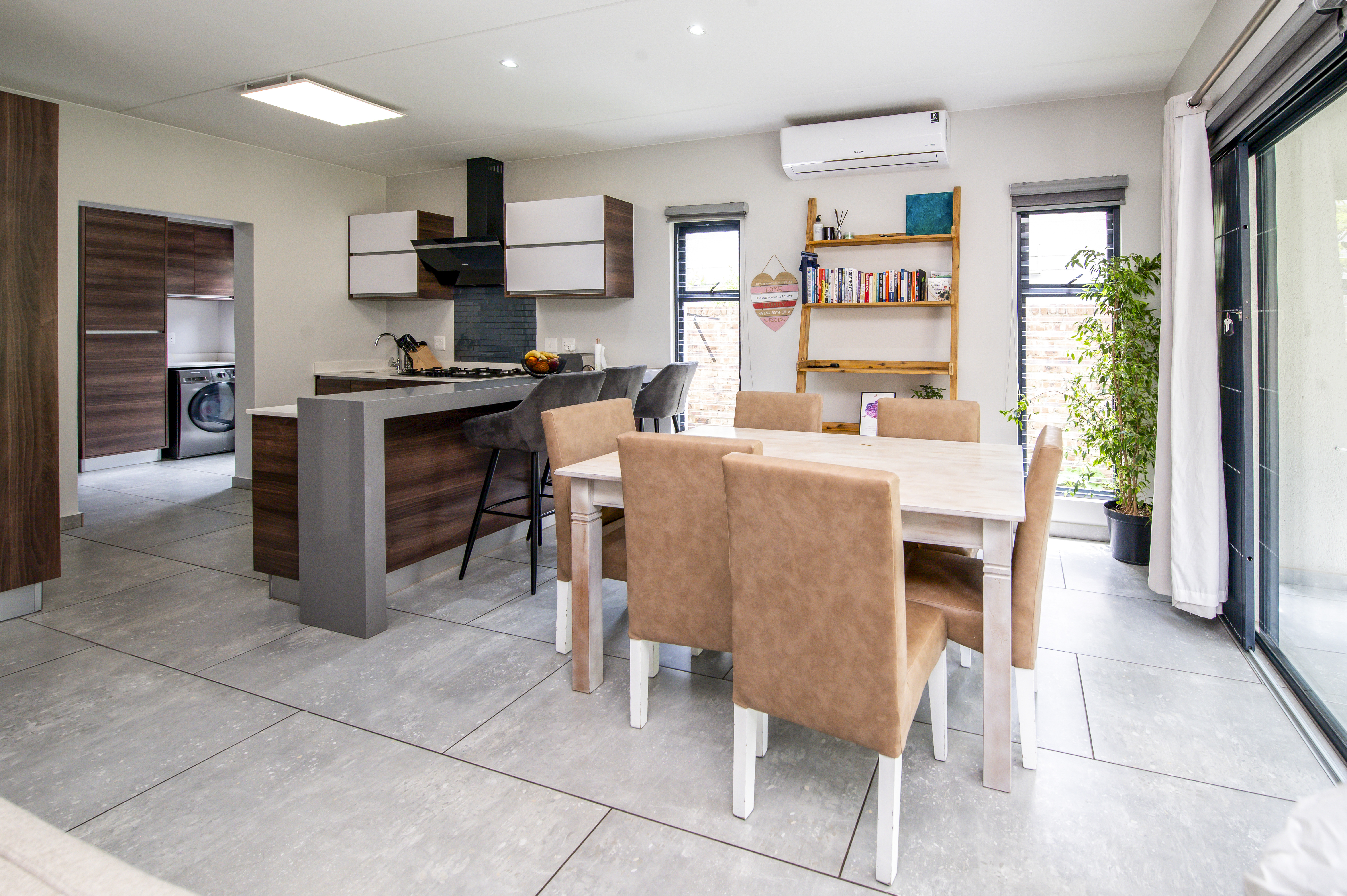 The spacious living area has plenty of natural light and provides a comfortable and inviting space for family and friends. The kitchen features a gas stove, a separate scullery, and plenty of cupboard space