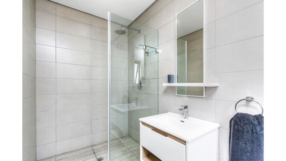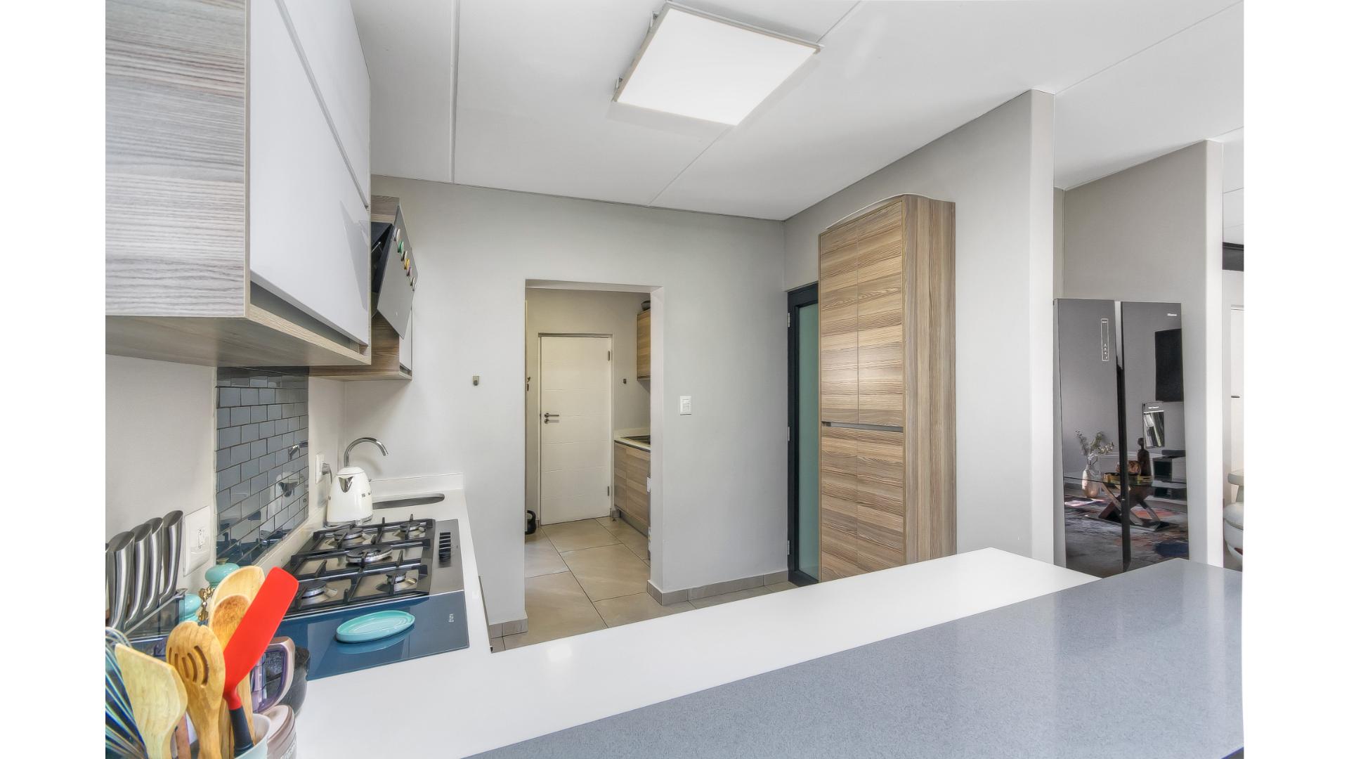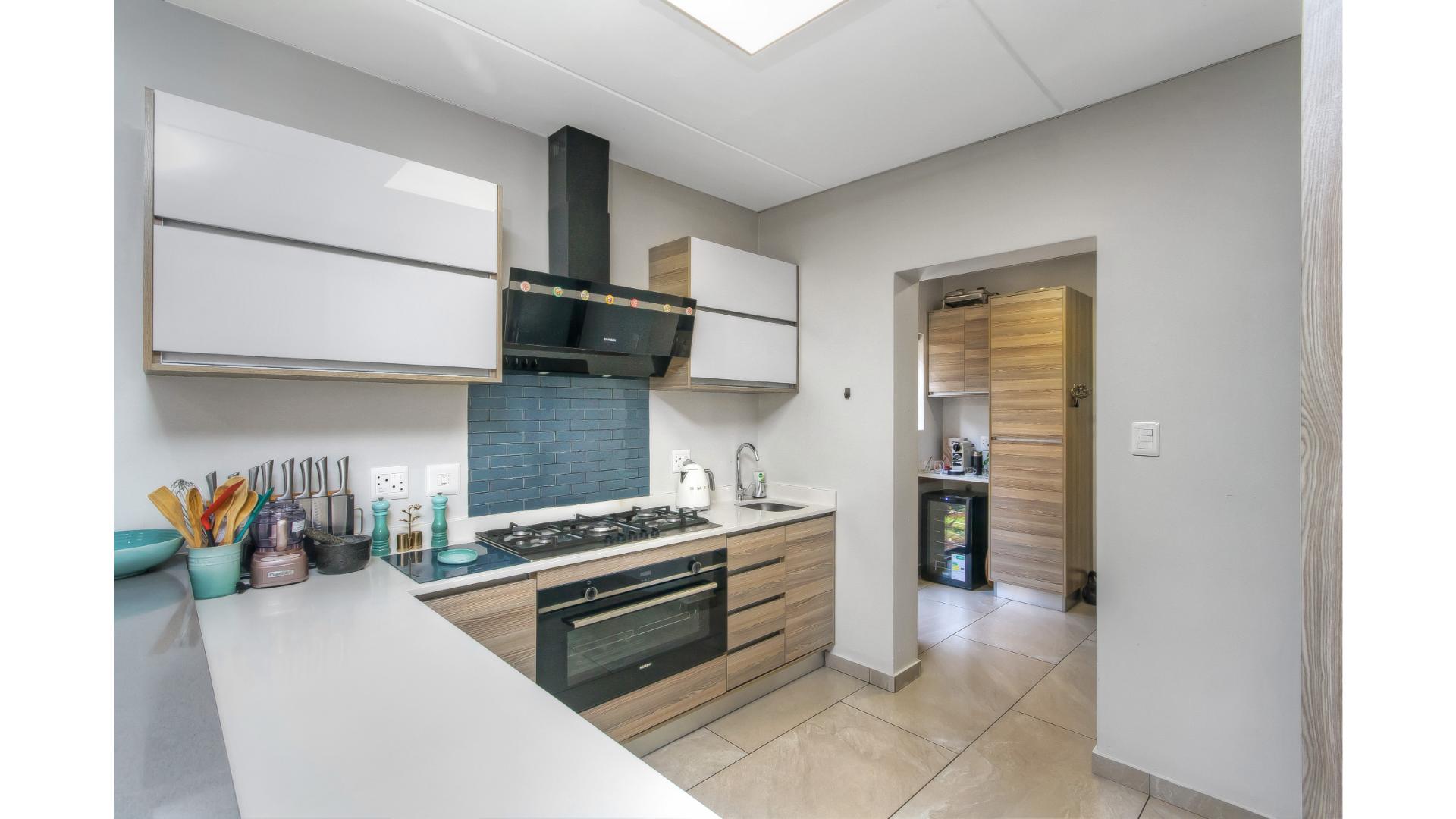 The open-plan kitchen is fitted with a gas stove, seamlessly flowing into the dining area and spacious lounge. The living space extends outdoors to a covered patio, ideal for entertaining.