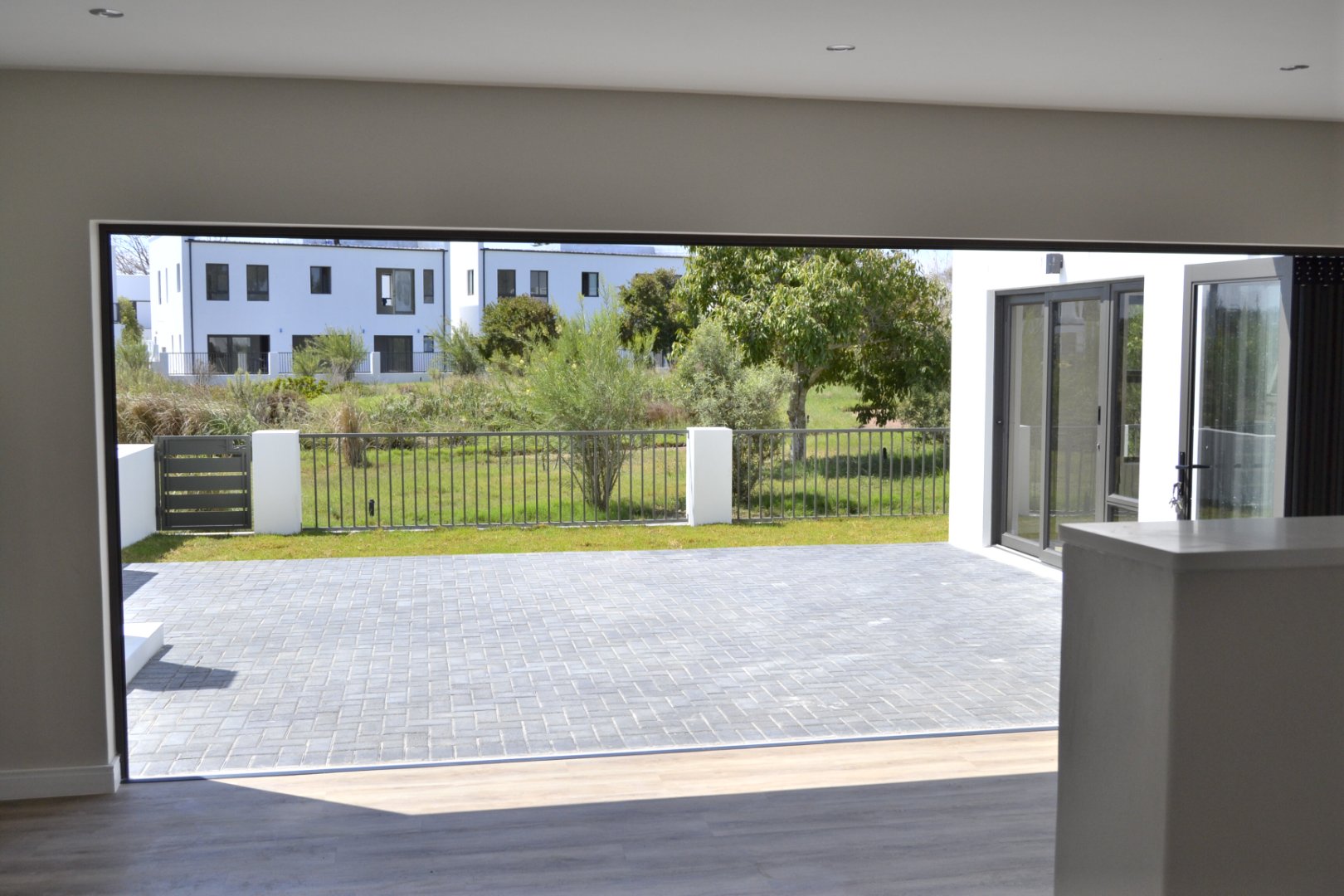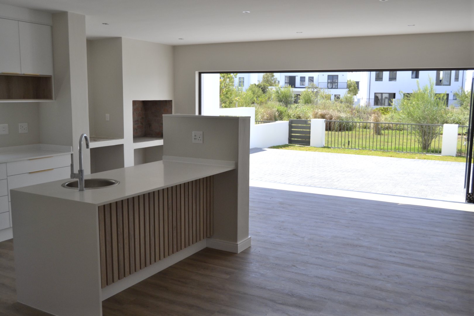 Downstairs, a gourmet kitchen with premium finishes flows into open-plan living and dining areas, opening to a covered patio, braai, and garden – ideal for entertaining.