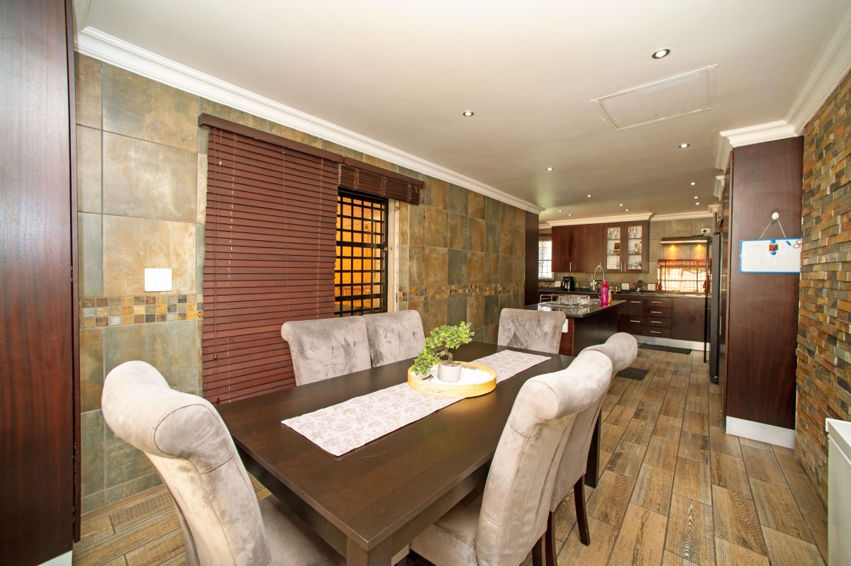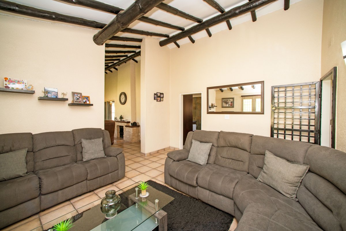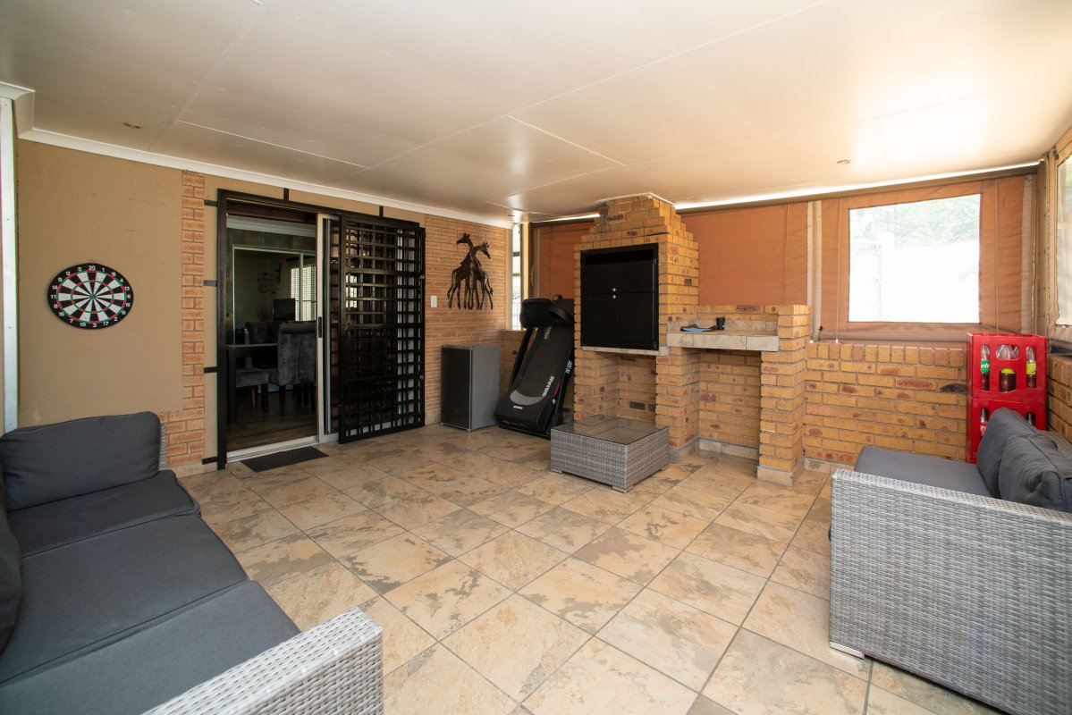 This immaculate and modern family home offers you 3 spacious bedrooms, 2 modern bathrooms (Main-en-suite). This gem also boasts 2 living areas and dining room. A cosy fireplace is fitted in the main lounge.