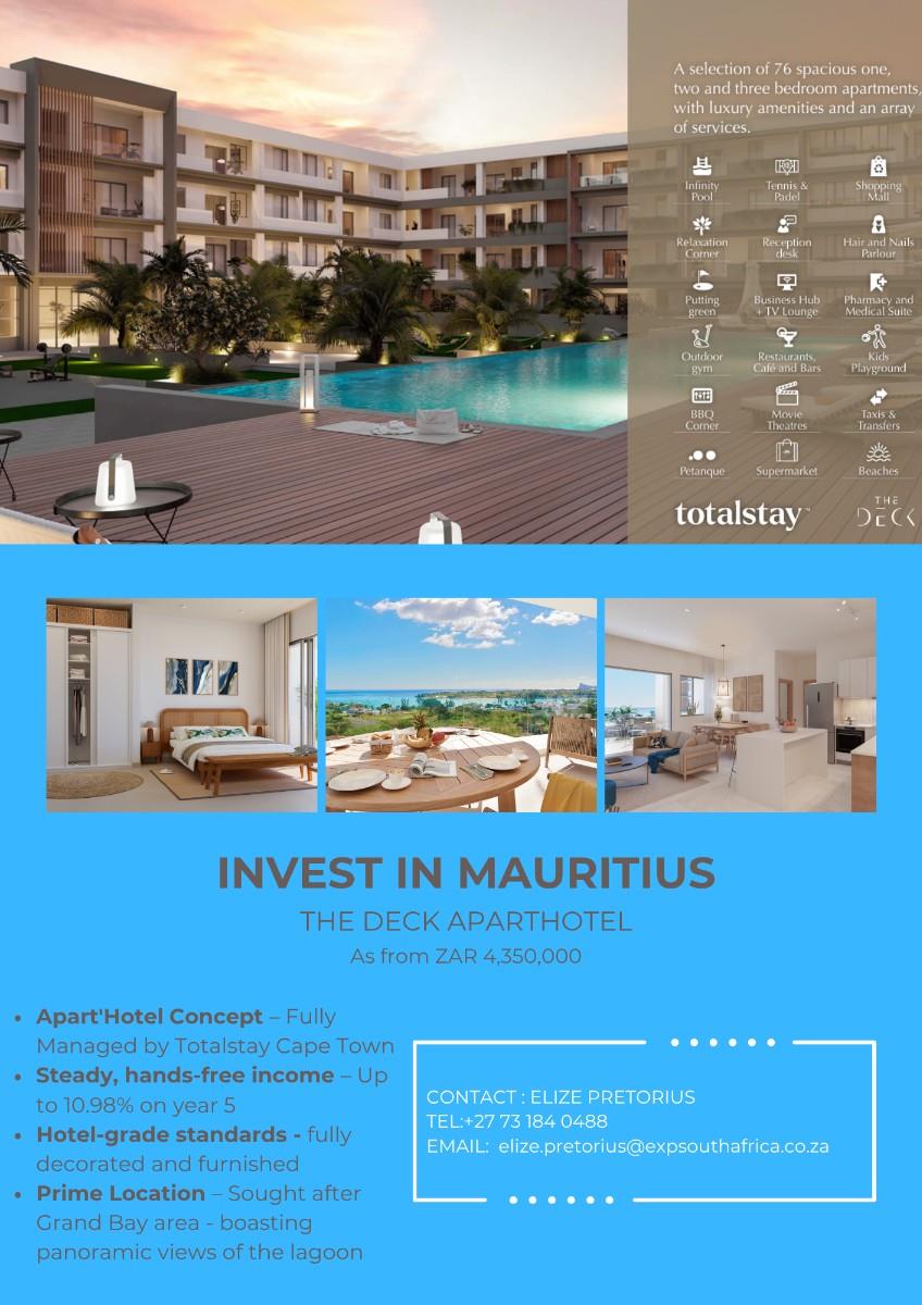 Experience the perfect blend of luxury living, prime location, and passive income at The Deck Aparthotel, an exclusive resort-style development in the heart of Grand Bay, Mauritius.