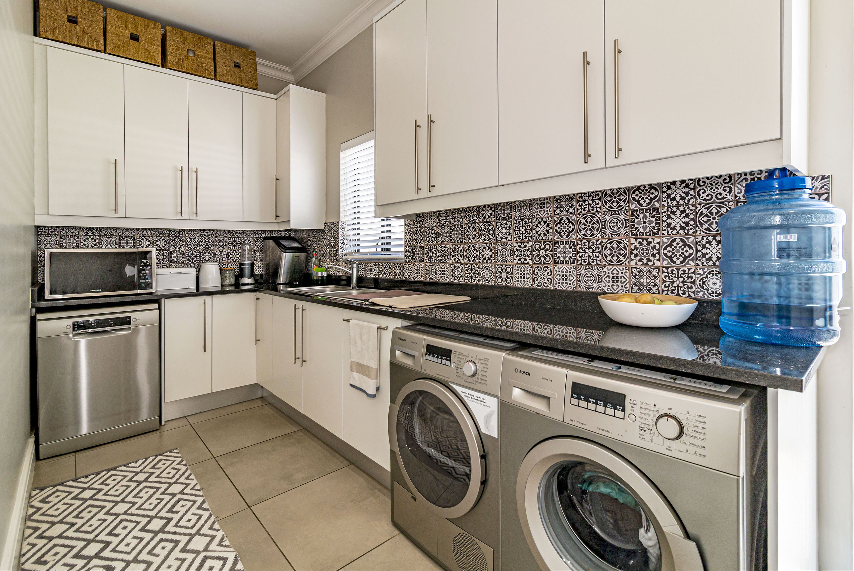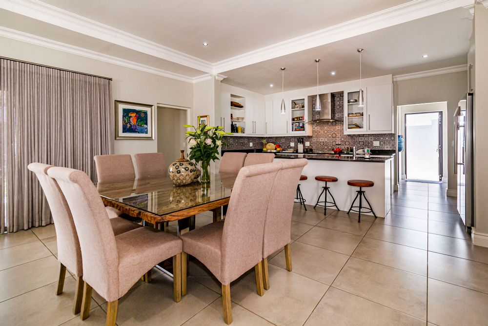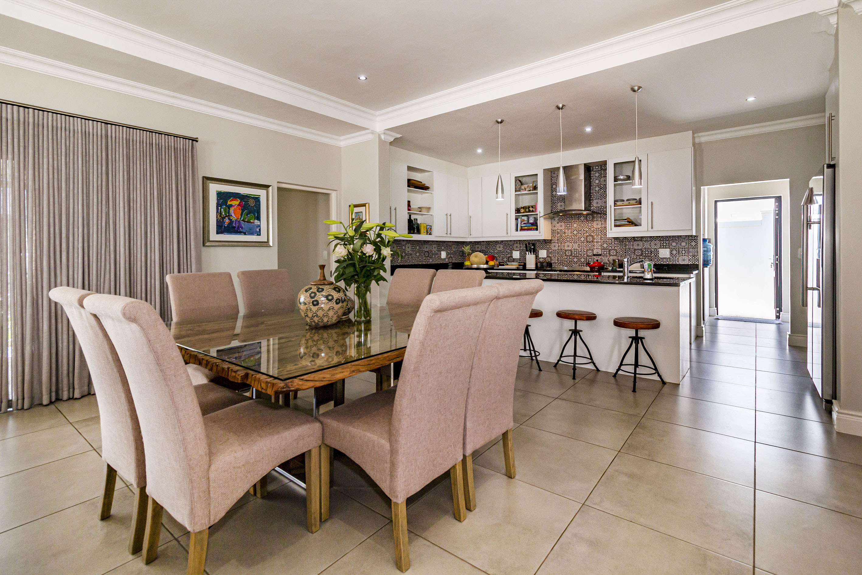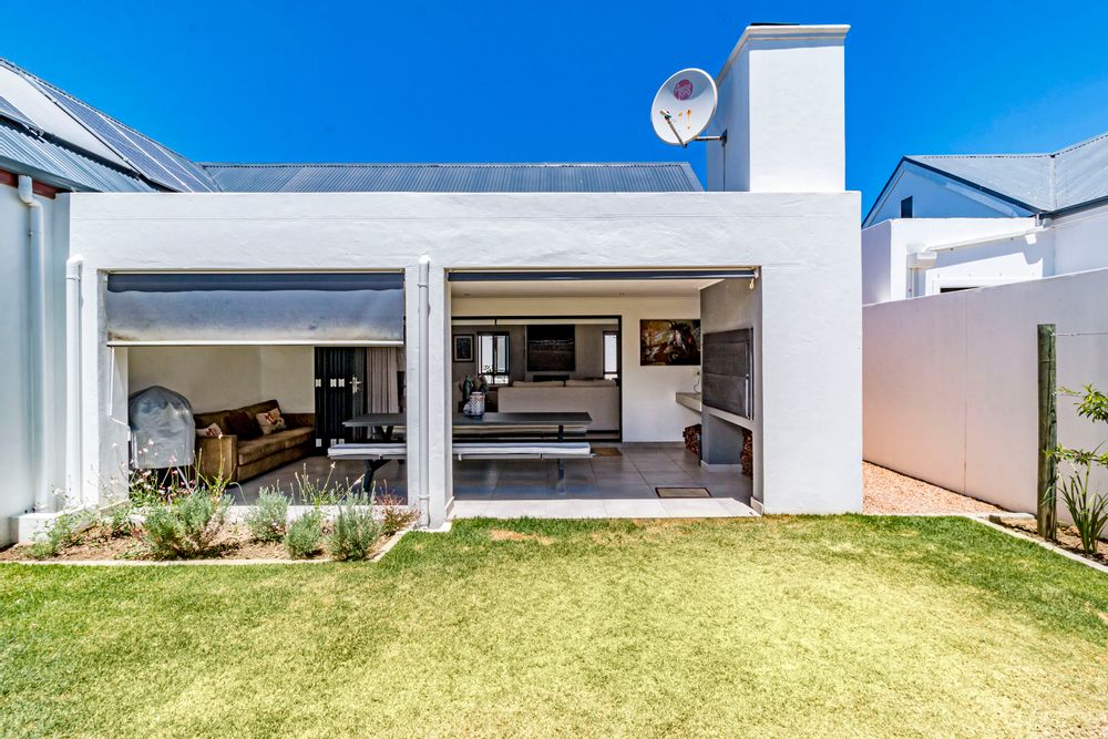 Experience a beautifully designed 4-bedroom, 3-bathroom home that combines sustainability with luxury. This residence features solar panels with an inverter for energy efficiency, ensuring lower electricity costs. The spacious open-plan living and kitchen area is designed for a chef’s delight, boasting designer finishes, modern appliances, a granite counter top, and a breakfast bar. Beautiful tiled flooring runs throughout, adding a clean, contemporary feel. A built-in braai and a covered entertainment area provide the perfect setting for outdoor gatherings, while the main suite offers a walk-in wardrobe and an en-suite shower. The manicured garden completes the package, and a double lock-up garage with automatic doors adds convenient secure parking. Located conveniently close to the beach, shops, and schools, this home is ideal for versatile family living.