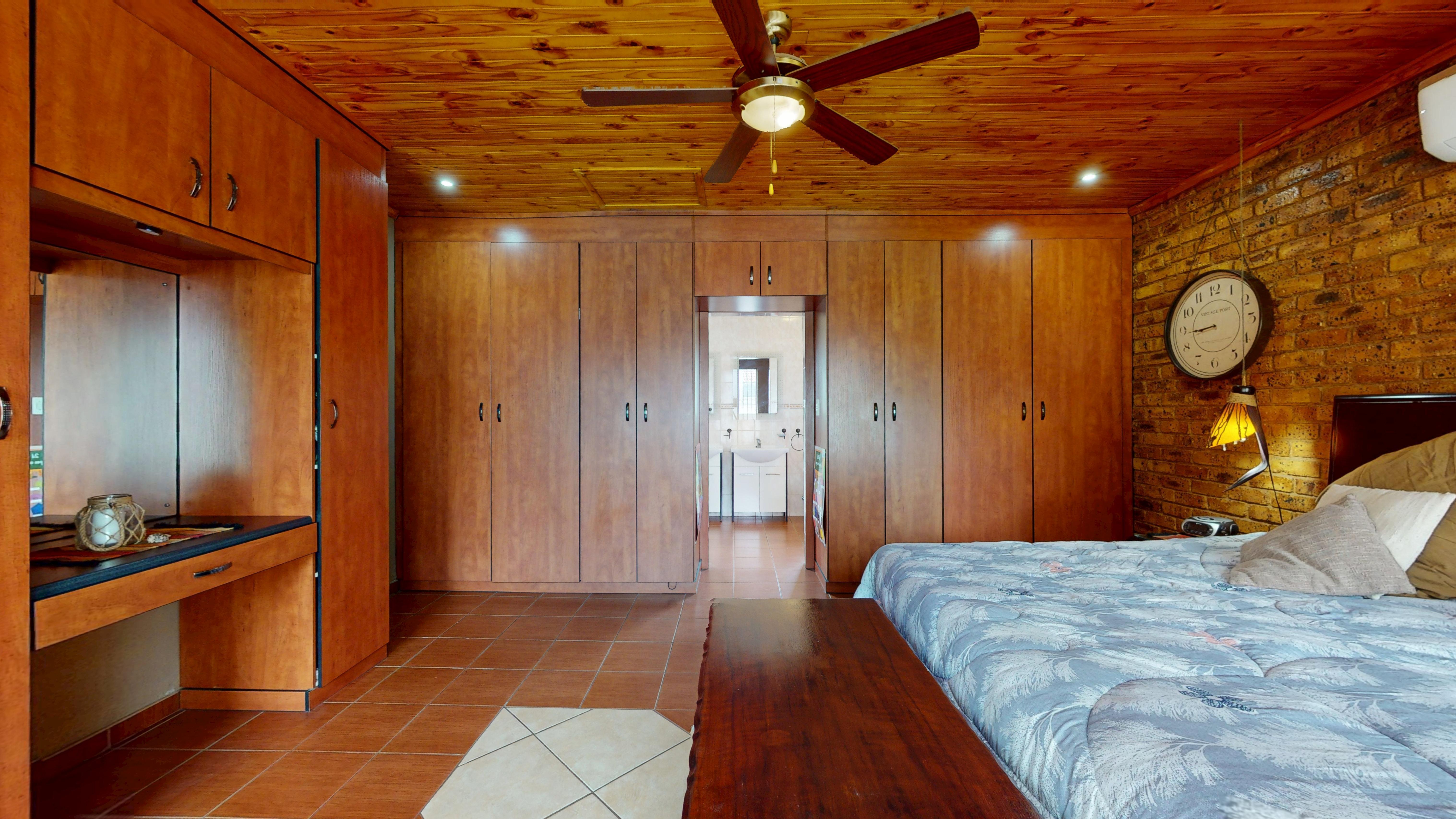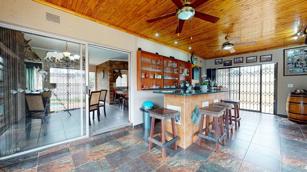 Toward the back of the dining area, you’ll find a versatile entertainment or indoor braai area—ideal for hosting family and friends all year round. This space opens out to a large swimming pool, giving you a seamless flow between indoor and outdoor living.