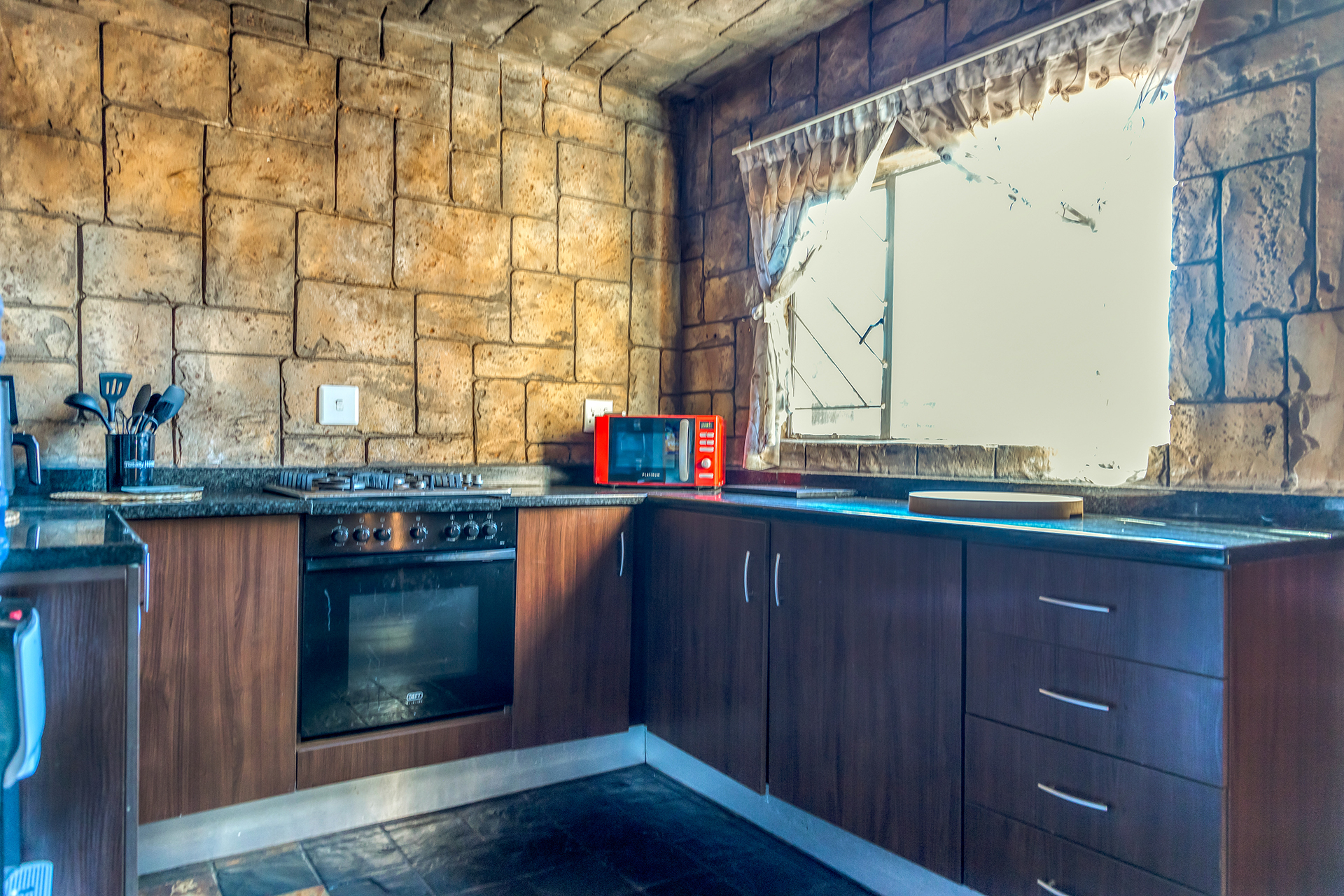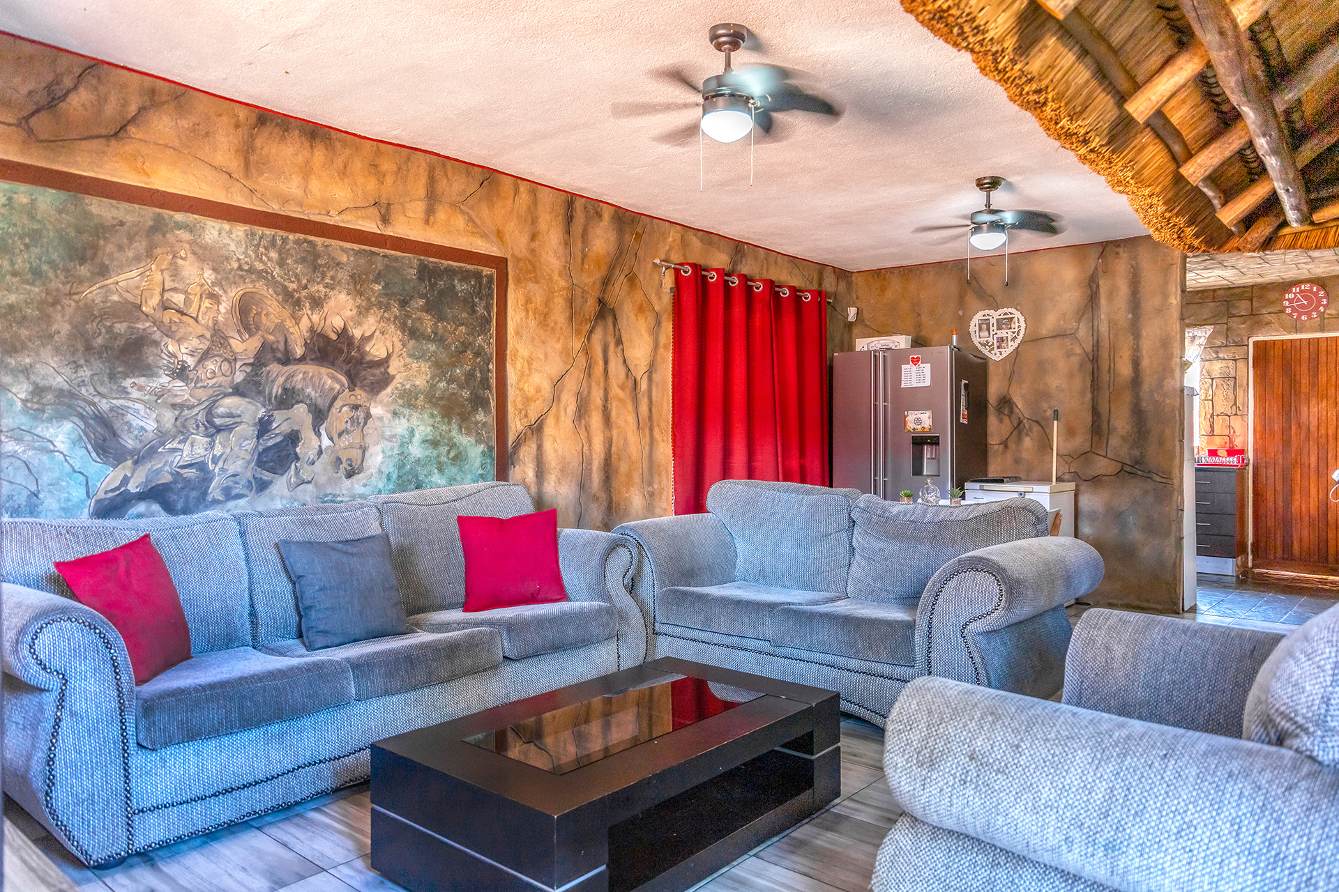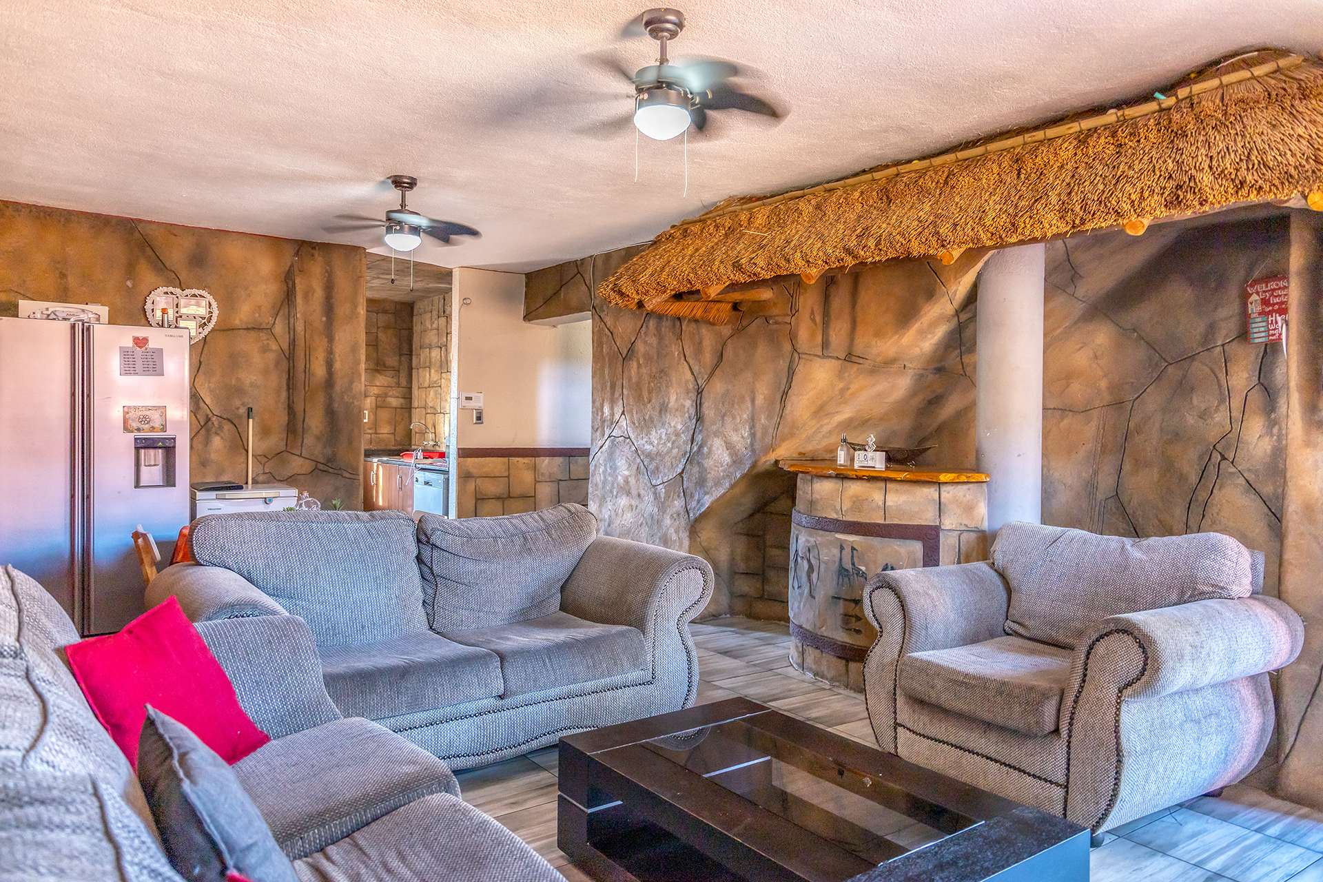 Step inside to discover a spacious and inviting living area with elegant tiled floors that provide easy maintenance. The open-plan layout is perfect for entertaining guests or enjoying quality family time, with a well equipped kitchen with a gas stove.