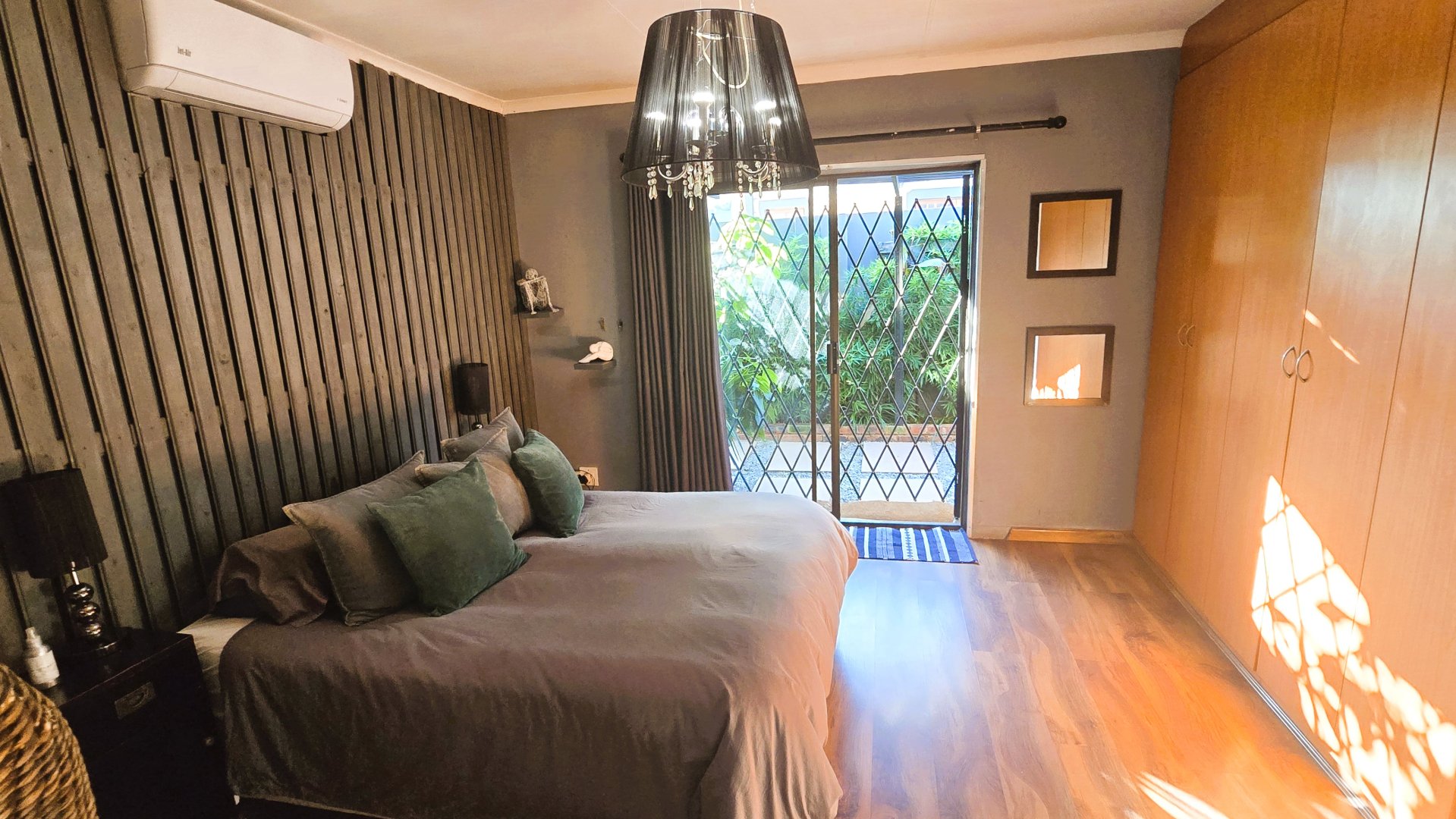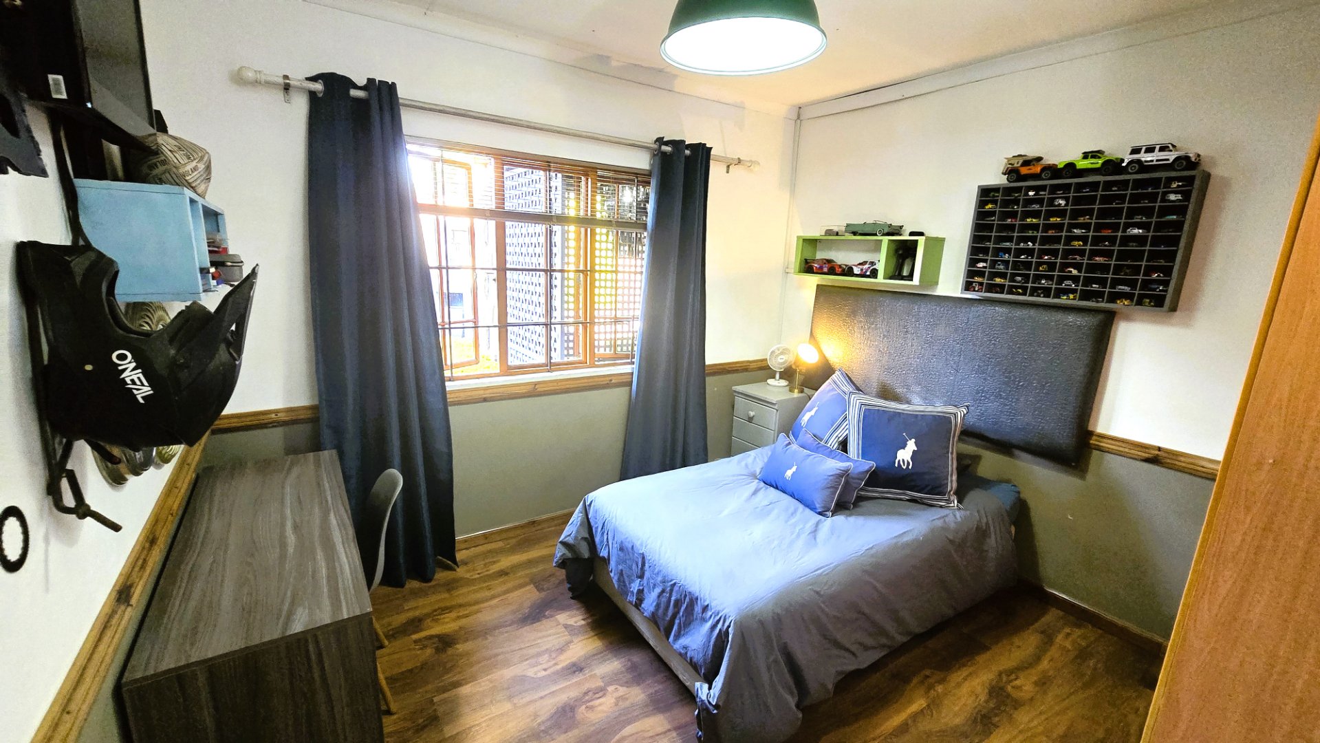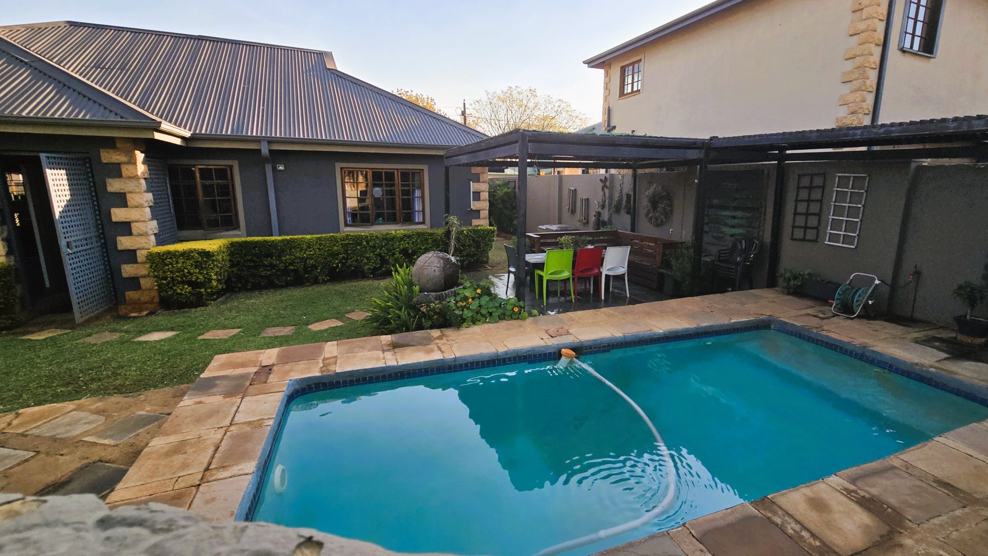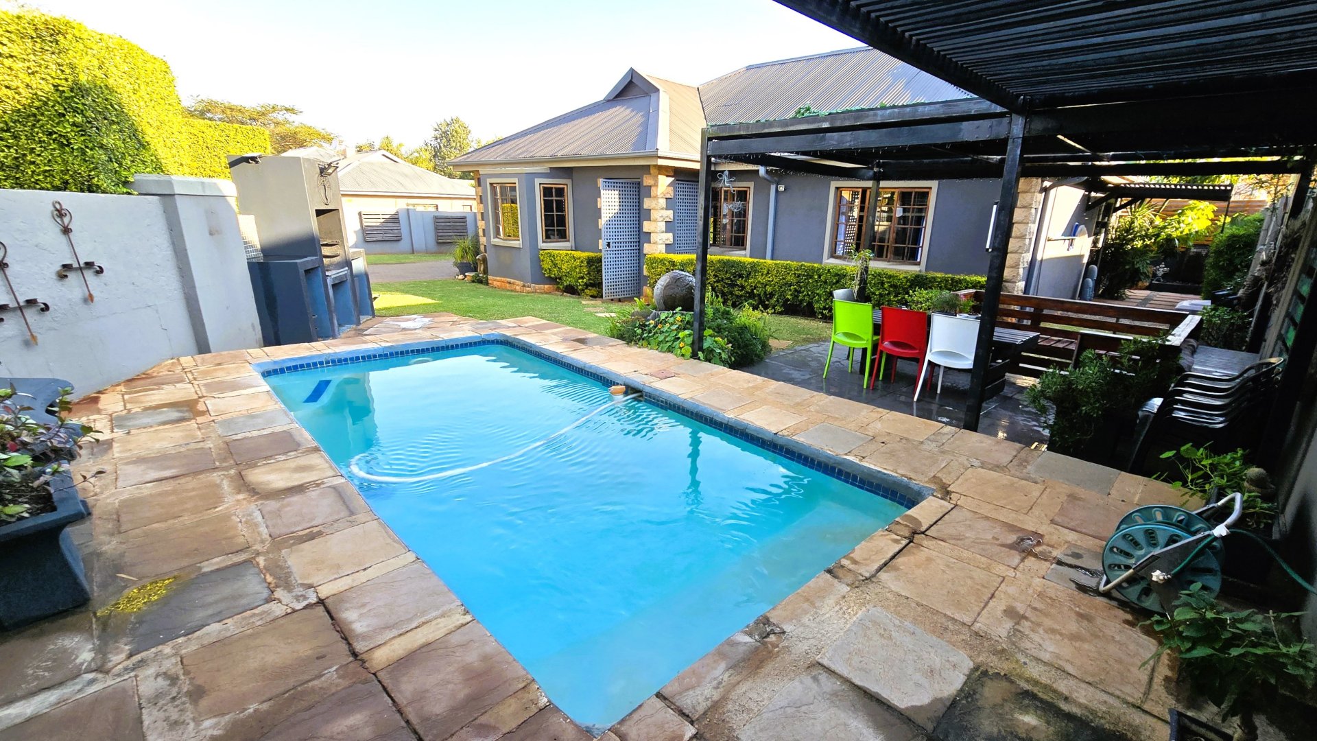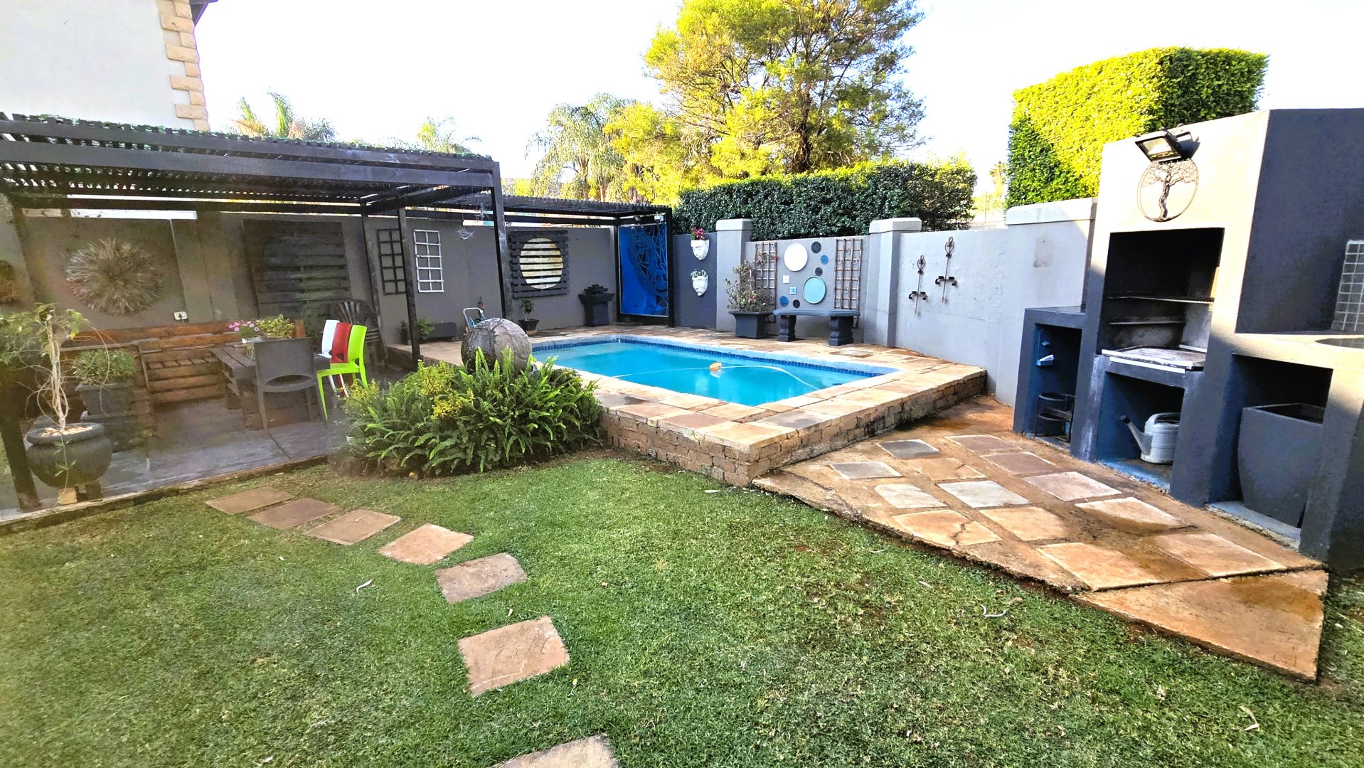Step outside to discover a sparkling swimming pool and a dedicated entertainment area with a braai, perfect for hosting friends and family during sunny South African weekends. The wrap-around garden is pet-friendly, easy to maintain, and provides a cozy, tranquil outdoor space where children and pets can play safely.