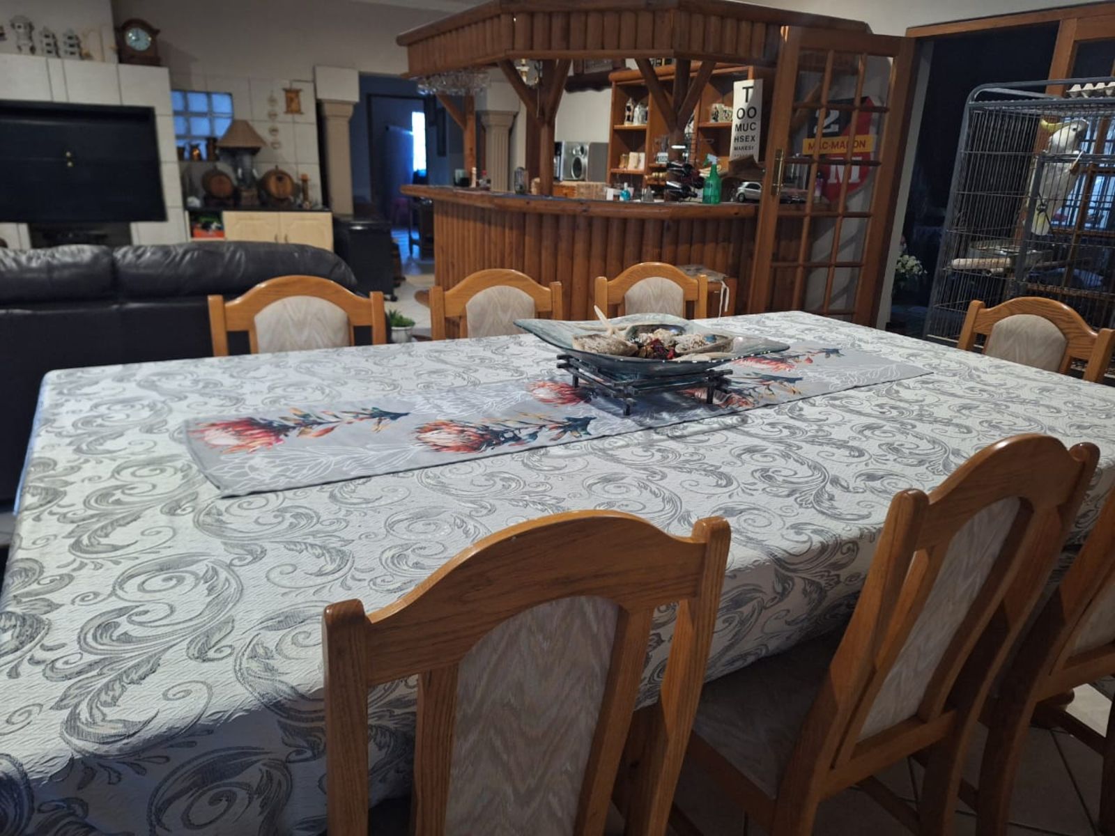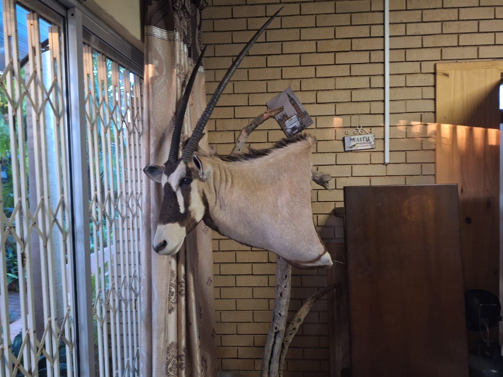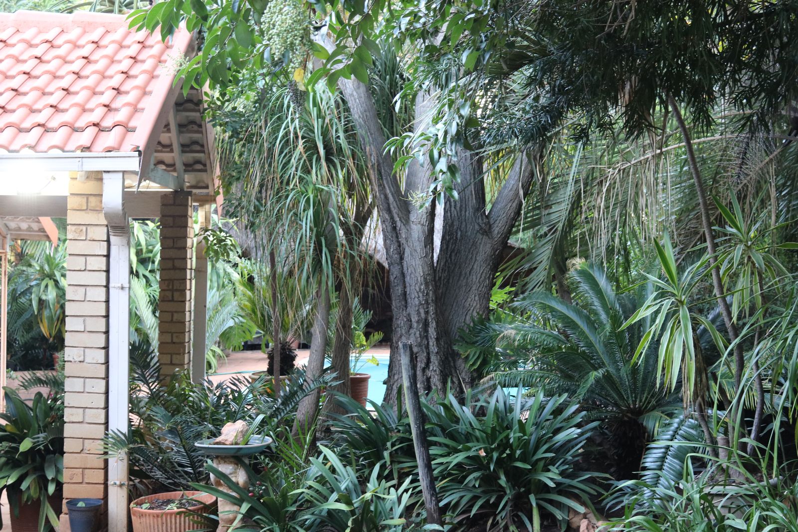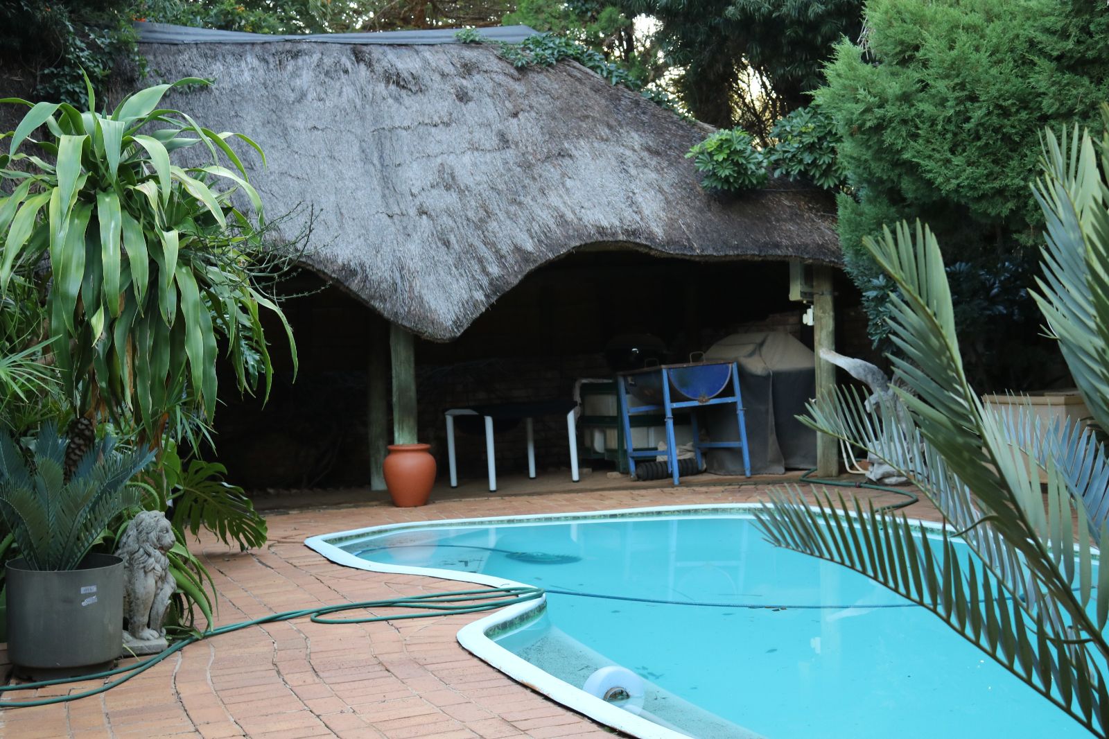 Outside, enjoy a neatly landscaped garden, a sparkling swimming pool, and an impressive covered patio with built-in braai—perfect for year-round entertaining. There are also three under-roof storage areas and ample parking, including a single garage with an electric door and four undercover parking bays large enough to accommodate a caravan.