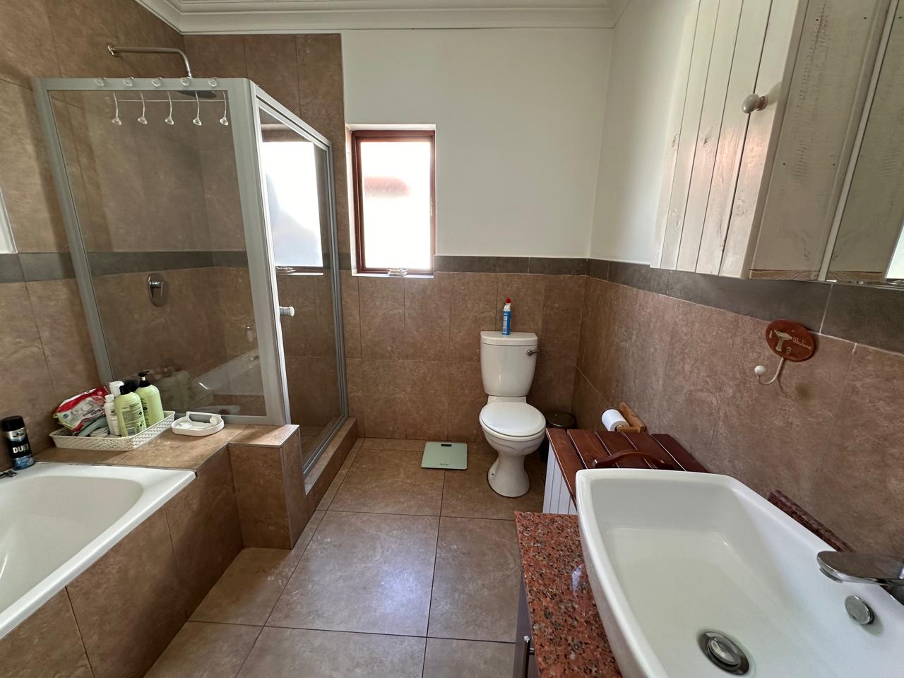 The main bedroom feature full en-suite bathroom with a shower, bath, basin, and toilet.
