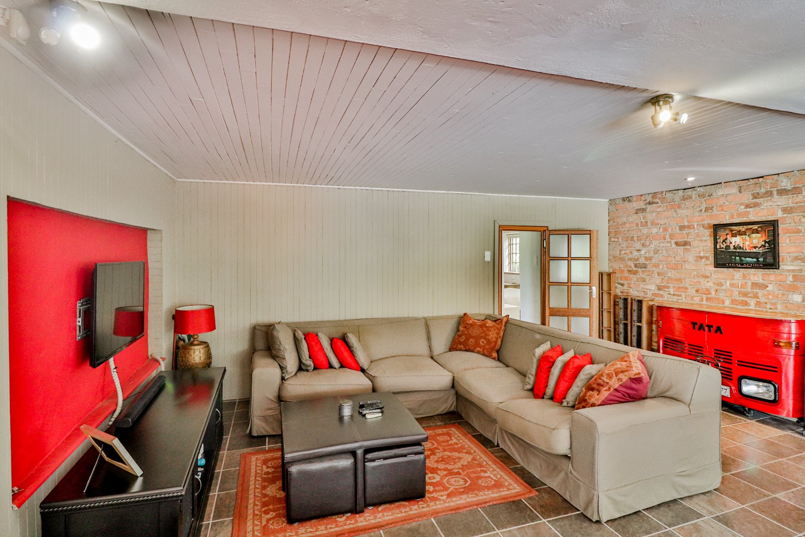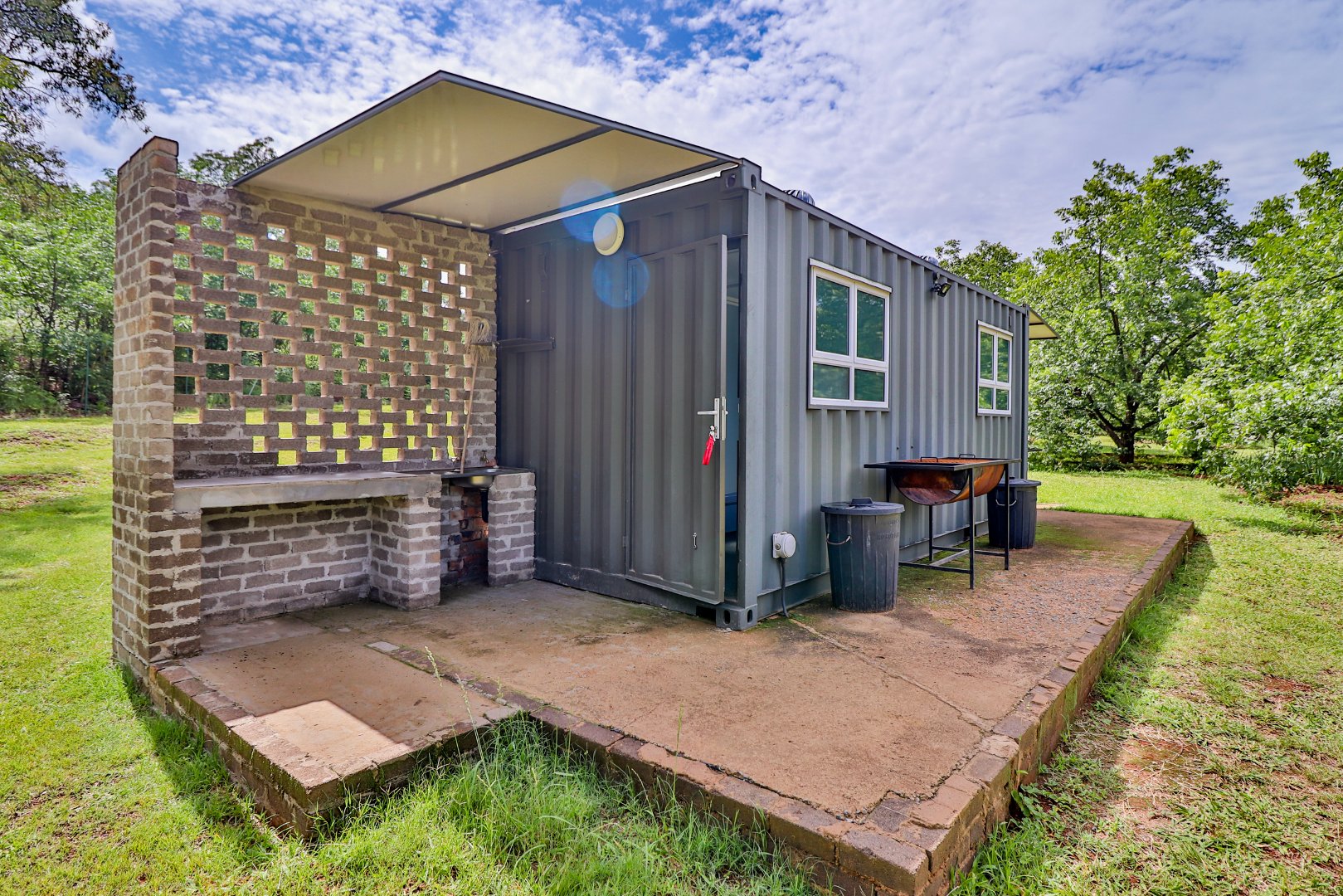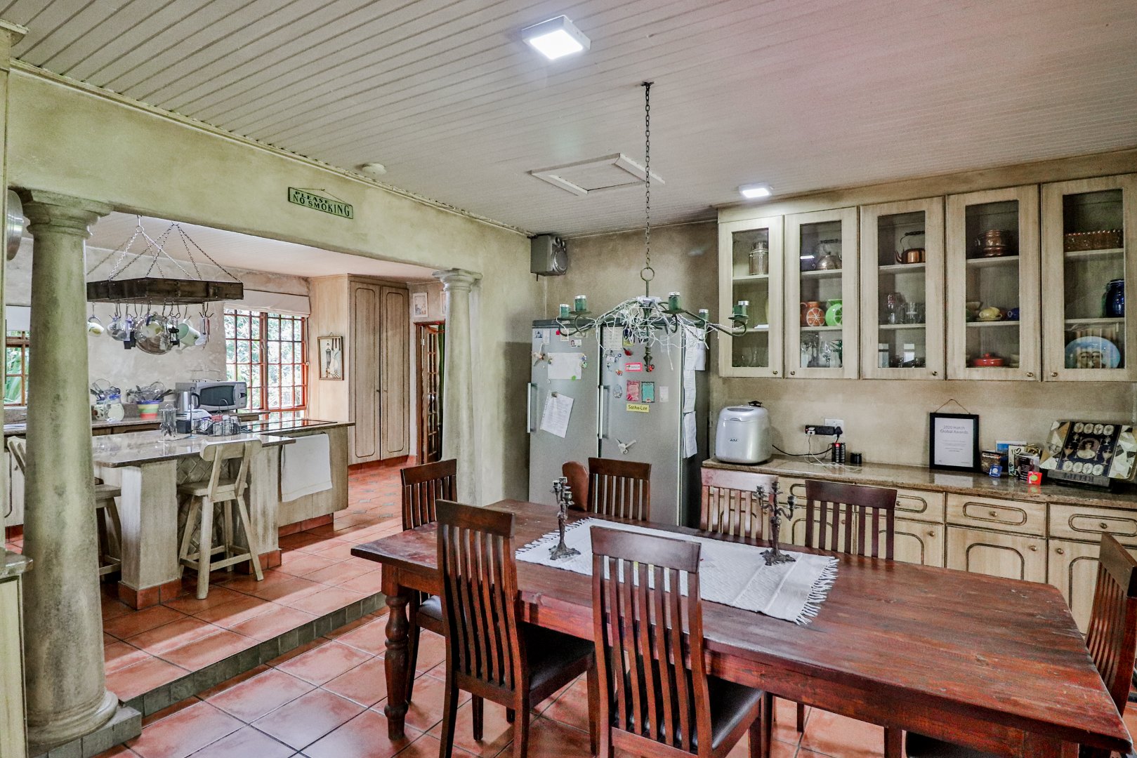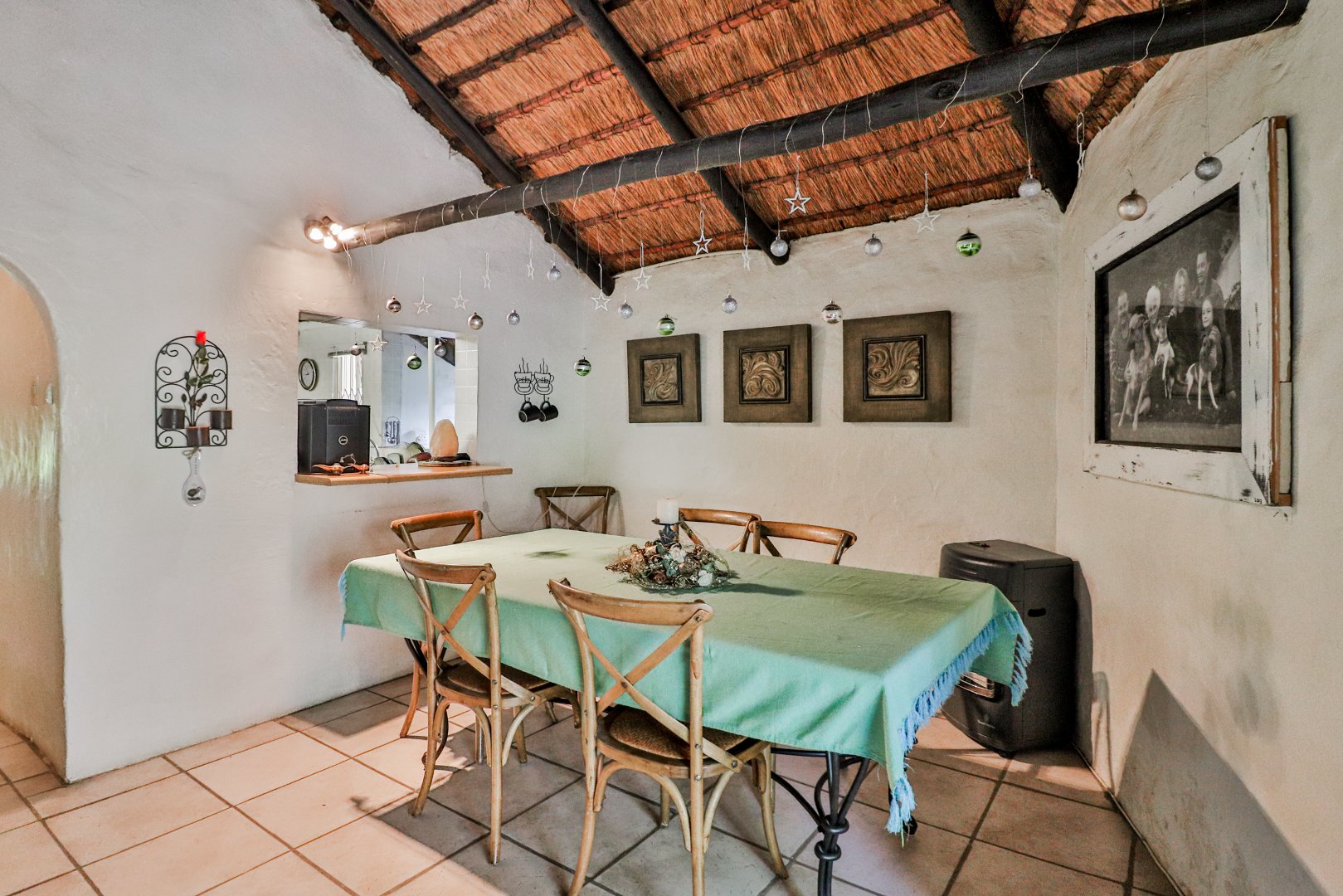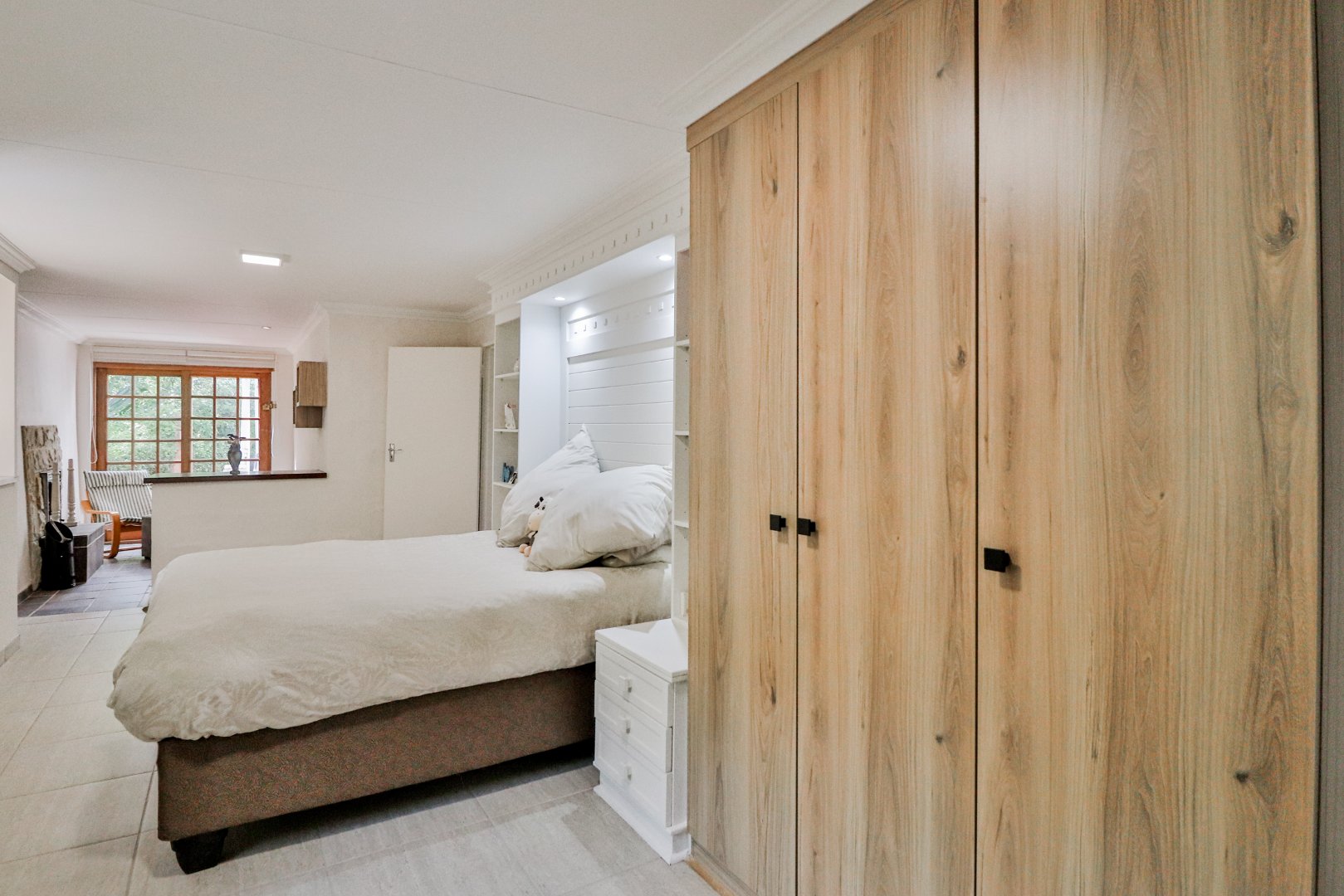 The main house features three bedrooms, two bathrooms, a spacious double-length garage, a heated swimming pool with a cover, a generous entertainment area with a pool table, a custom-built study, a dining room, and a kitchen with bespoke cabinets. Notably, all exterior wooden sliding doors and windows are crafted from Nlulu wood (iron-embedded frames), and the kitchen boasts marble countertops, under-counter space for appliances, a pantry, and a gas stove. The house is predominantly floored with tile and laminate, and its custom-made cabinets and bookcases are a testament to exceptional craftsmanship. The study features a stunning large built-in bookcase with glass, and the oversized desk with four roomy drawers was also custom-built. A charming rustic atmosphere is created in the TV room with unique wallpaper, and the hand-painted dining room cabinets add character. The house utilizes a septic tank and French drain system.