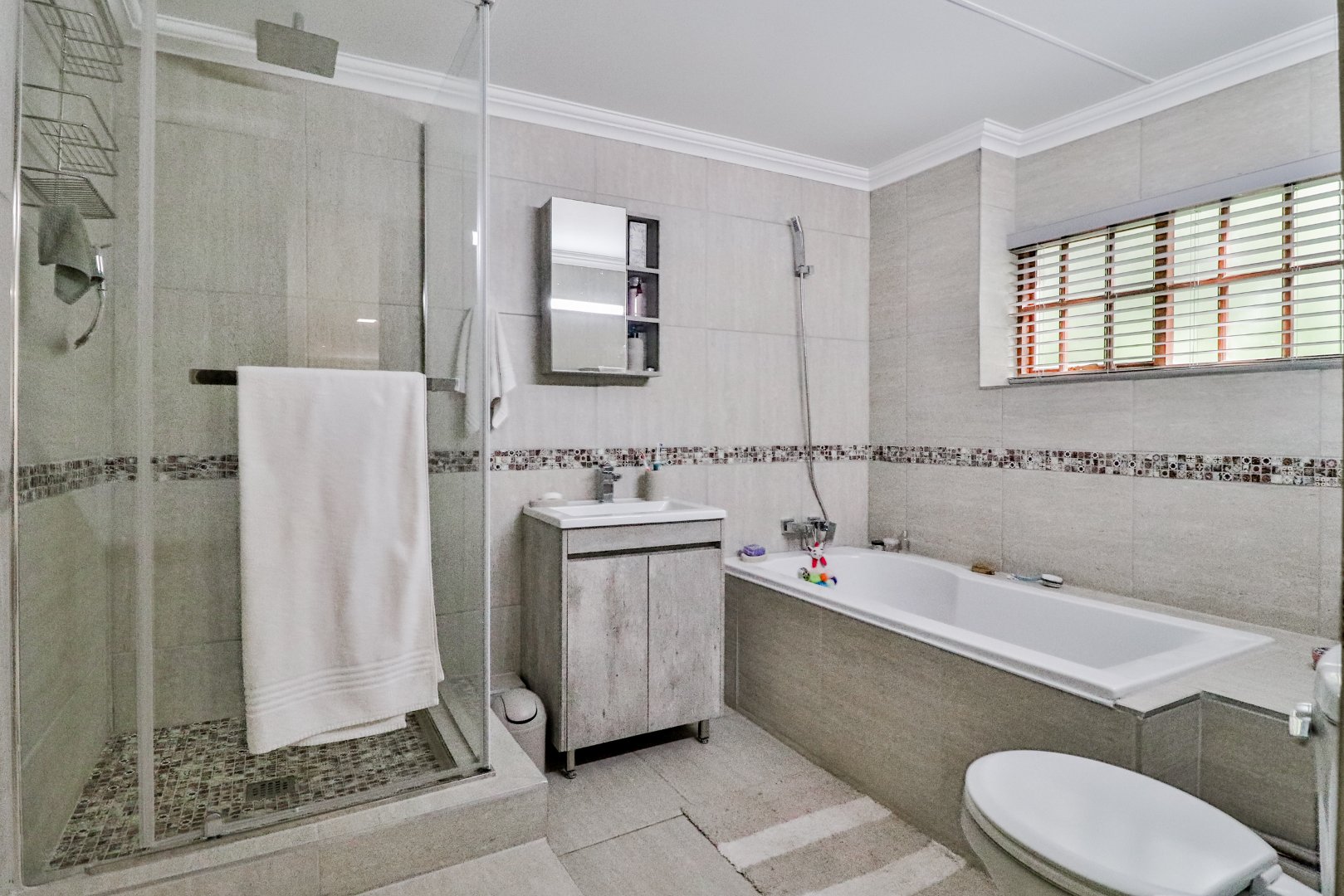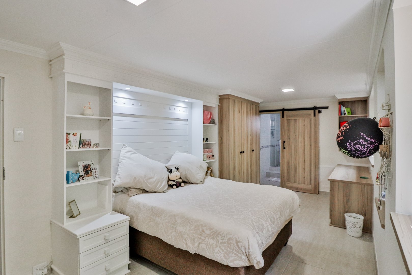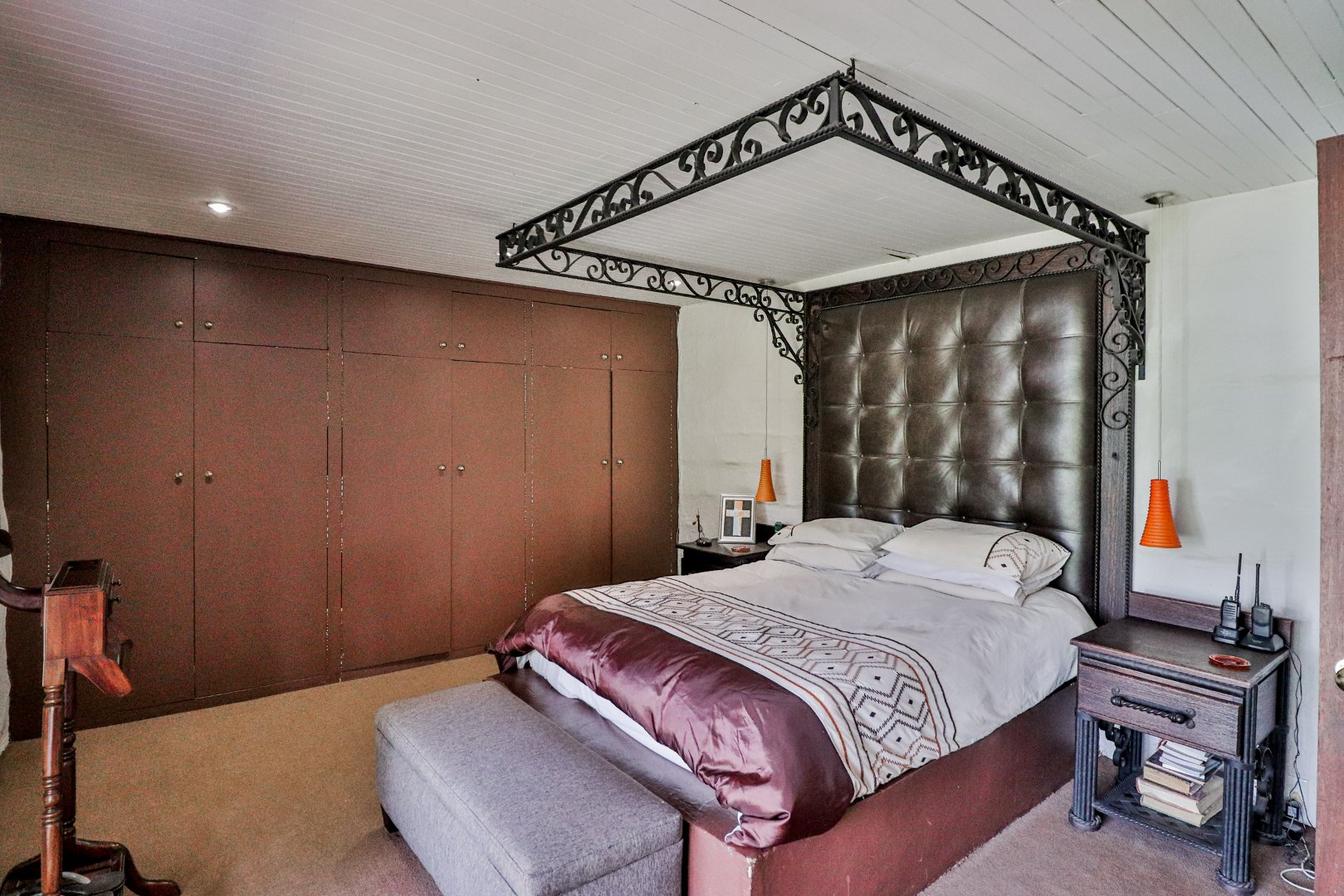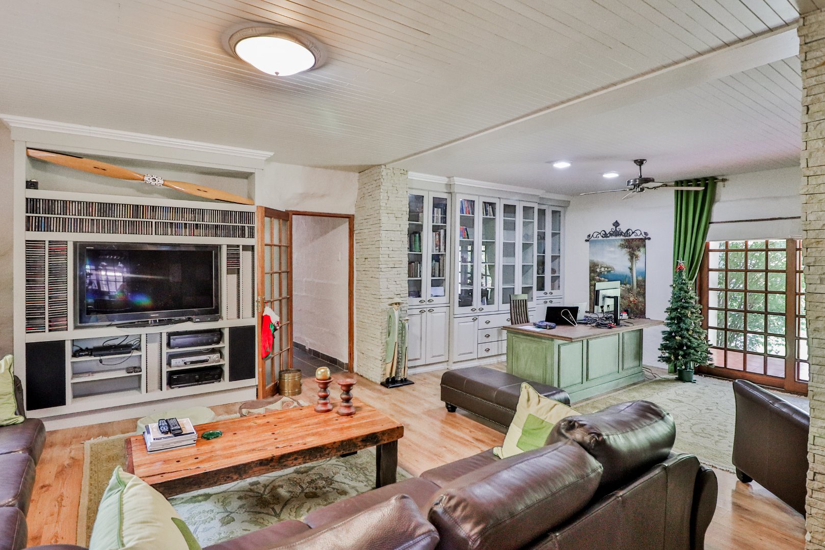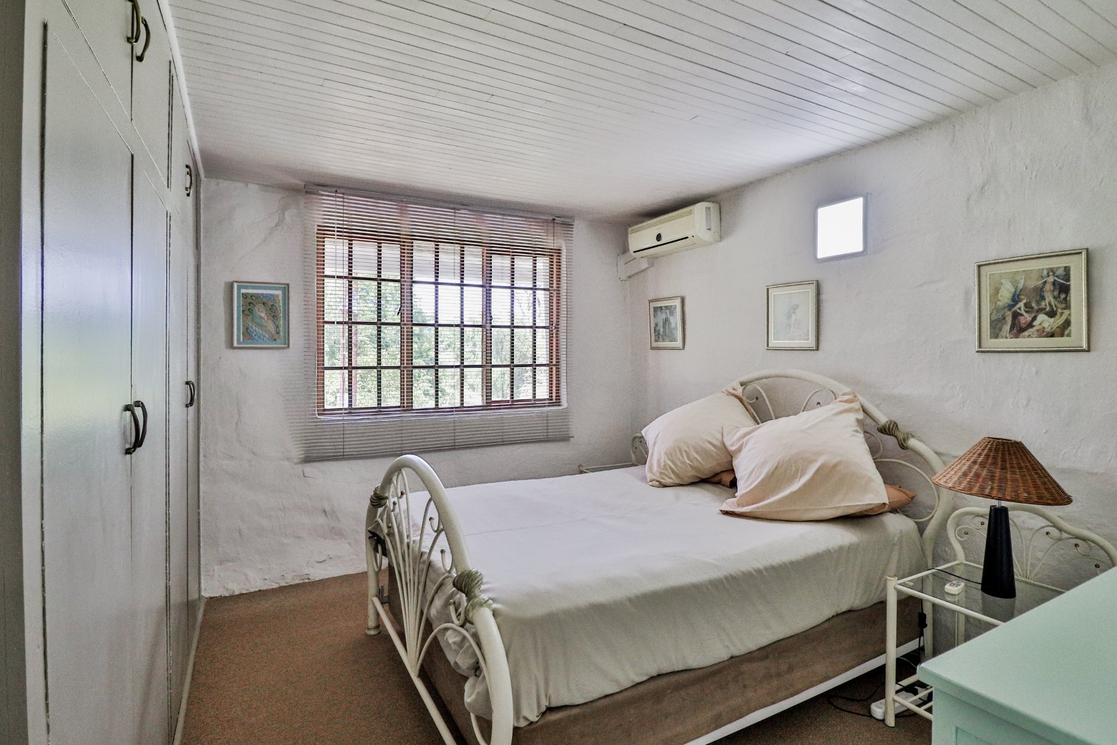 The main house features three bedrooms, two bathrooms, a spacious double-length garage, a heated swimming pool with a cover, a generous entertainment area with a pool table, a custom-built study, a dining room, and a kitchen with bespoke cabinets. Notably, all exterior wooden sliding doors and windows are crafted from Nlulu wood (iron-embedded frames), and the kitchen boasts marble countertops, under-counter space for appliances, a pantry, and a gas stove. The house is predominantly floored with tile and laminate, and its custom-made cabinets and bookcases are a testament to exceptional craftsmanship. The study features a stunning large built-in bookcase with glass, and the oversized desk with four roomy drawers was also custom-built. A charming rustic atmosphere is created in the TV room with unique wallpaper, and the hand-painted dining room cabinets add character. The house utilizes a septic tank and French drain system.