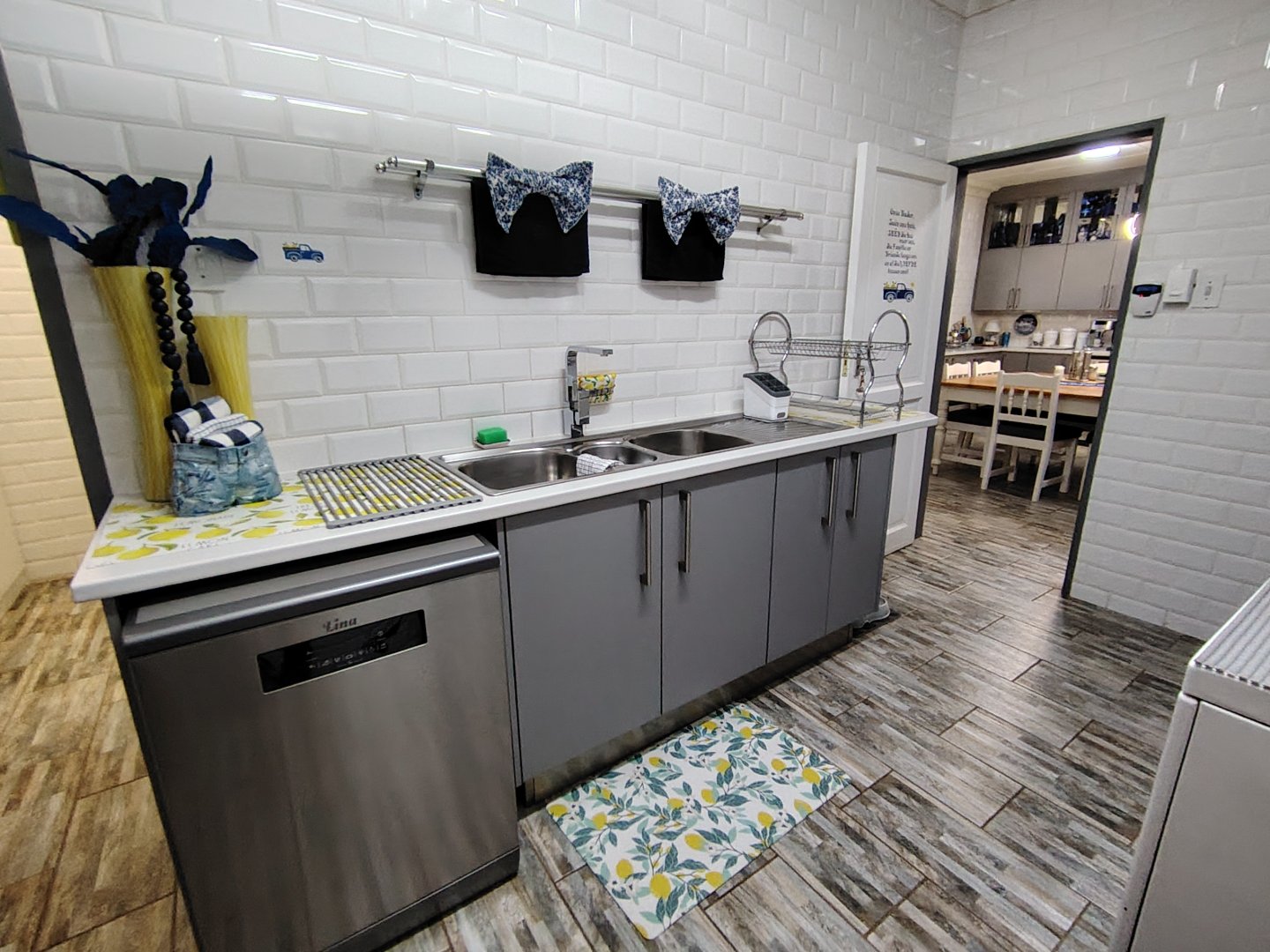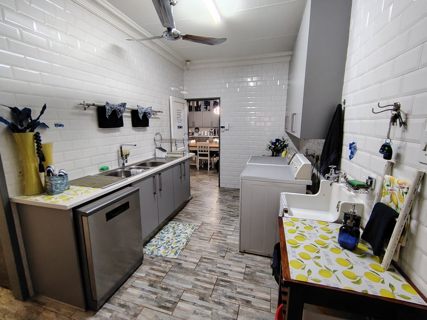 * The stylish kitchen is spacious with lots of built-in cupboards, gas stove and electric oven, scullery.