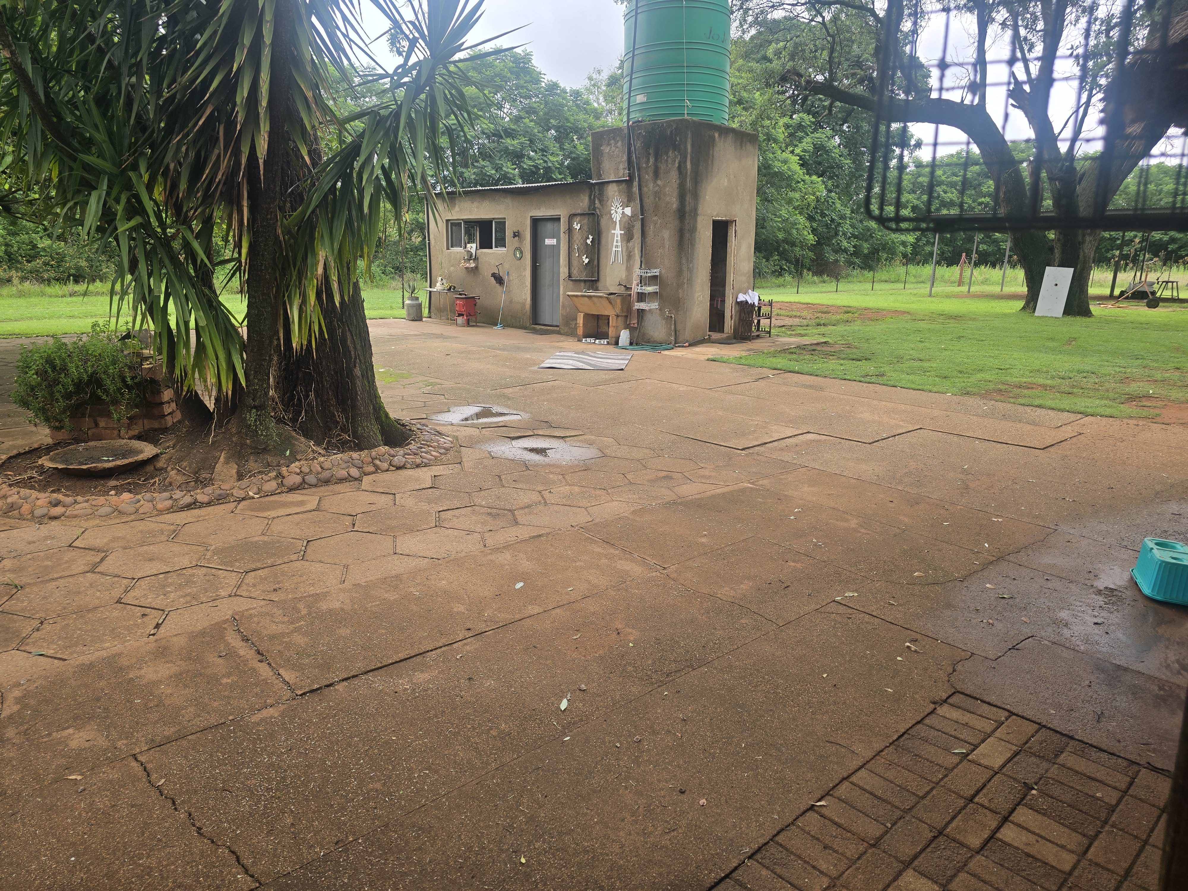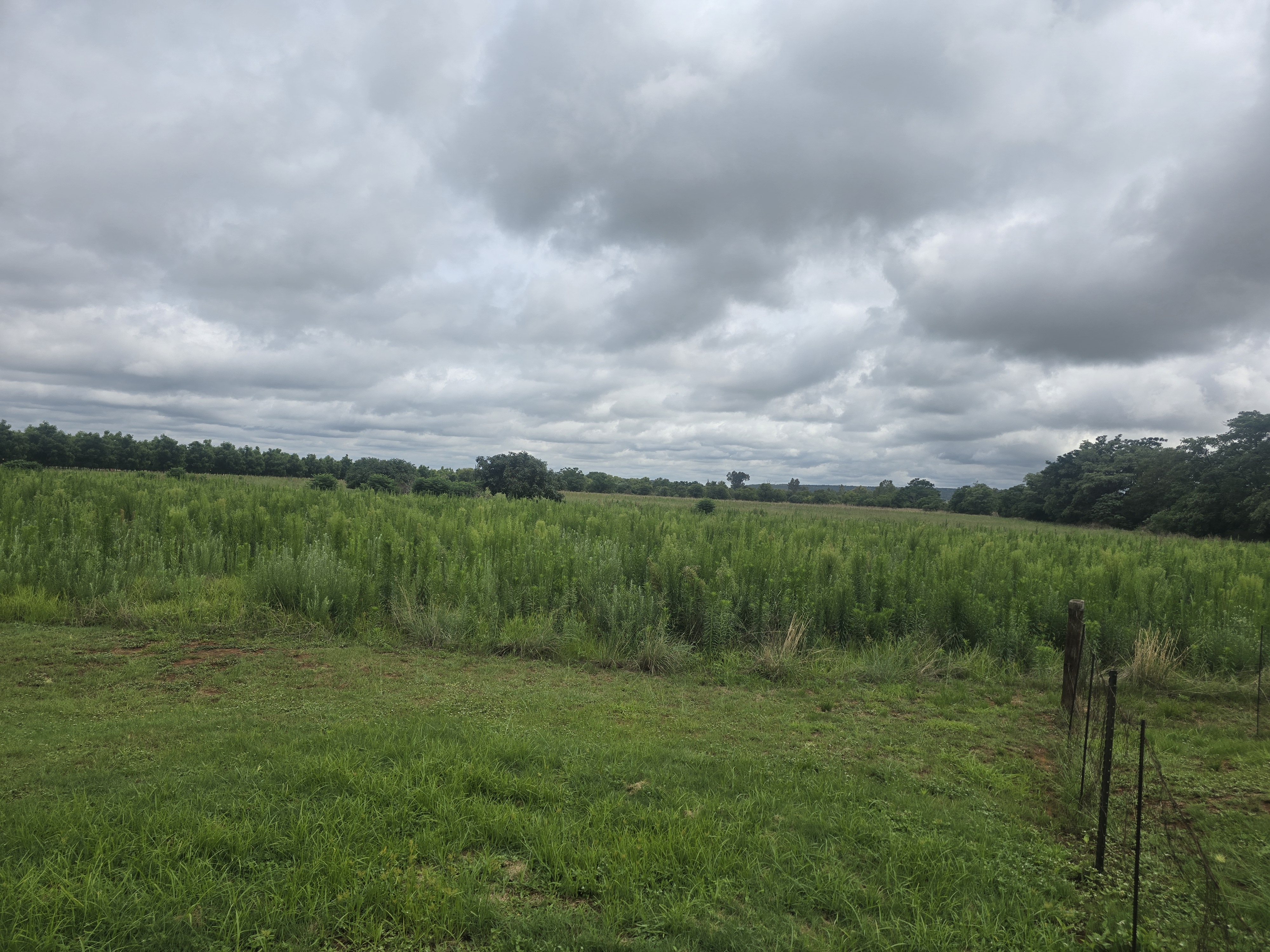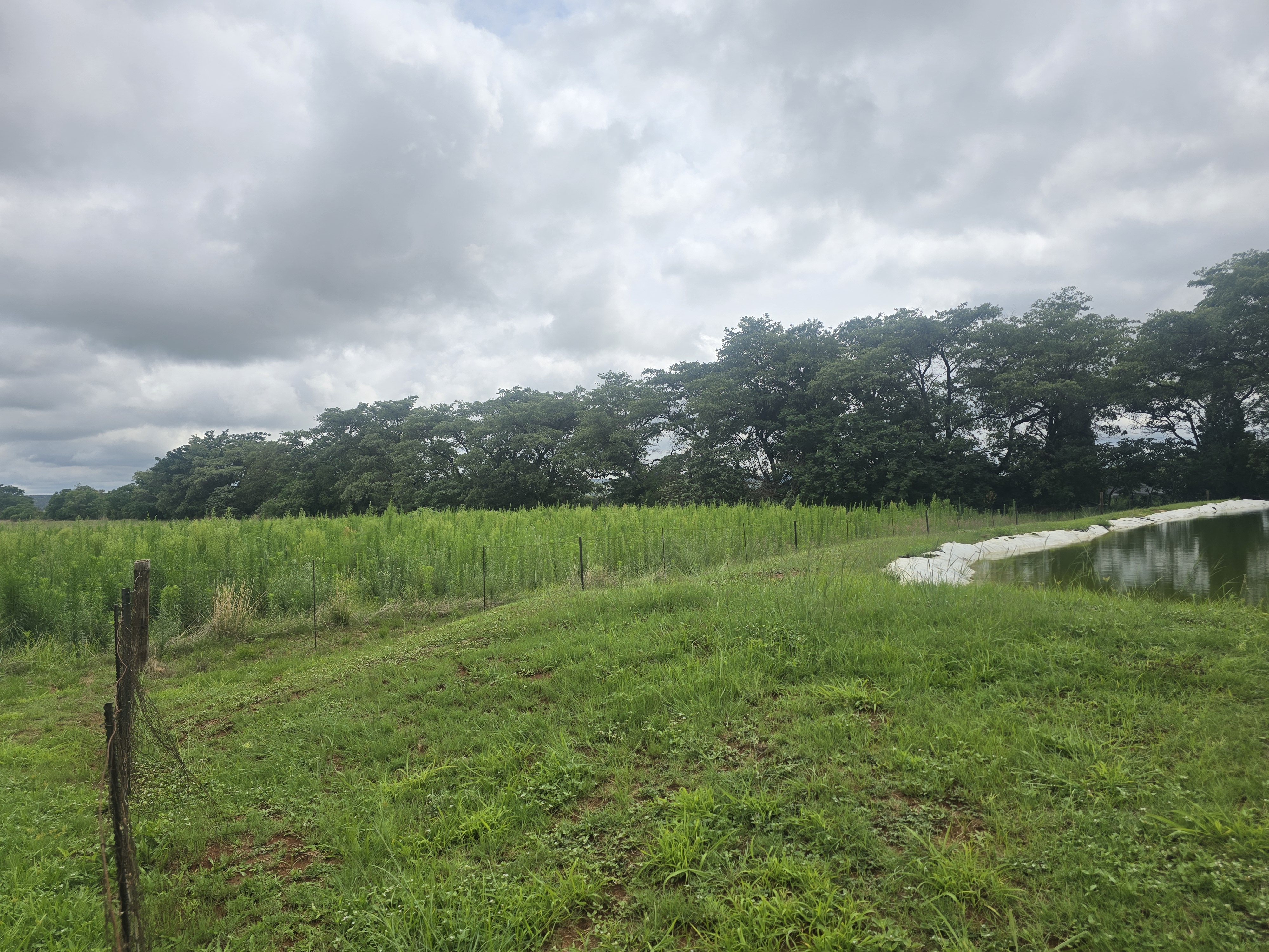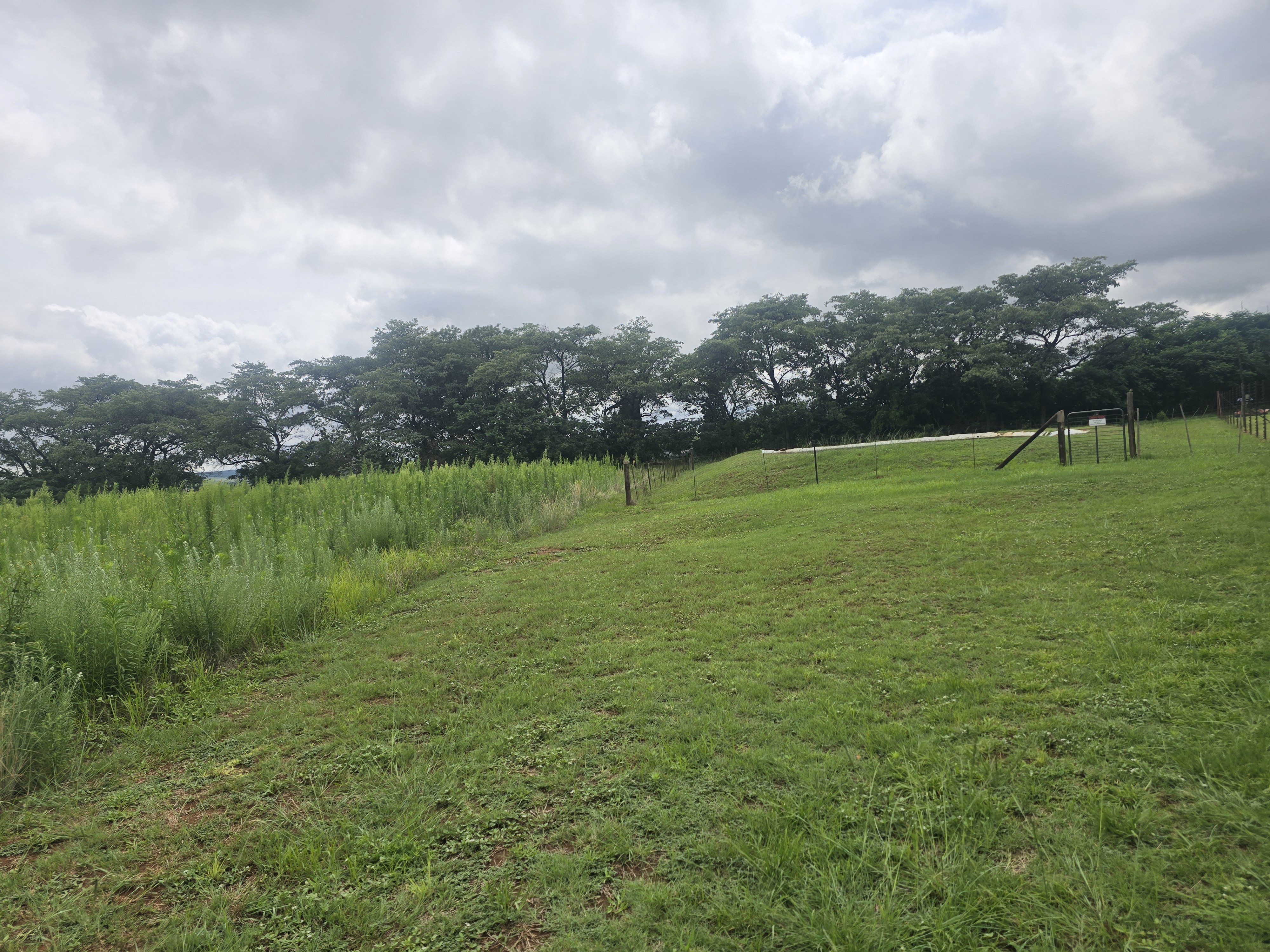 .Well-established living area fenced off from arable land