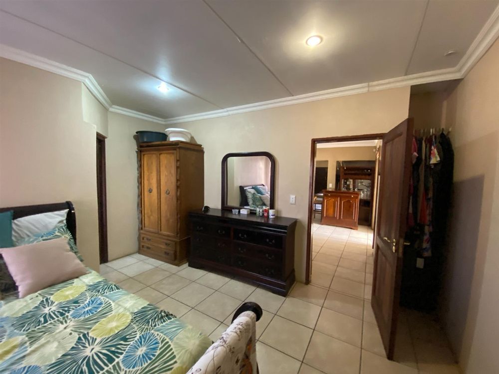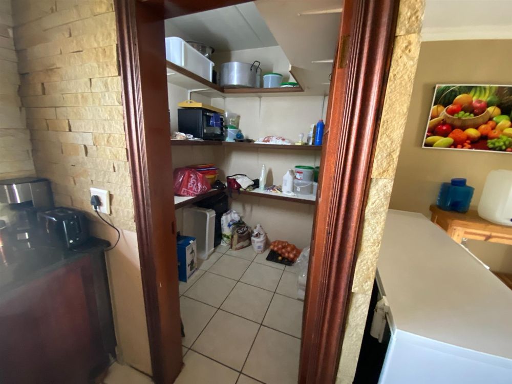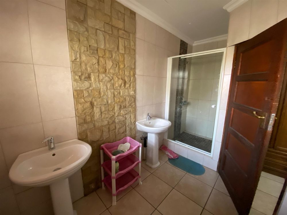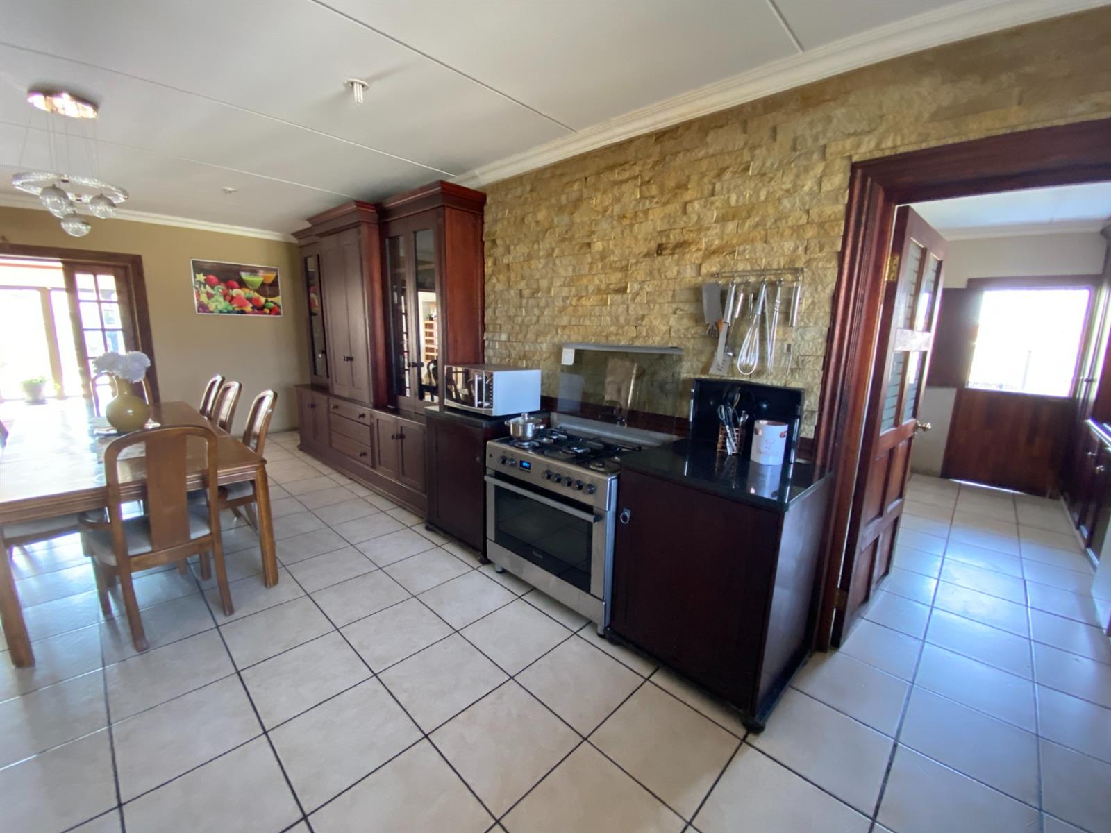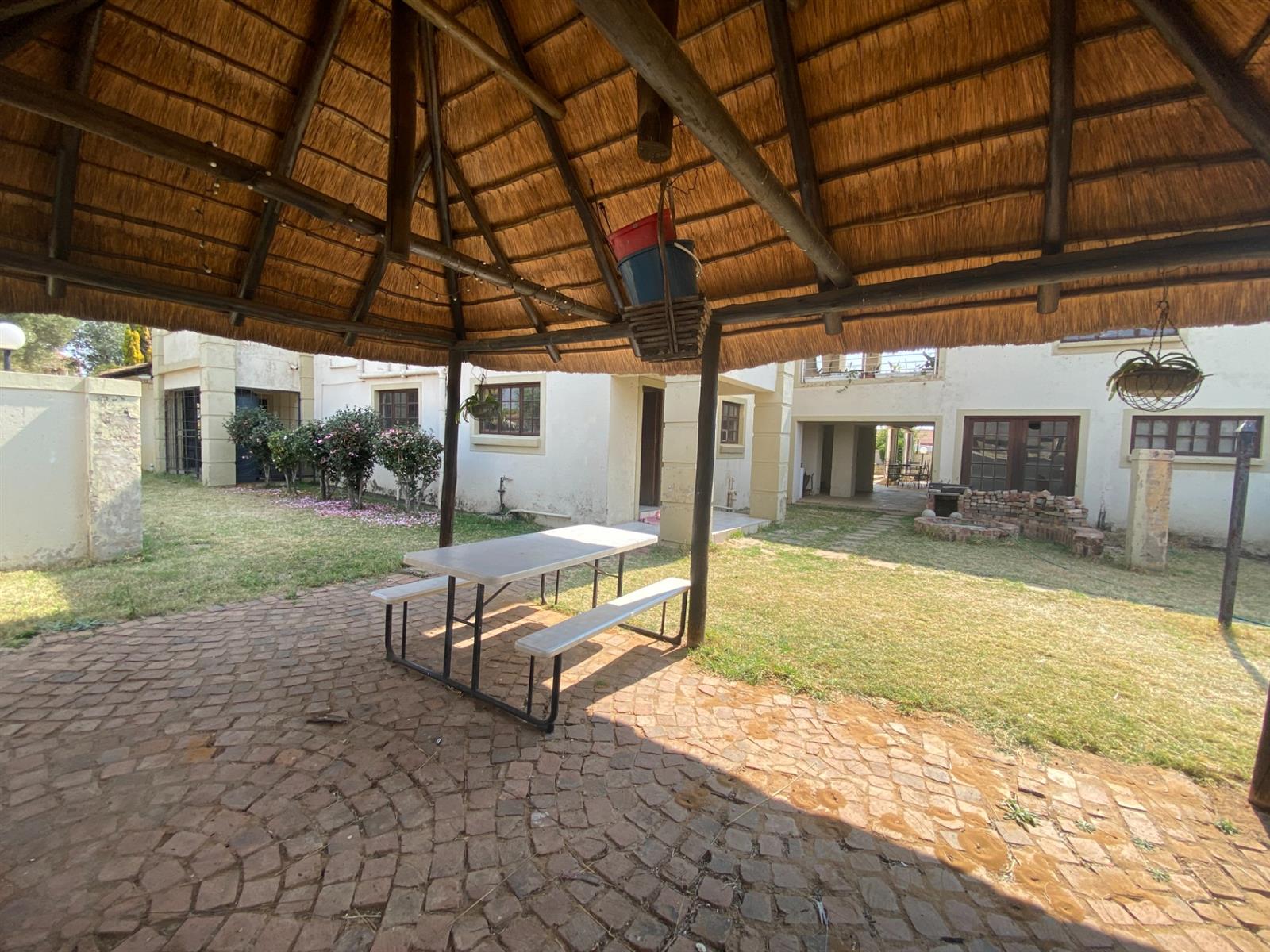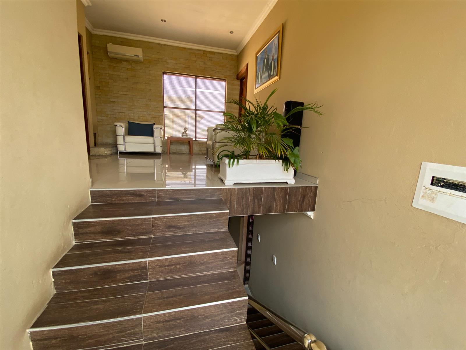 As you enter, you are welcomed by a double volume entrance hall which draws you to an entertainers dream of 2 well furnished living areas. The hall flows into the dining room area with a bar tucked neatly in a corner just outside of another 2 living areas with sliding doors that open out into the patio with the swimming pool and a lapa.