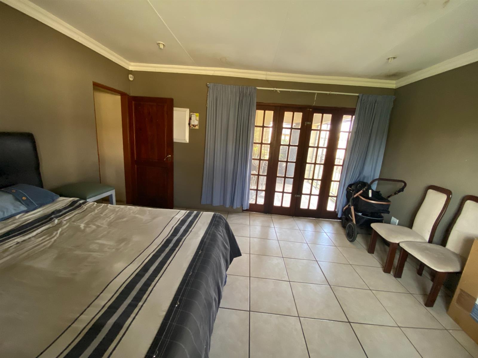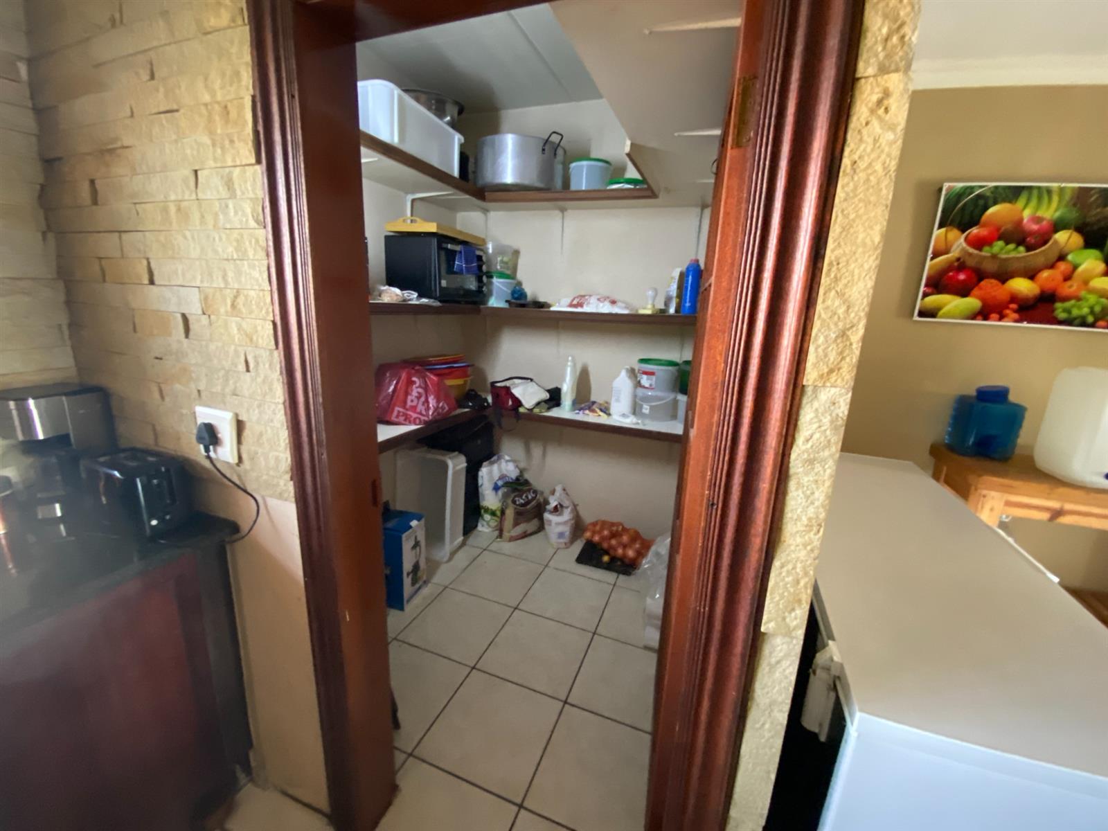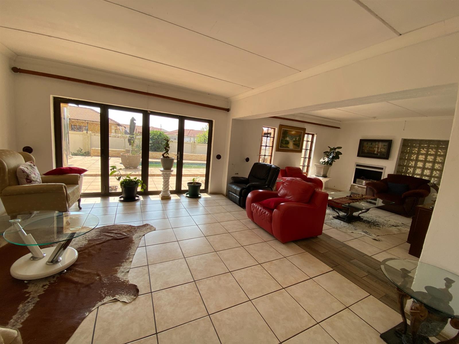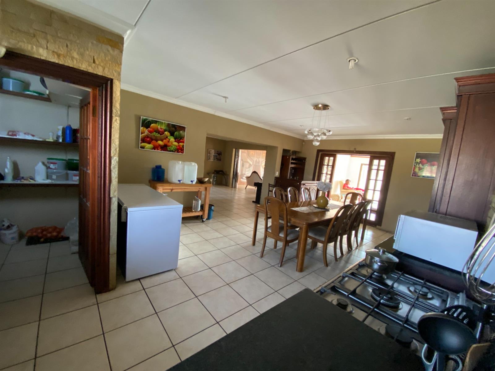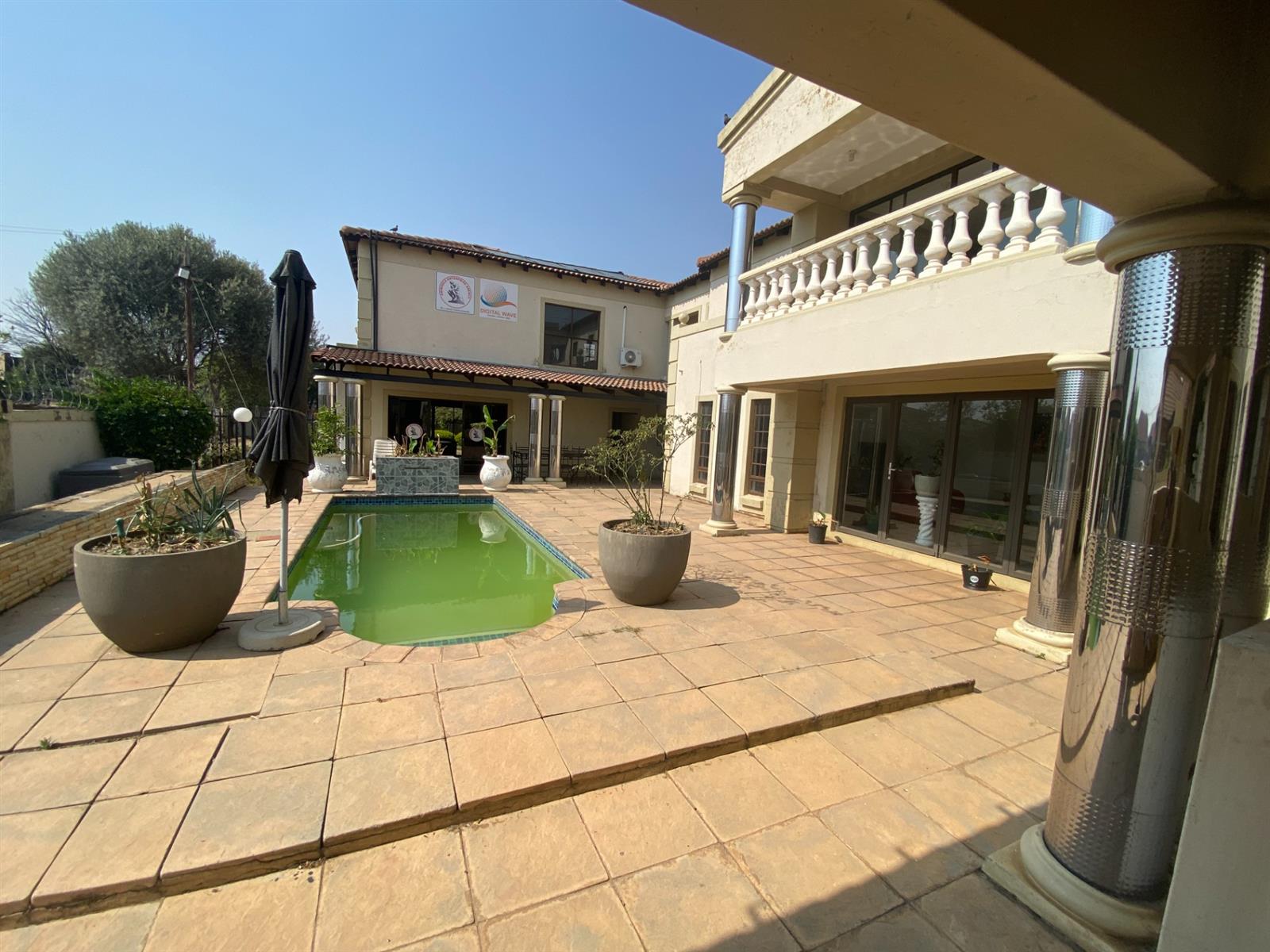 As you enter, you are welcomed by a double volume entrance hall which draws you to an entertainers dream of 2 well furnished living areas. The hall flows into the dining room area with a bar tucked neatly in a corner just outside of another 2 living areas with sliding doors that open out into the patio with the swimming pool and a lapa.