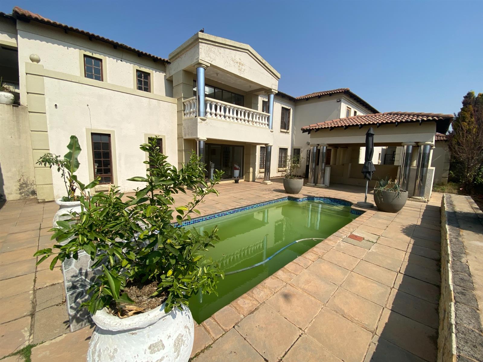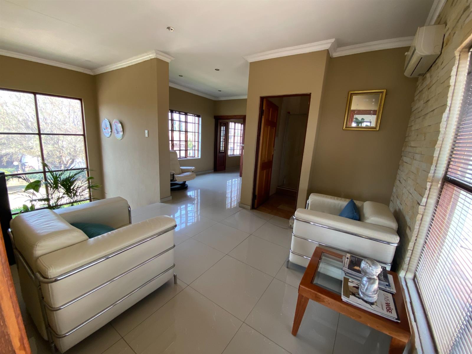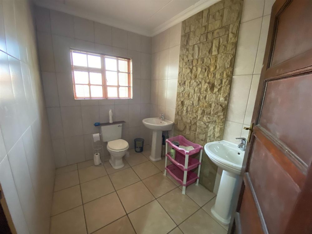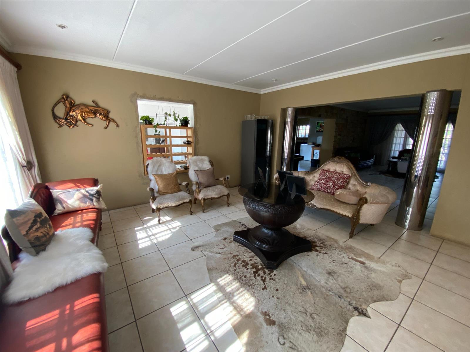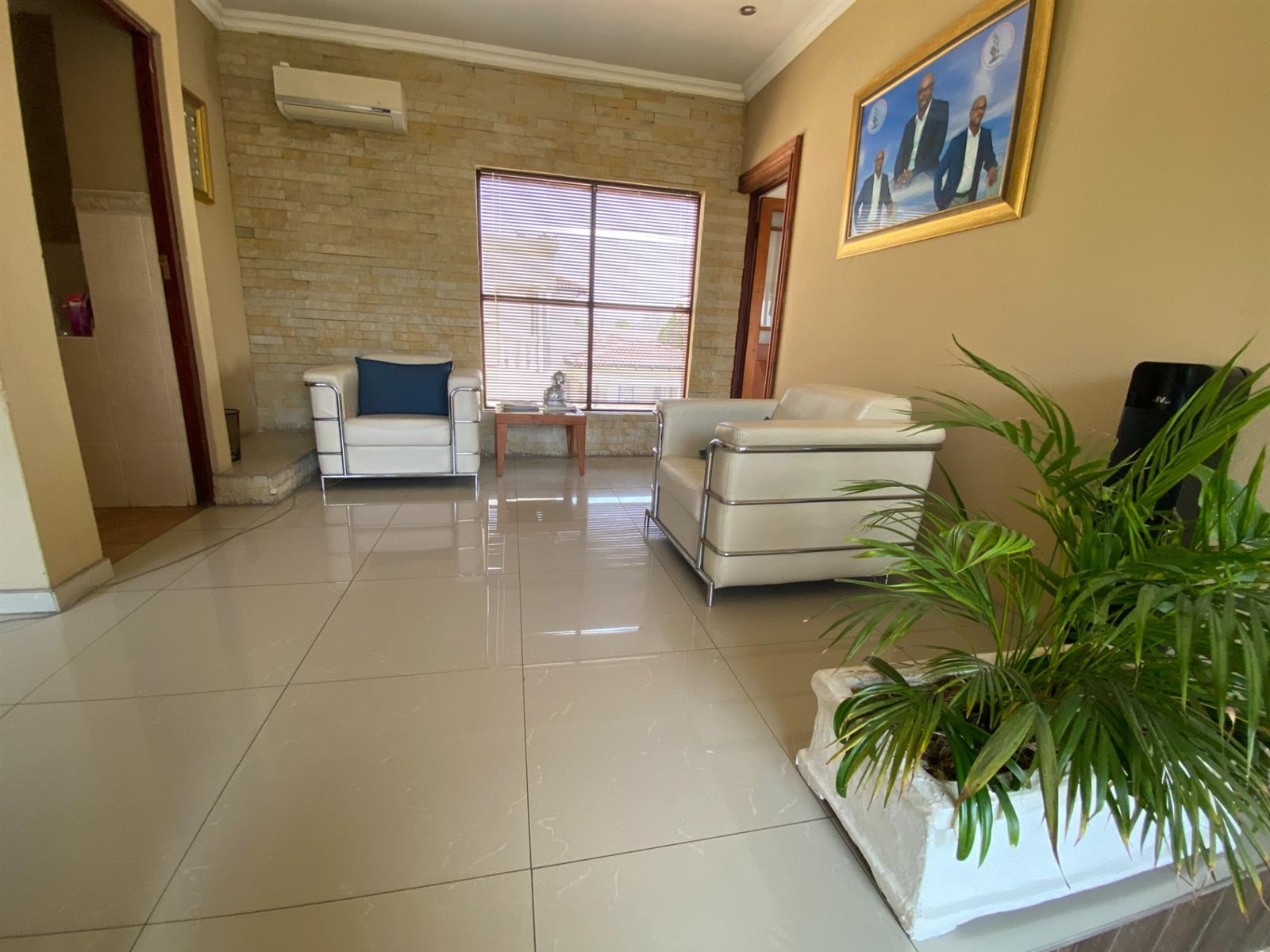 As you enter, you are welcomed by a double volume entrance hall which draws you to an entertainers dream of 2 well furnished living areas. The hall flows into the dining room area with a bar tucked neatly in a corner just outside of another 2 living areas with sliding doors that open out into the patio with the swimming pool and a lapa.