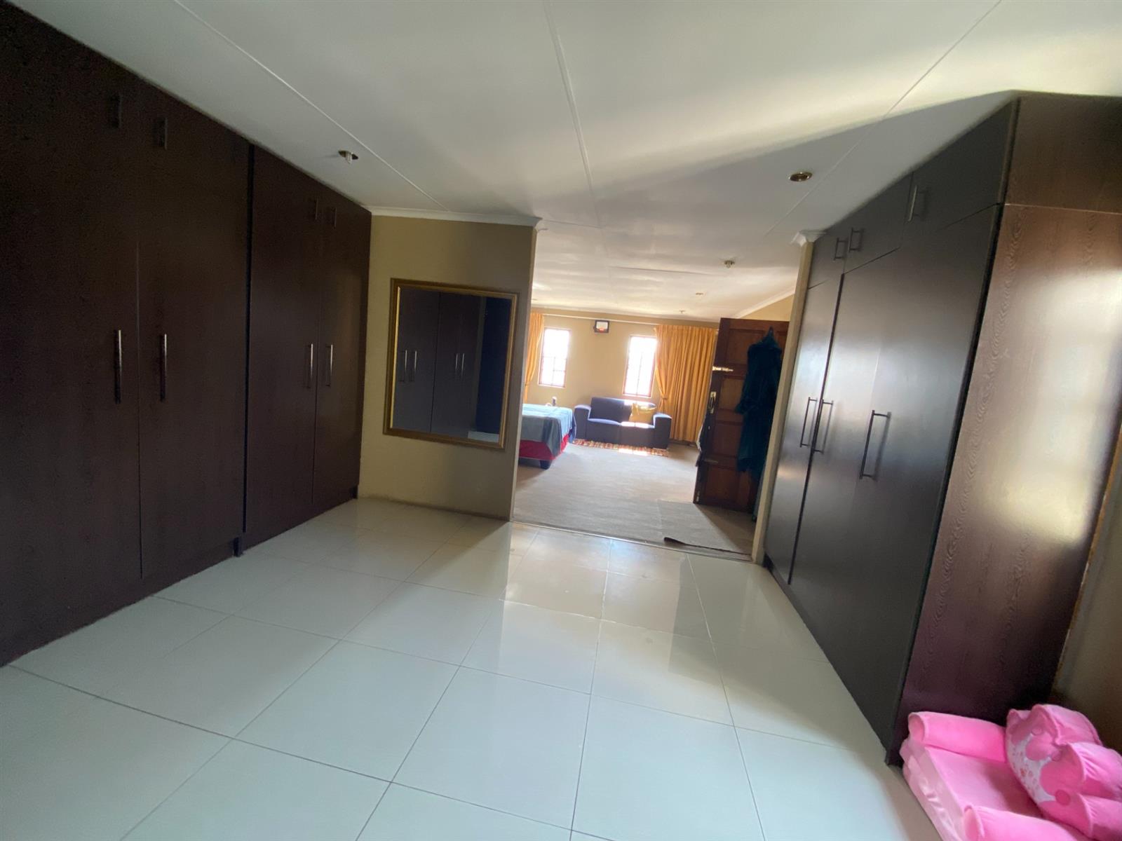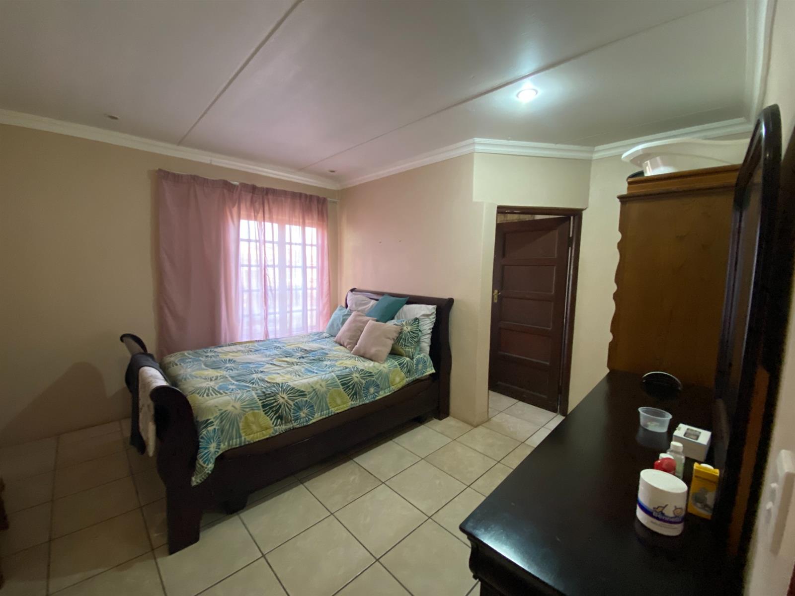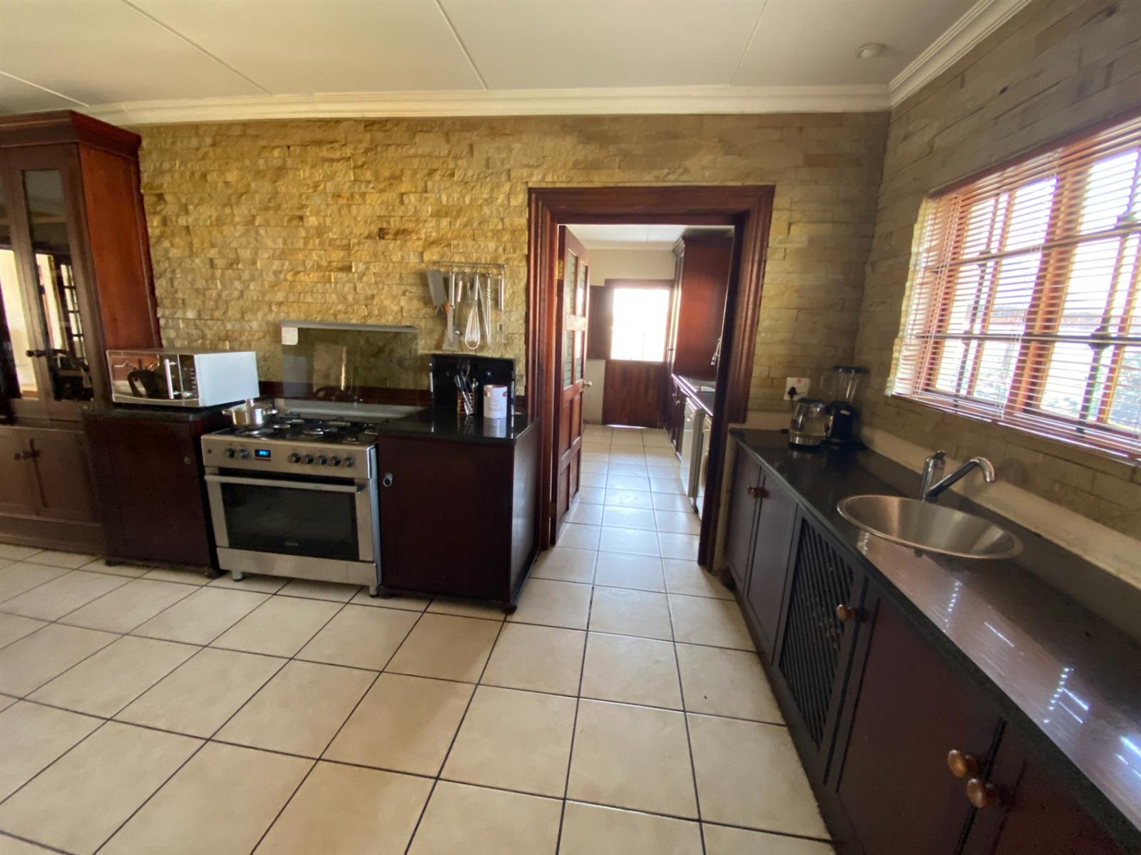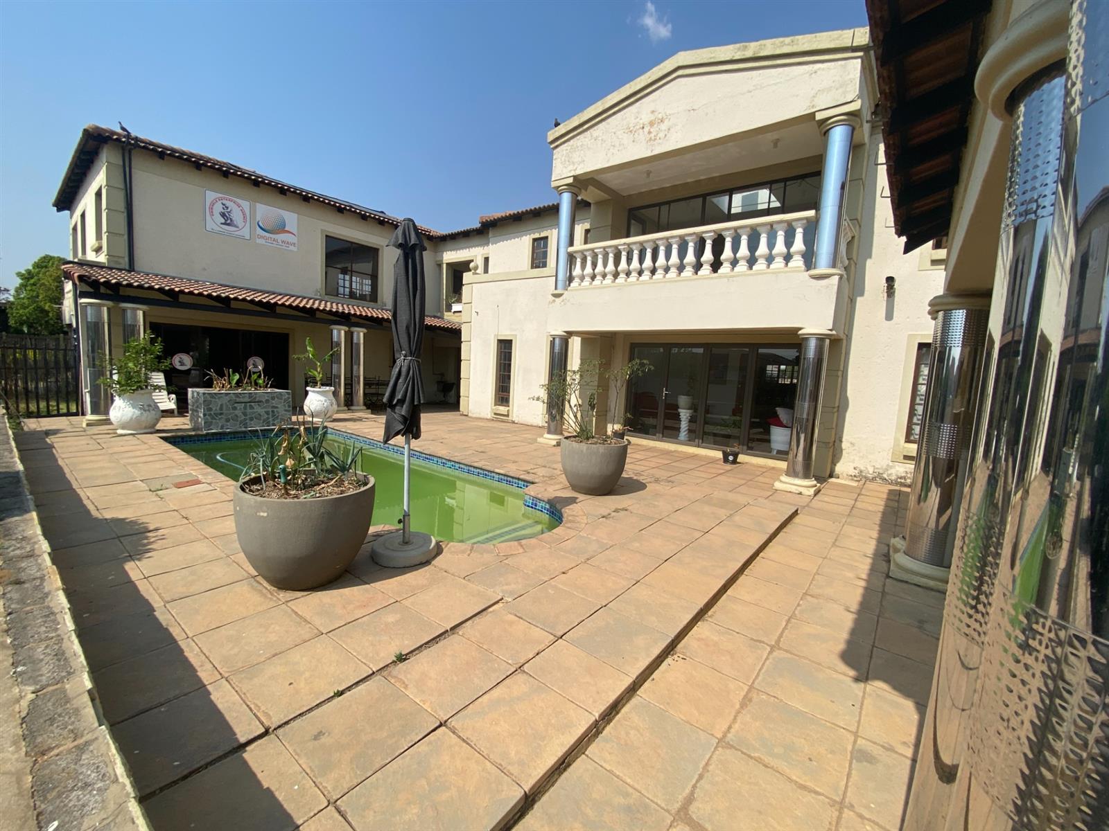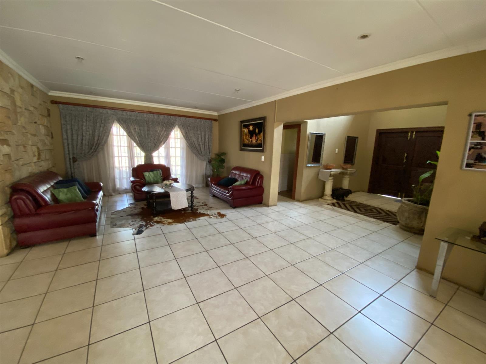 As you enter, you are welcomed by a double volume entrance hall which draws you to an entertainers dream of 2 well furnished living areas. The hall flows into the dining room area with a bar tucked neatly in a corner just outside of another 2 living areas with sliding doors that open out into the patio with the swimming pool and a lapa.