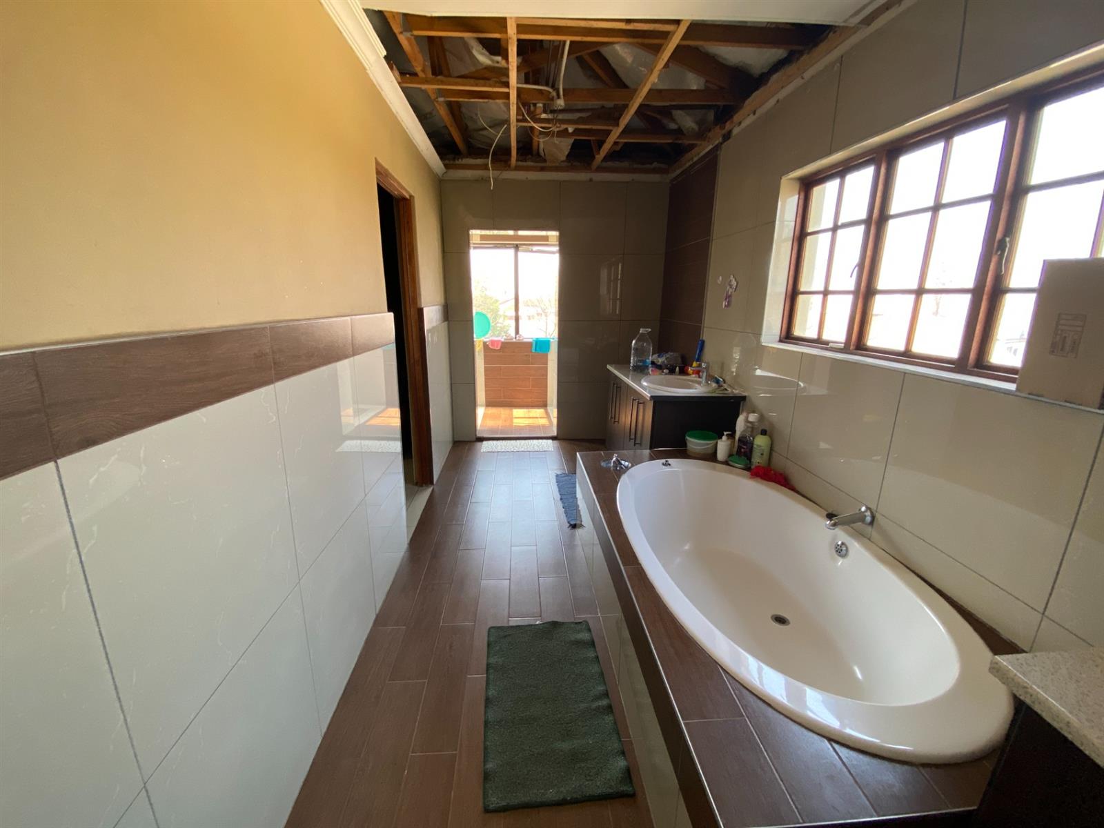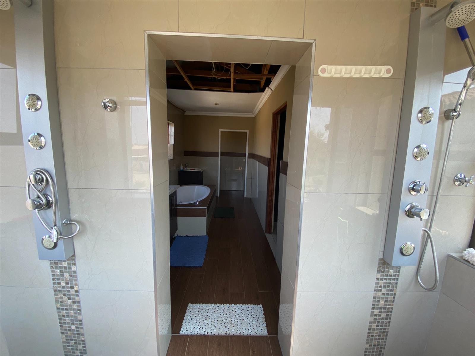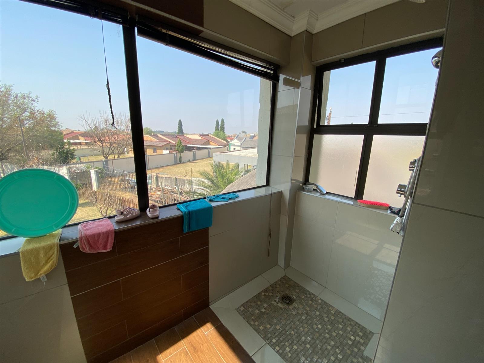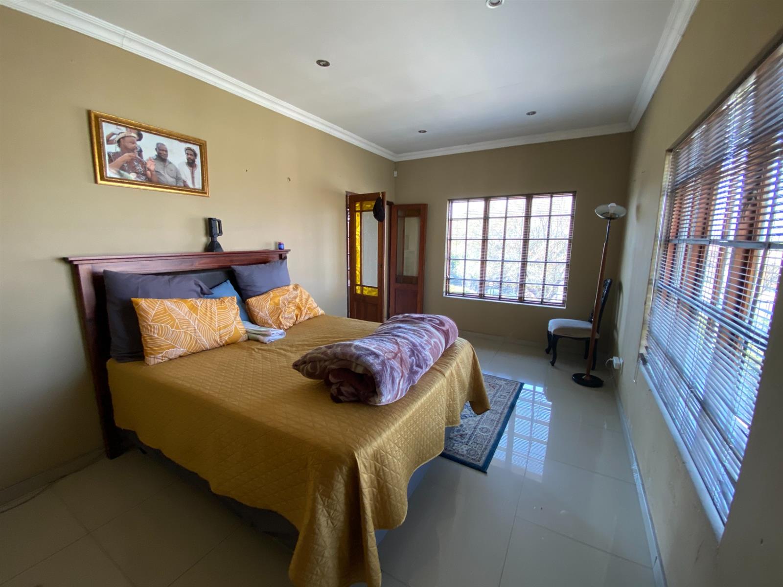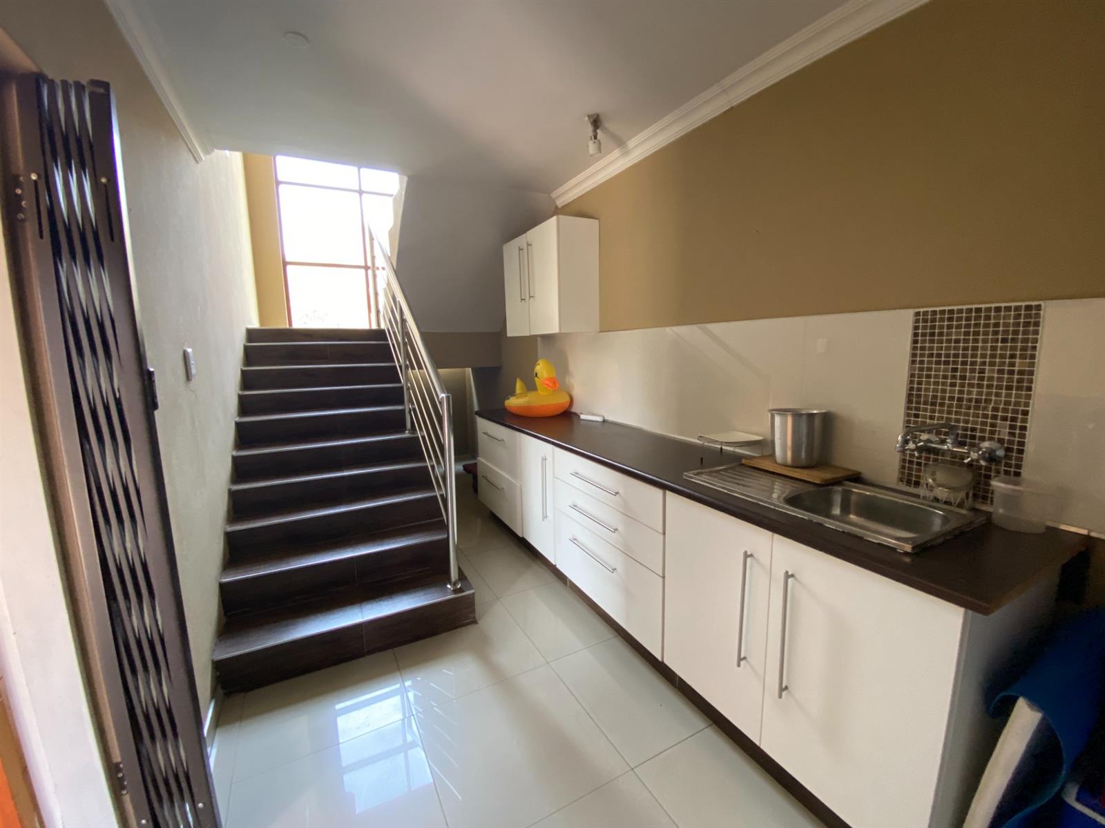 As you enter, you are welcomed by a double volume entrance hall which draws you to an entertainers dream of 2 well furnished living areas. The hall flows into the dining room area with a bar tucked neatly in a corner just outside of another 2 living areas with sliding doors that open out into the patio with the swimming pool and a lapa.