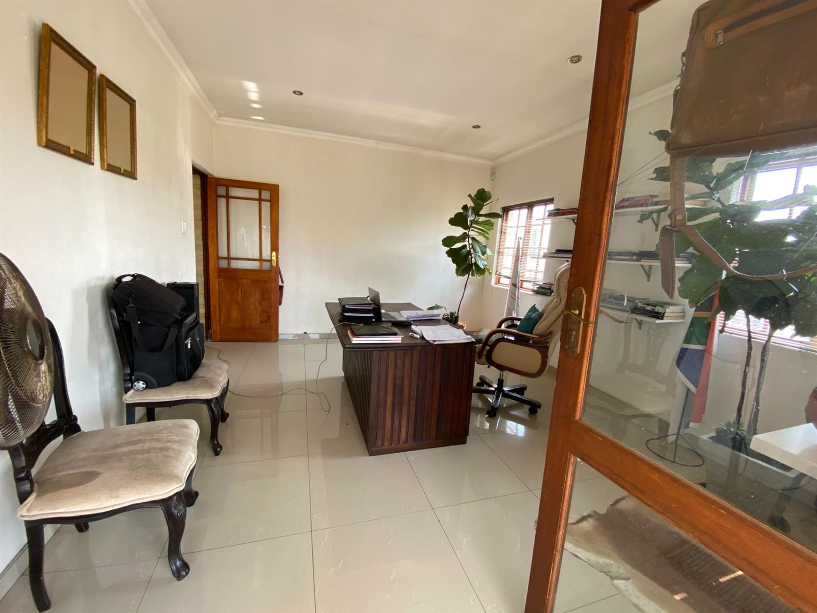 The Office space with 2 offices and 2 air-conditioned lounges and a bathroom is situated above the Pool Room which has a lounge, a bar and a kitchen. This building faces the pool and a lapa.