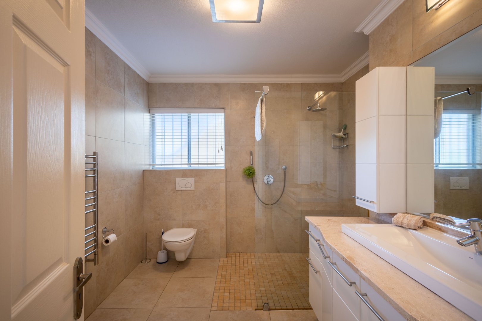 The main bedroom is away from the other rooms, it is spacious with its en suite and sliding doors to the garden. The other 3 bedrooms are situated together - one is en suite and the other two share a full bathroom. All the bedrooms are good sizes.