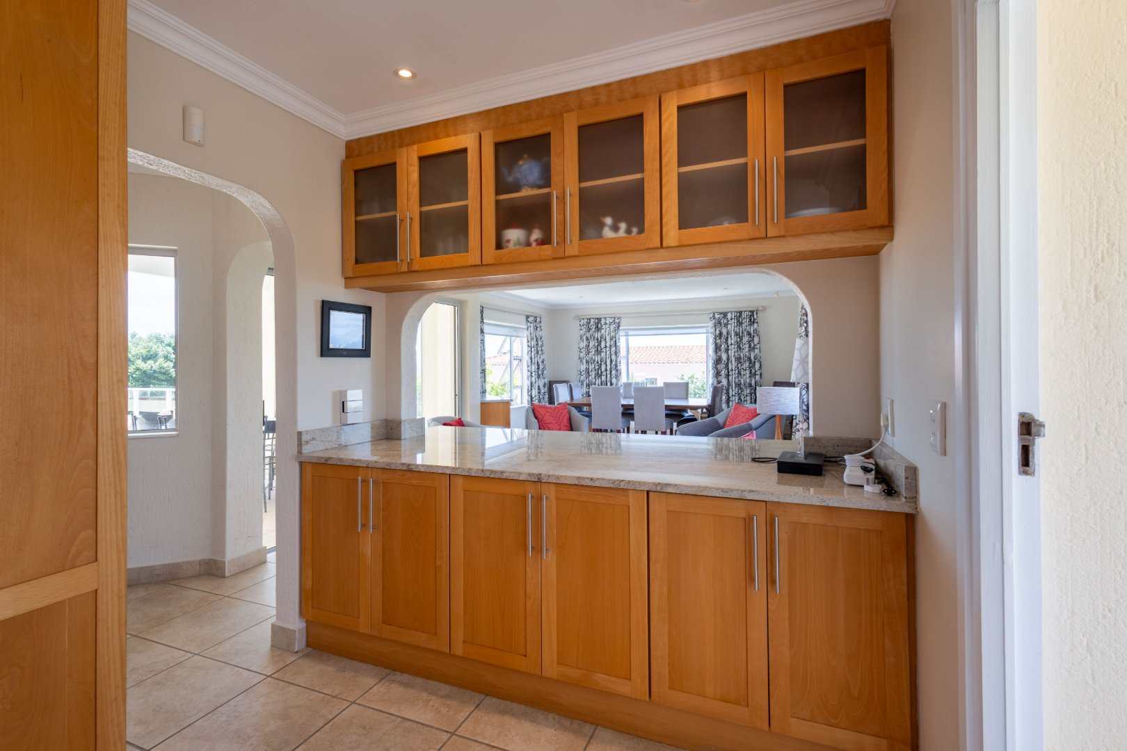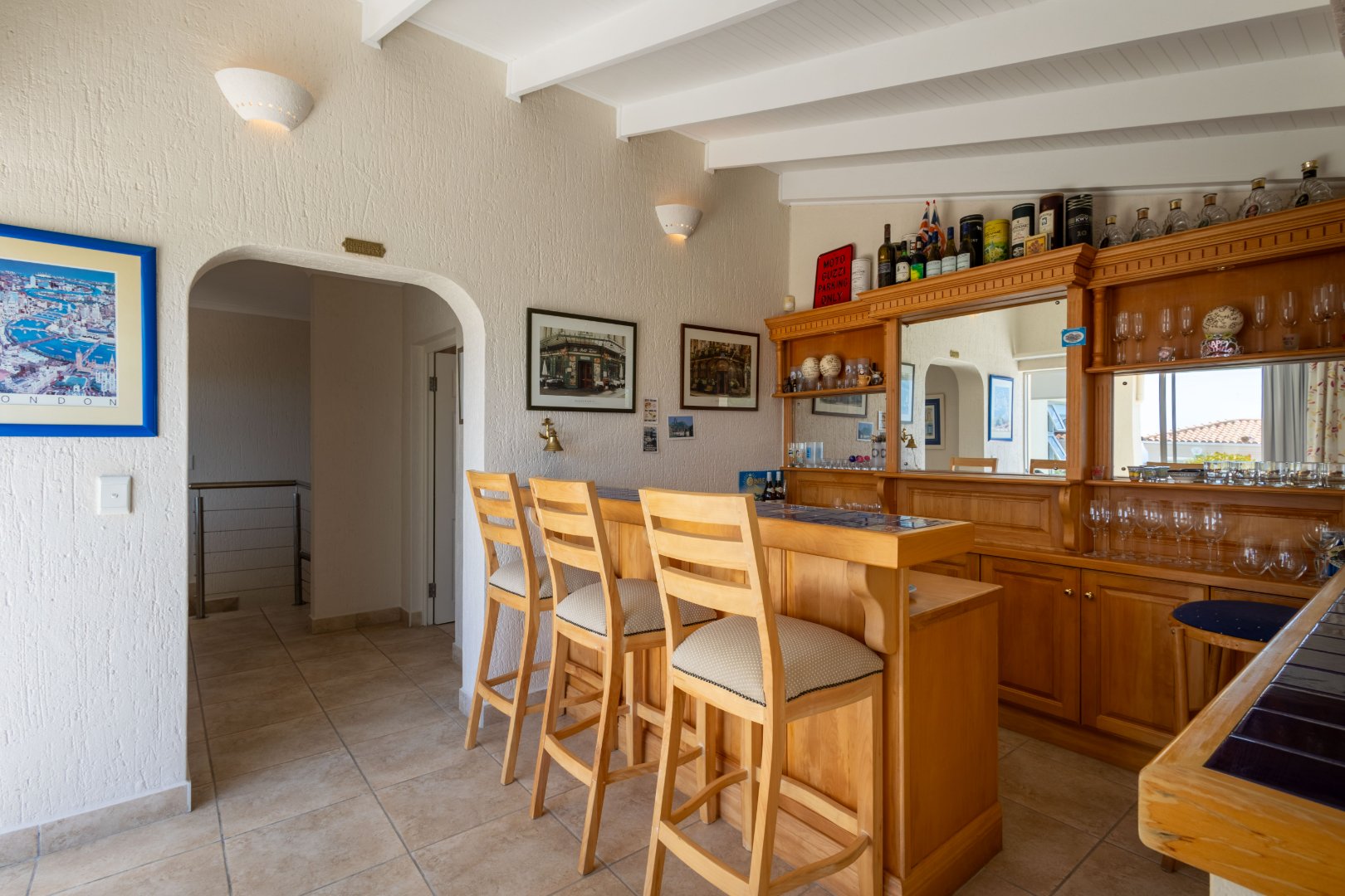 A Pub that leads to the Living Room with ample room for all your family gatherings. These rooms lead out to the Patio which has room for dining and seating areas, and perfect for braaiing whilst watching the sea view. The garden is a good size with space to add a pool if you need one.