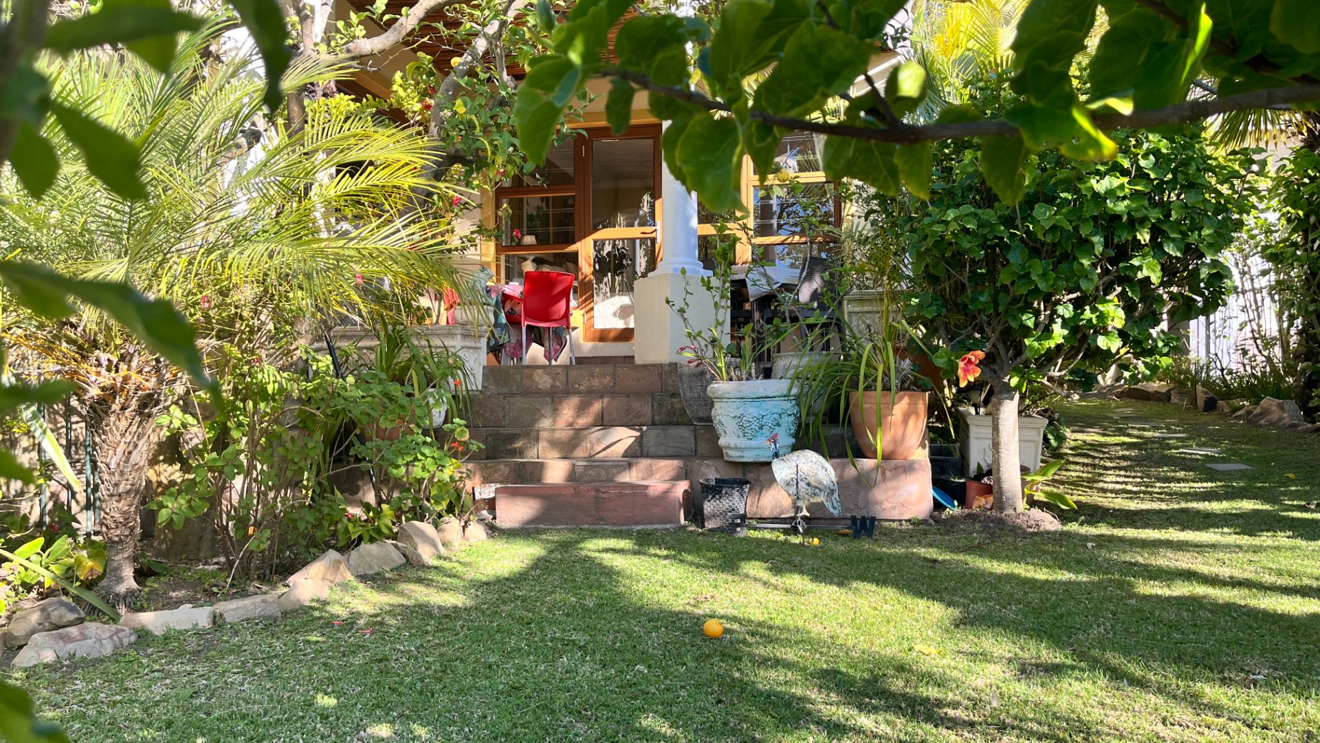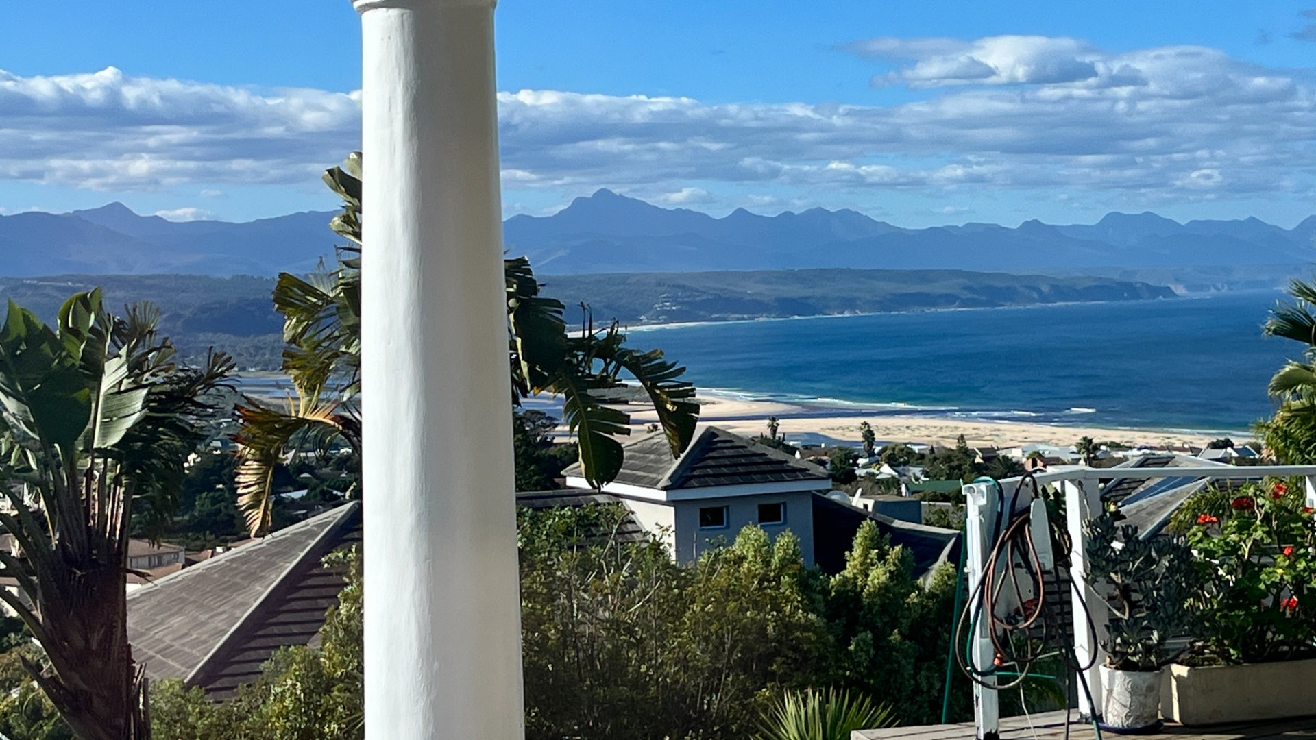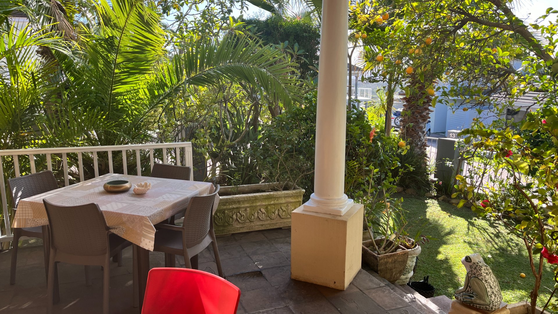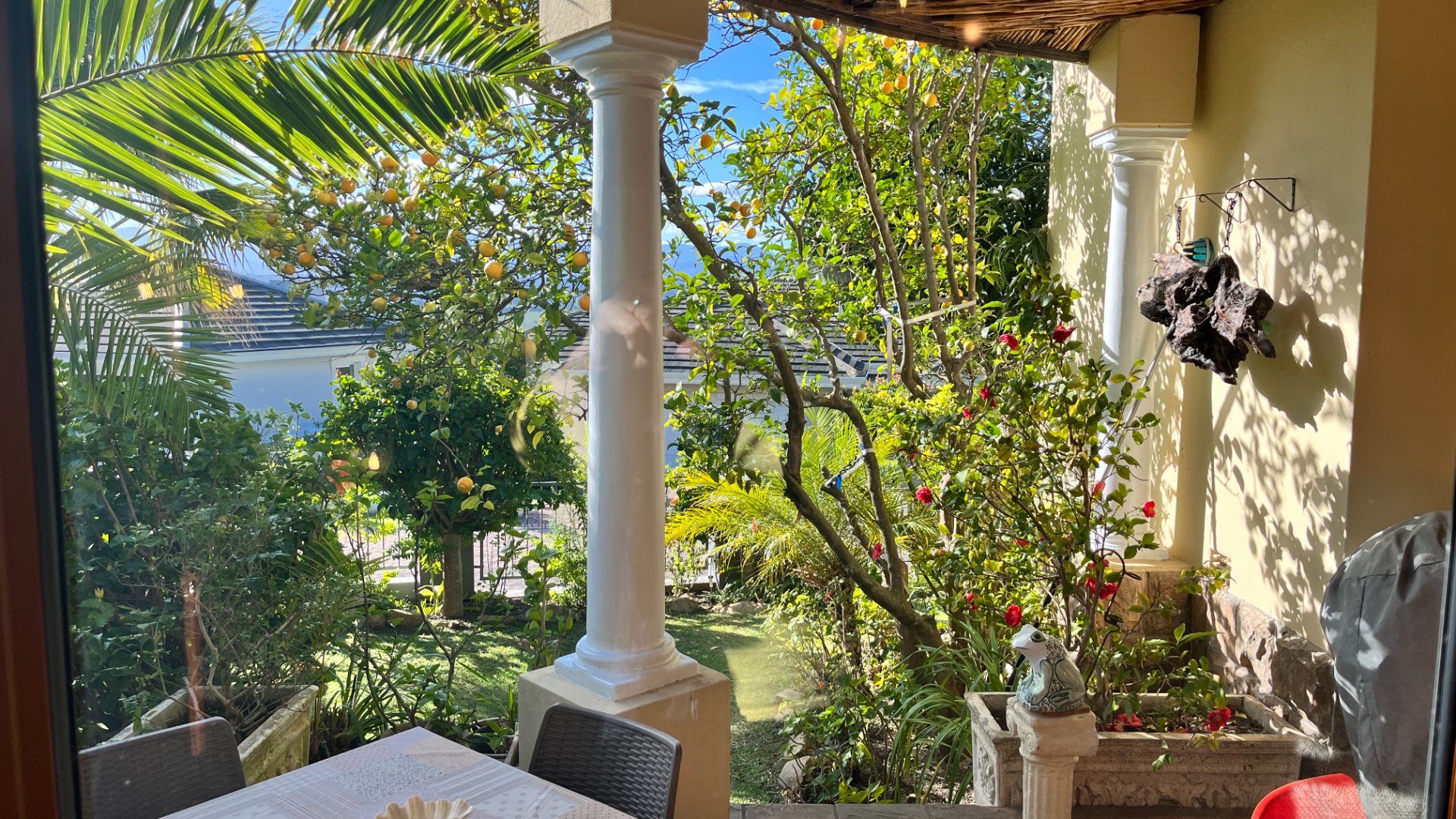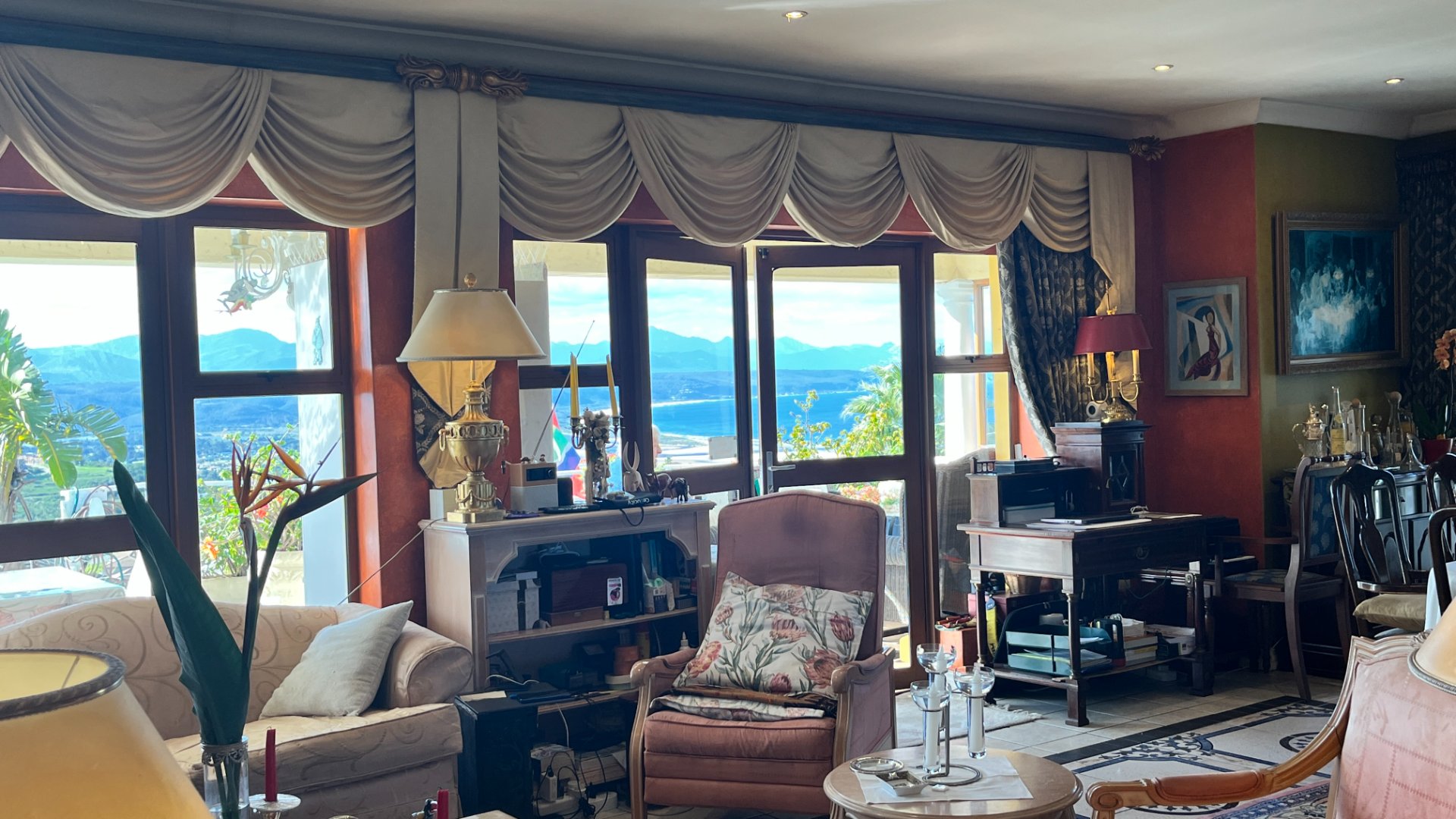 This home has so much on offer. There are 2 lounges, dining room, 4 bedrooms – all en-suite and patio with space for lounging and eating, sparkling splash pool and views for Africa. The main living areas of this home are upstairs, to enable you to enjoy the best of the views. Downstairs is the entrance leading to the one lounge and dining area, 3 spacious bedrooms all en suite. The one has a pyjama lounge area and a private patio. The other 2 bedrooms share a patio that overlooks the pretty but manageable garden. Upstairs is the main bedroom, the large lounge and dining room with open plan kitchen with granite tops, and a separate scullery and laundry. These living rooms lead to the spacious patio with the splash pool. There is a double garage, and all of this is set in an exclusive estate.