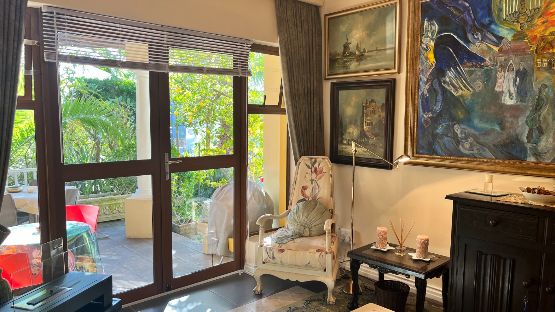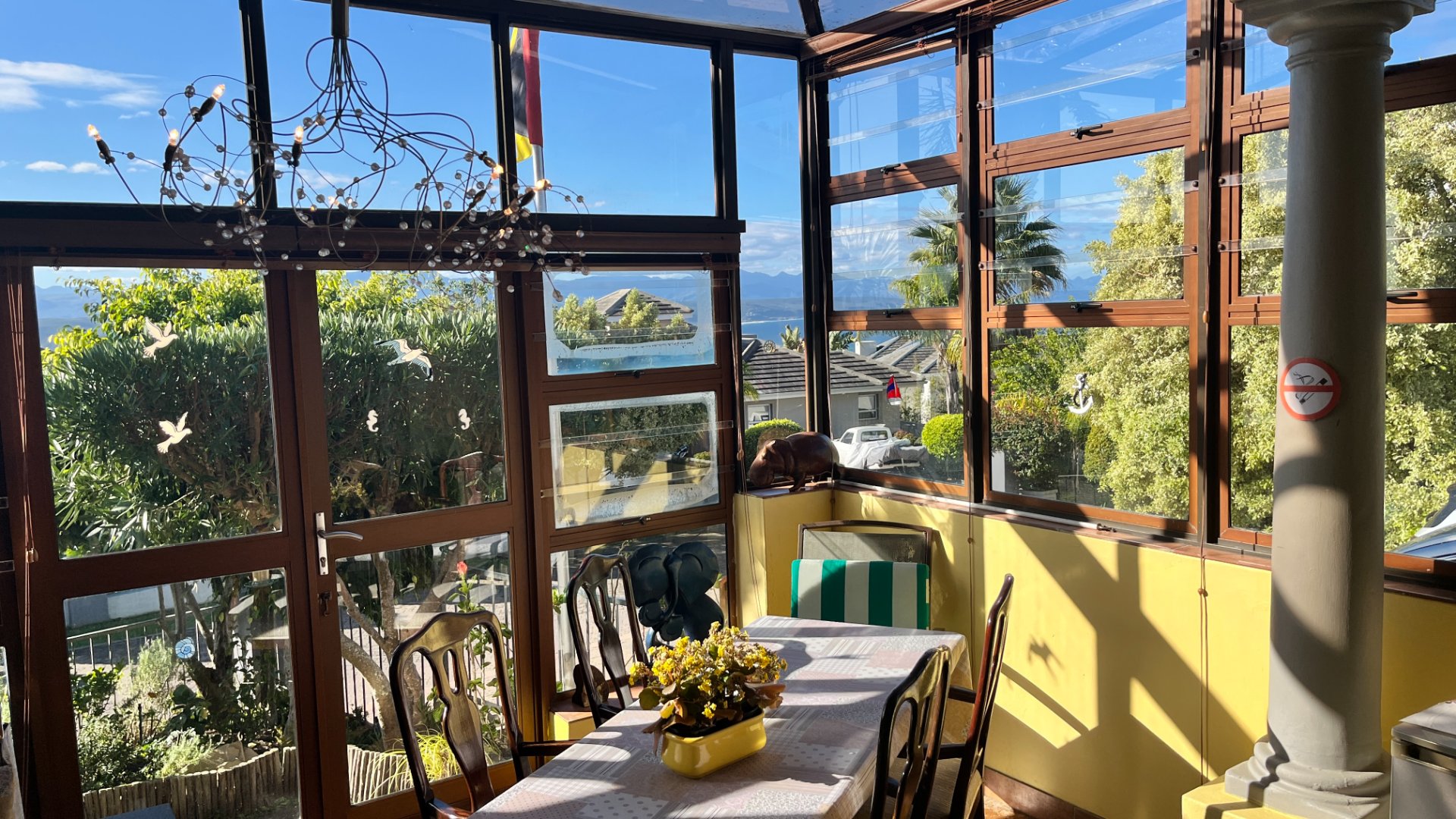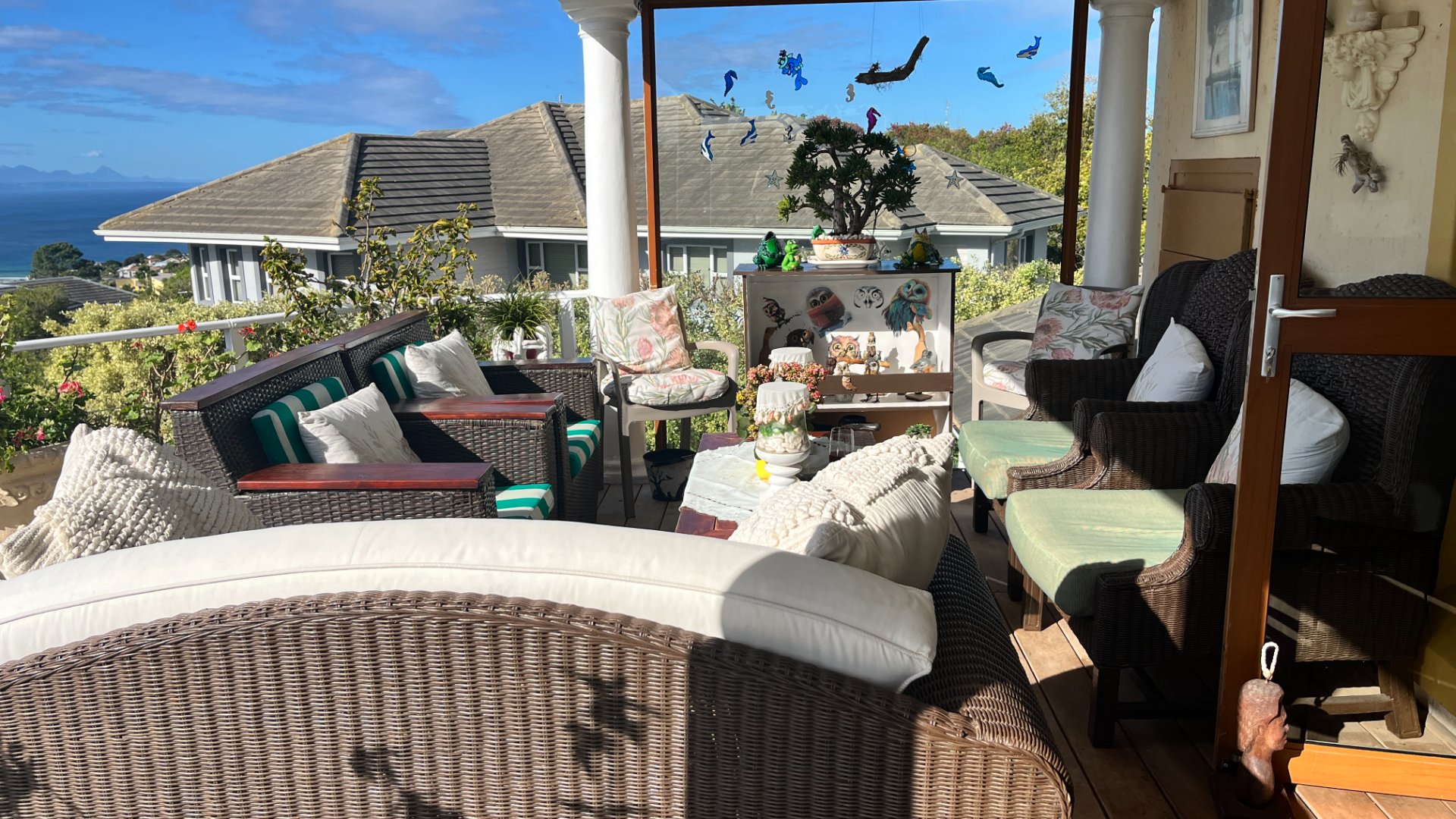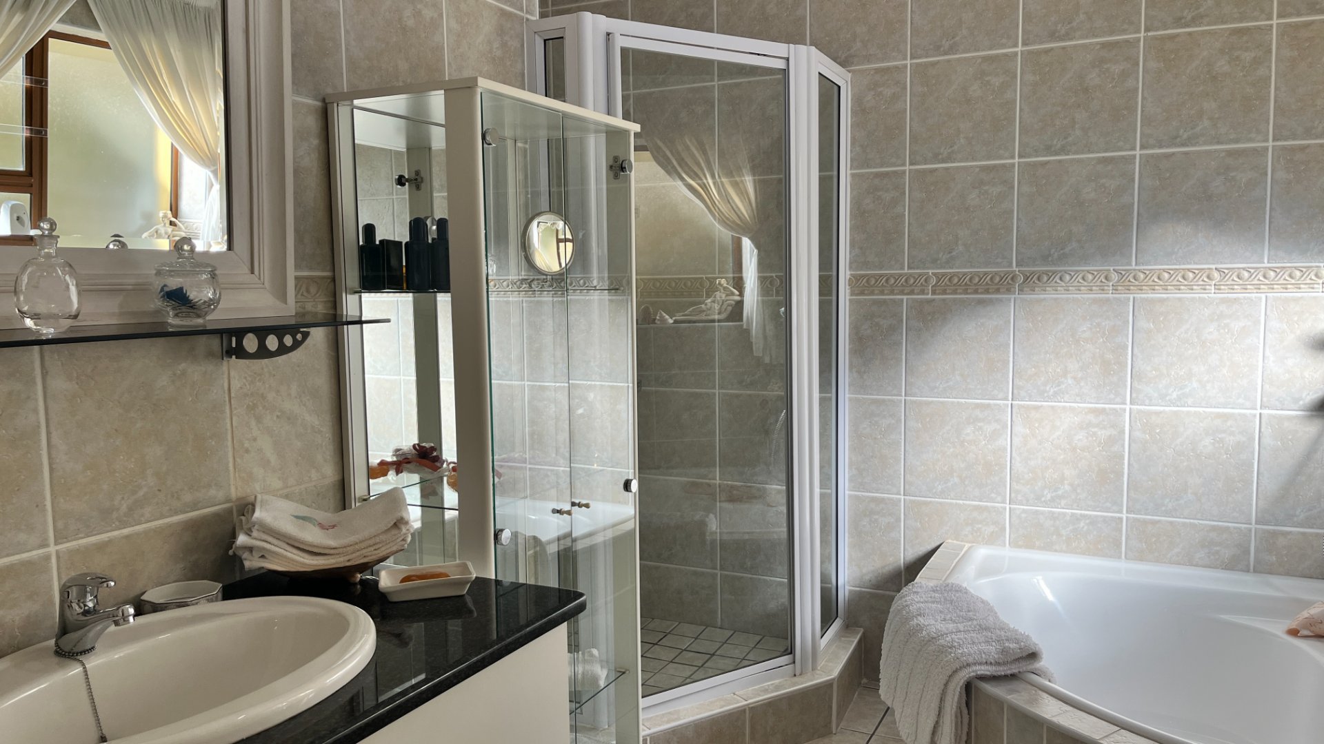 This home has so much on offer. There are 2 lounges, dining room, 4 bedrooms – all en-suite and patio with space for lounging and eating, sparkling splash pool and views for Africa. The main living areas of this home are upstairs, to enable you to enjoy the best of the views. Downstairs is the entrance leading to the one lounge and dining area, 3 spacious bedrooms all en suite. The one has a pyjama lounge area and a private patio. The other 2 bedrooms share a patio that overlooks the pretty but manageable garden. Upstairs is the main bedroom, the large lounge and dining room with open plan kitchen with granite tops, and a separate scullery and laundry. These living rooms lead to the spacious patio with the splash pool. There is a double garage, and all of this is set in an exclusive estate.