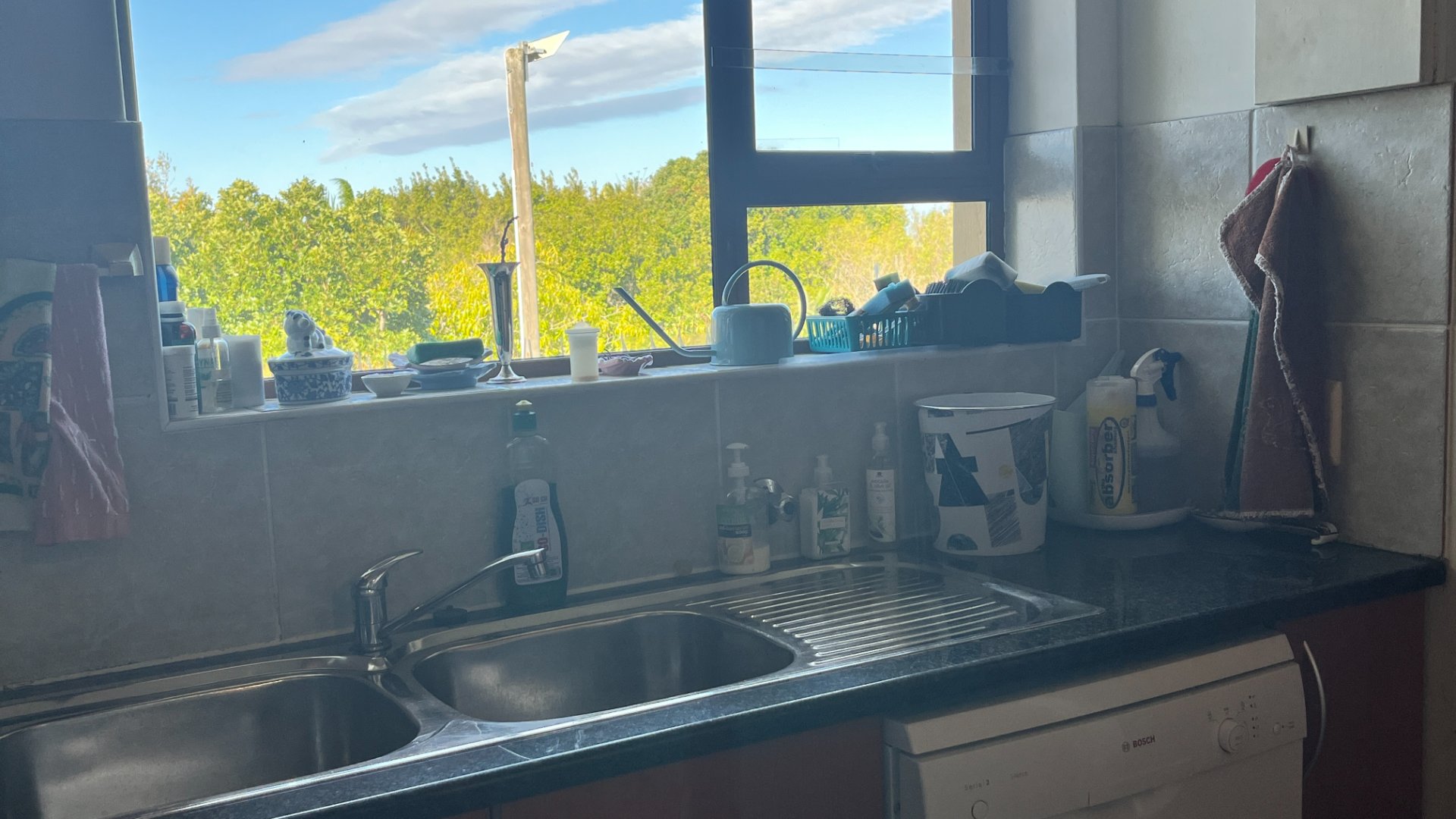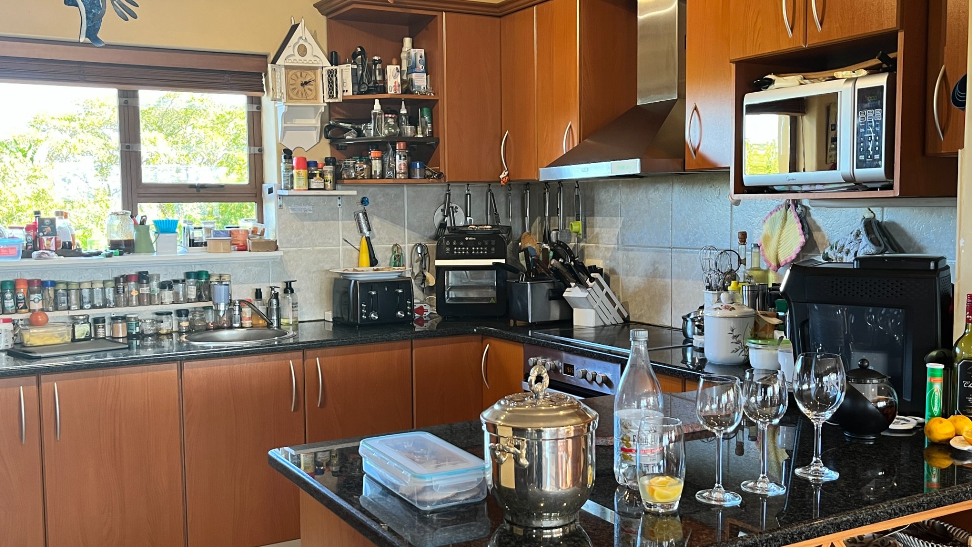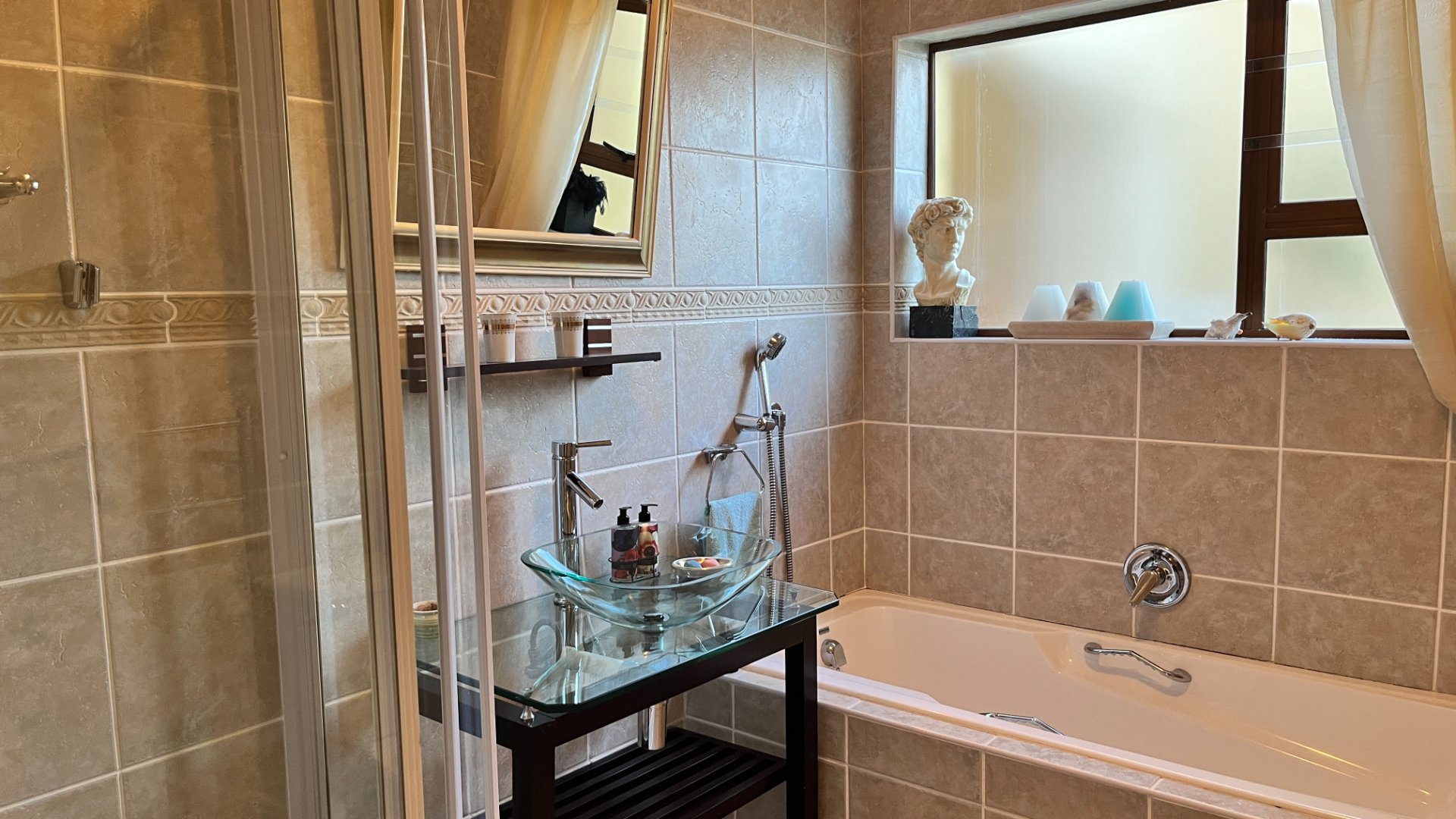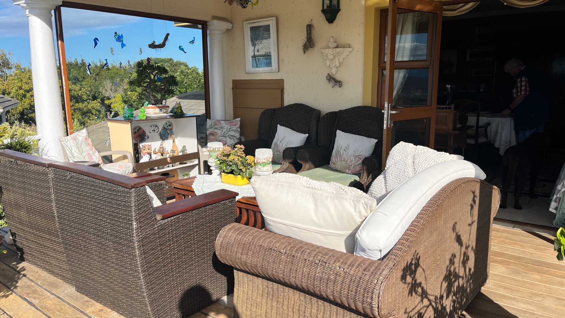This home has so much on offer. There are 2 lounges, dining room, 4 bedrooms – all en-suite and patio with space for lounging and eating, sparkling splash pool and views for Africa. The main living areas of this home are upstairs, to enable you to enjoy the best of the views. Downstairs is the entrance leading to the one lounge and dining area, 3 spacious bedrooms all en suite. The one has a pyjama lounge area and a private patio. The other 2 bedrooms share a patio that overlooks the pretty but manageable garden. Upstairs is the main bedroom, the large lounge and dining room with open plan kitchen with granite tops, and a separate scullery and laundry. These living rooms lead to the spacious patio with the splash pool. There is a double garage, and all of this is set in an exclusive estate.