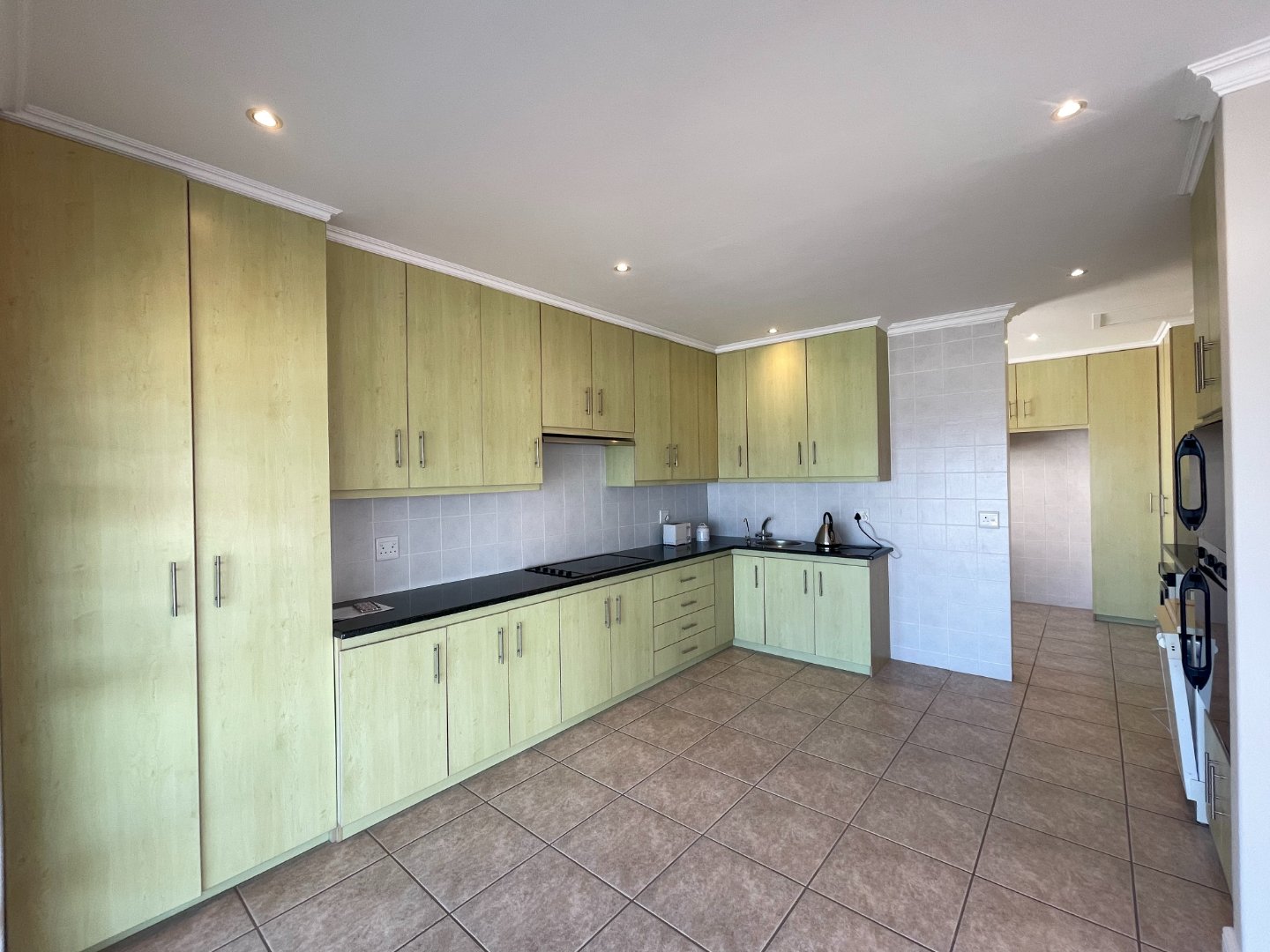 The well planned kitchen is fitted with ample cabinetry, granite countertops, a built-in stove with extractor fan, two eye-level ovens, a built-in BBQ, and a separate scullery/laundry area—ideal for large families or enthusiastic hosts.