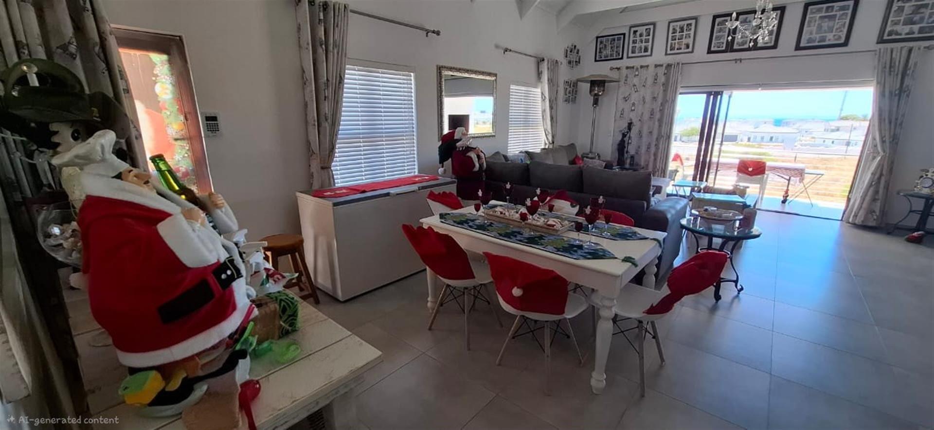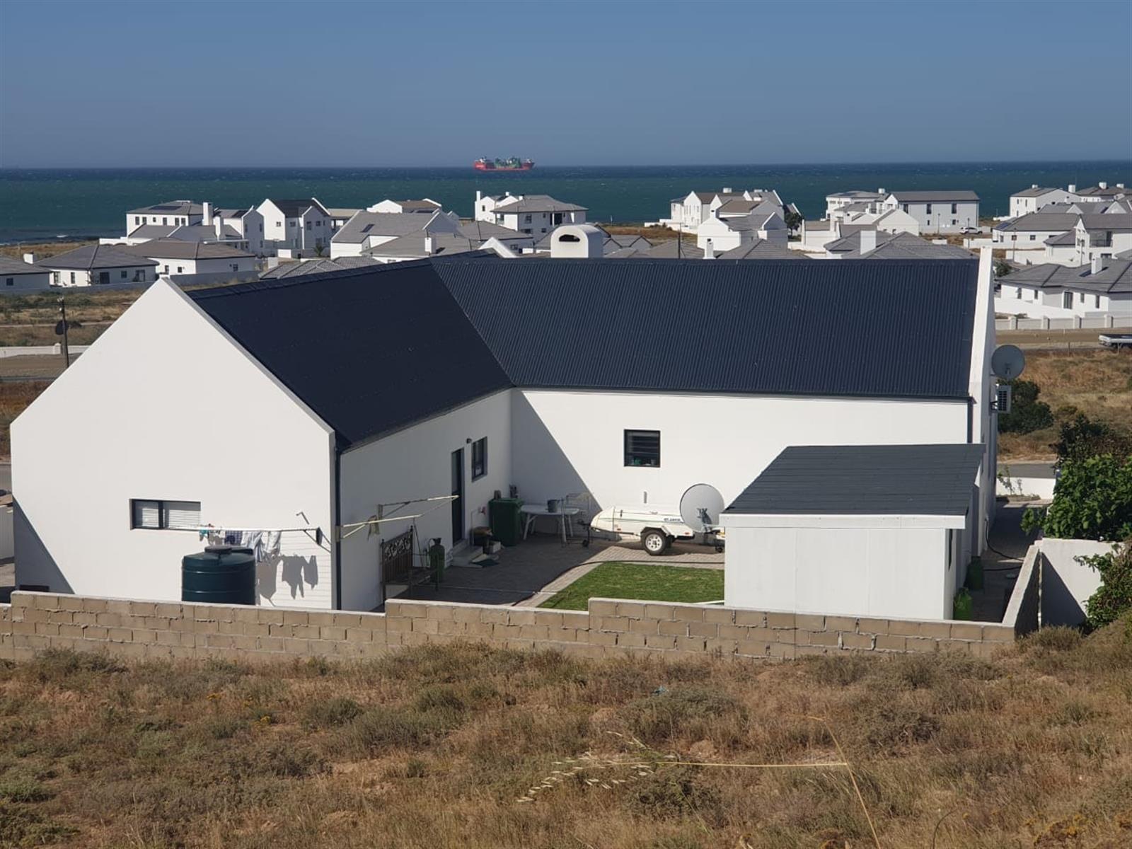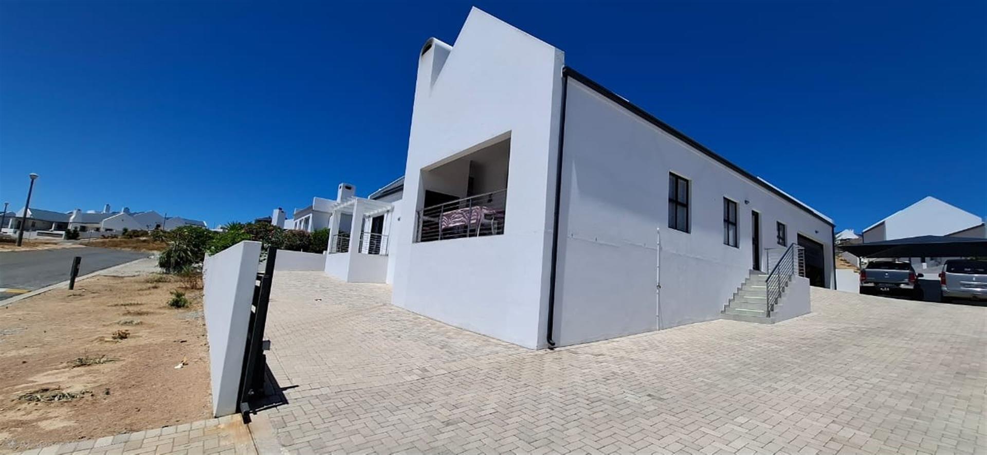 This modern coastal home in St Helena Bay offers a rare combination of light-filled interiors, spectacular sea views, and a generous 750sqm stand. Perfectly positioned in the peaceful suburb of Da Gama Bay, the property enjoys an elevated setting that ensures breath-taking vistas from every angle. Designed with both style and comfort in mind, the home features expansive open-plan living spaces, stack doors that extend seamlessly onto the veranda, and striking vaulted ceilings with exposed trusses providing the essence of space. The exterior is equally inviting, with eye-catching street appeal, a sheltered front porch complete with built-in braai, and a fully paved driveway leading to an automated sliding gate.