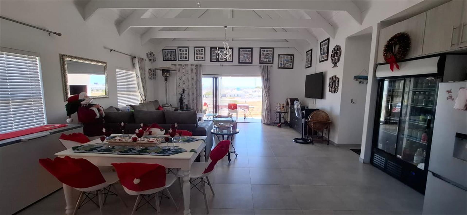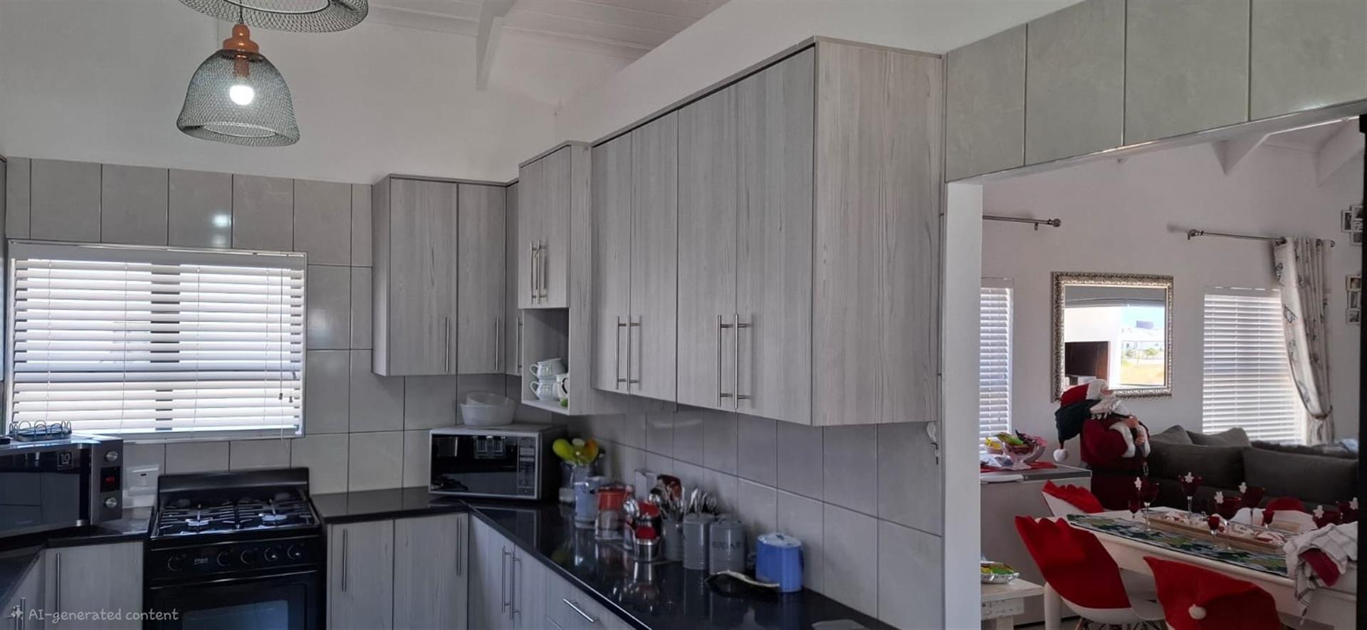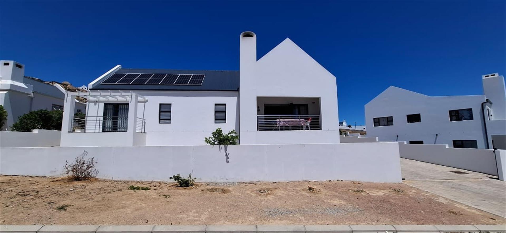 This modern coastal home in St Helena Bay offers a rare combination of light-filled interiors, spectacular sea views, and a generous 750sqm stand. Perfectly positioned in the peaceful suburb of Da Gama Bay, the property enjoys an elevated setting that ensures breath-taking vistas from every angle. Designed with both style and comfort in mind, the home features expansive open-plan living spaces, stack doors that extend seamlessly onto the veranda, and striking vaulted ceilings with exposed trusses providing the essence of space. The exterior is equally inviting, with eye-catching street appeal, a sheltered front porch complete with built-in braai, and a fully paved driveway leading to an automated sliding gate.