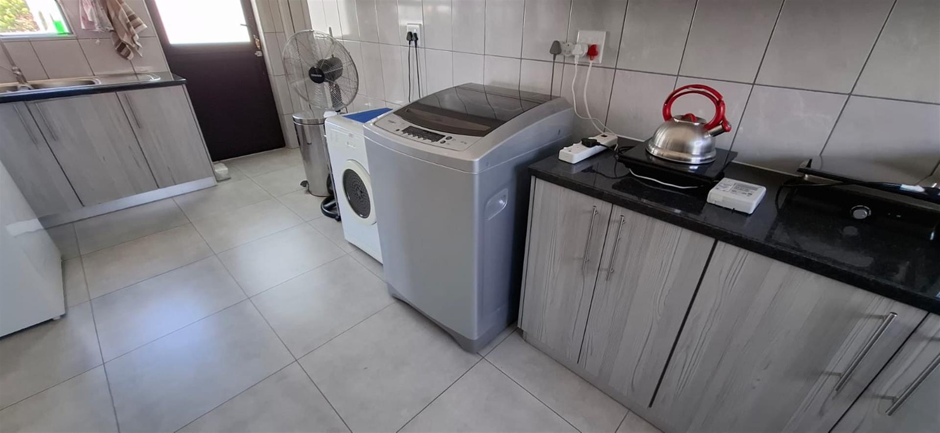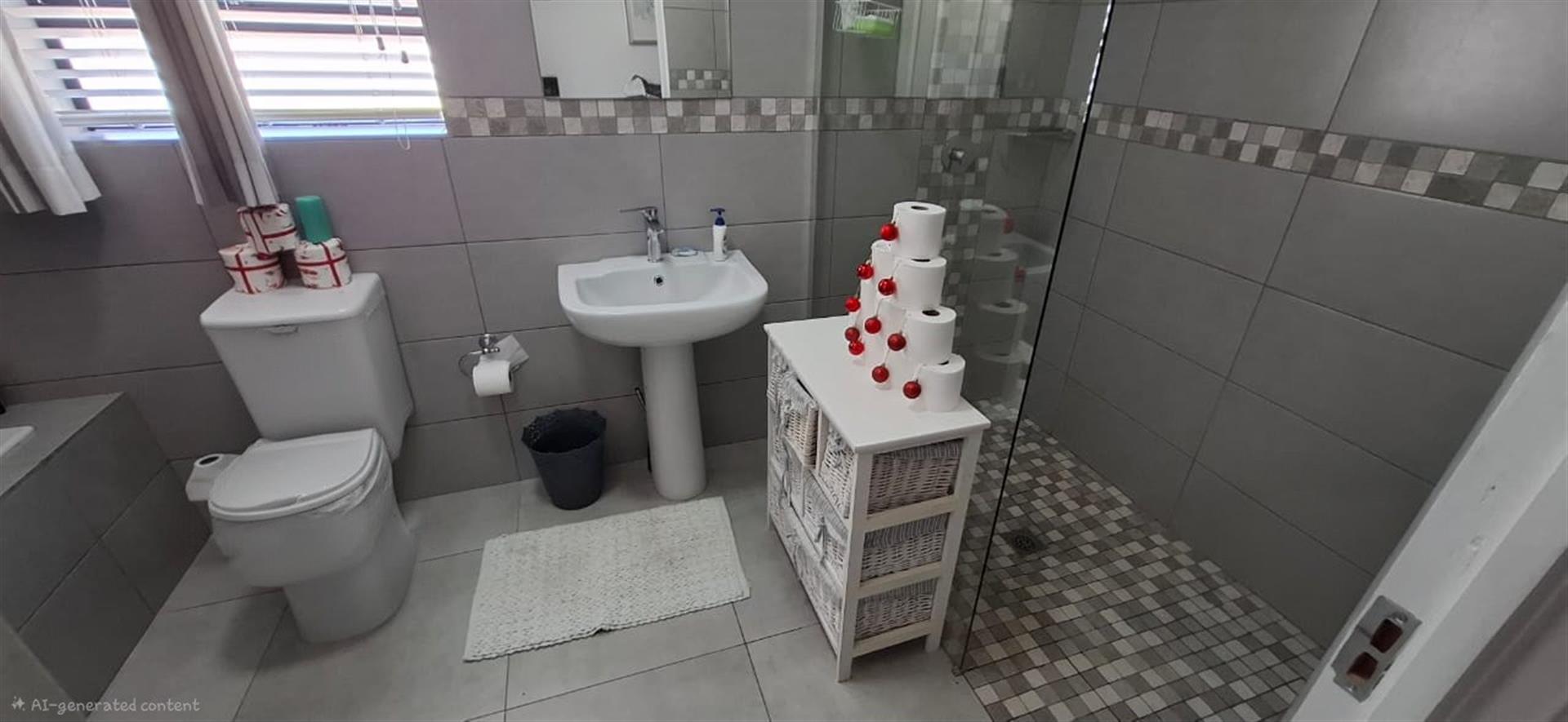 Inside, the home boasts a contemporary kitchen and scullery with engineered stone counters, ample space for appliances, and modern tiled finishes throughout. The master suite is a true retreat, offering a sunny north-facing view, private patio, generous built-in cupboards, a make-up station, and an ensuite bathroom, with this room enjoying beautiful sea views. Two additional guest bedrooms share a well-appointed full bathroom, while the double automated garage with direct access and additional carport provide practical convenience. Energy efficiency and sustainability are prioritized with a Sun Sync inverter system, 21 solar panels, solar geyser, prepaid electricity, fibre connectivity, and two JoJo water tanks connected to the gutters. With this home, you essentially cut your daily usage costs in half, due to the well designed solar system layouts being in use. Security and peace of mind are ensured with full boundary walls and an alarm system.