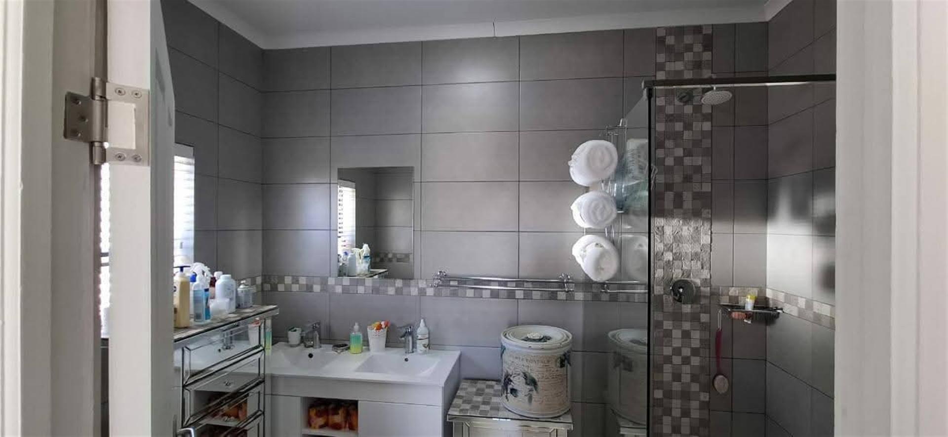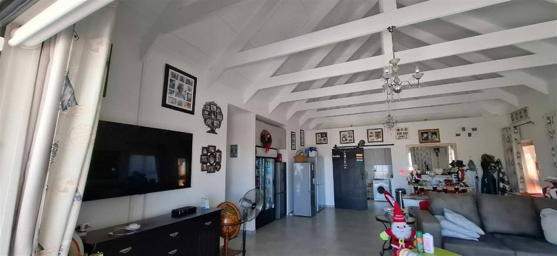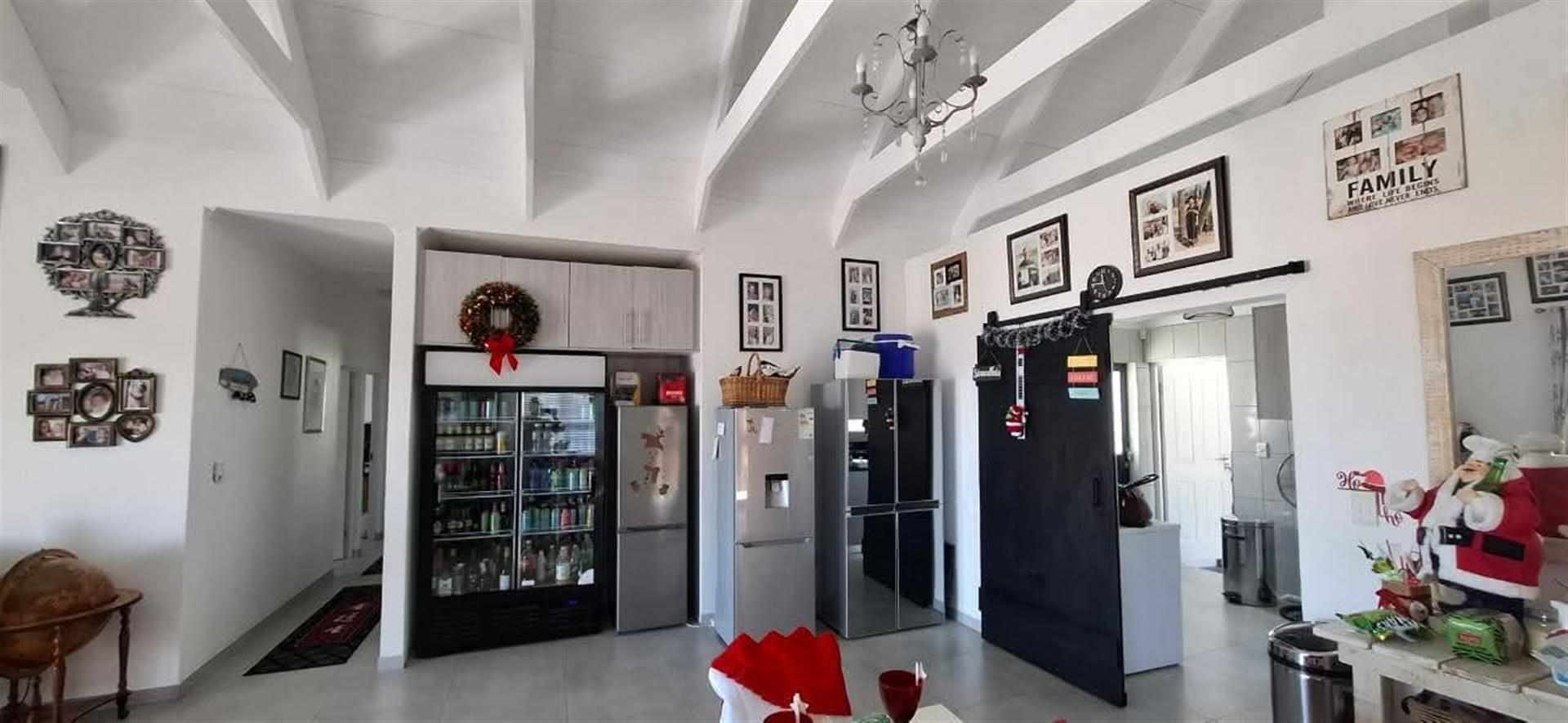 The heart of the home is the well-appointed kitchen, featuring a gas oven and a scullery that adds convenience to daily living. This property also boasts a domestic room, providing additional space for guests or potential staff. The presence of laminated and tiled floors throughout enhances both aesthetics and functionality.