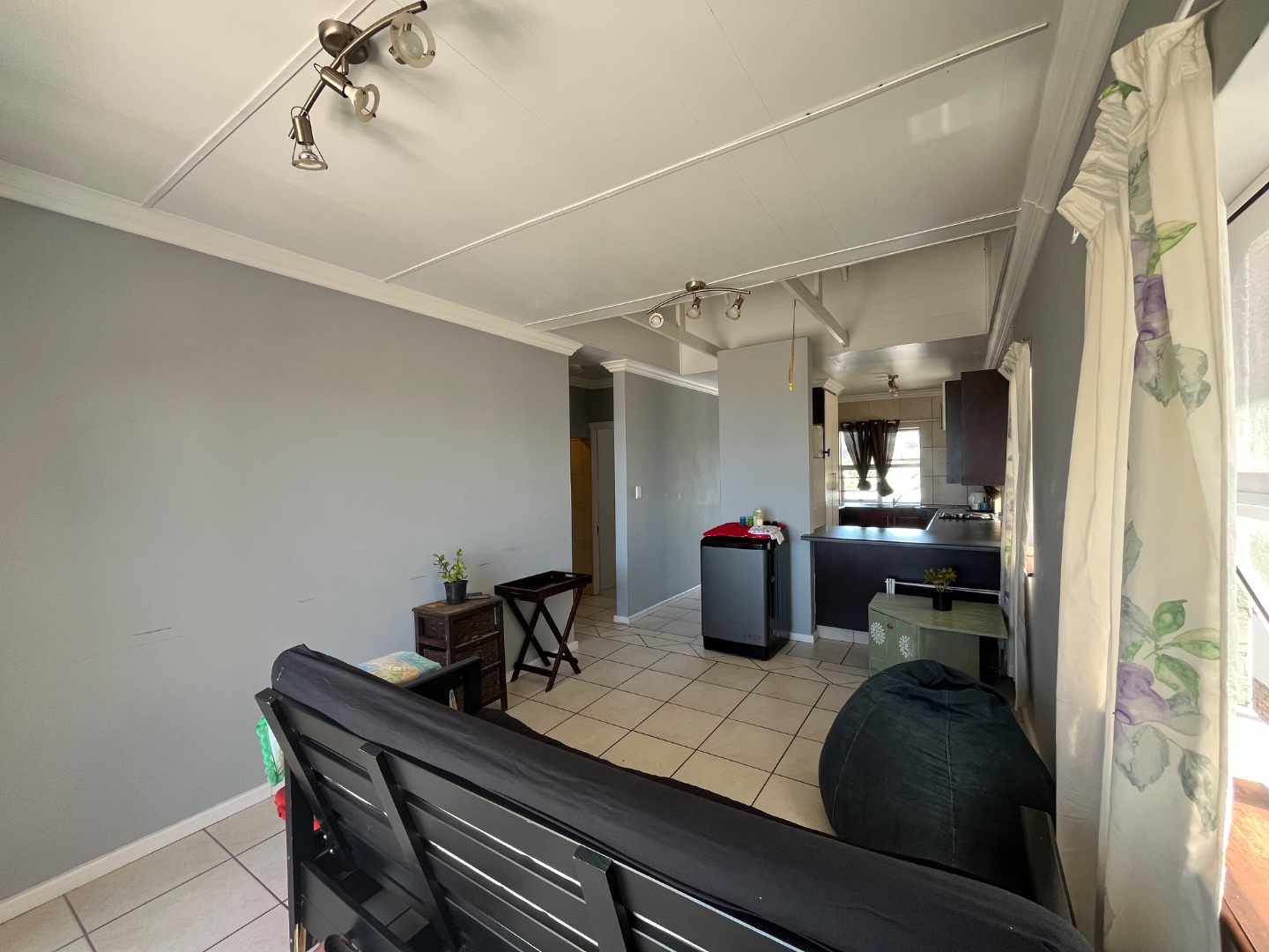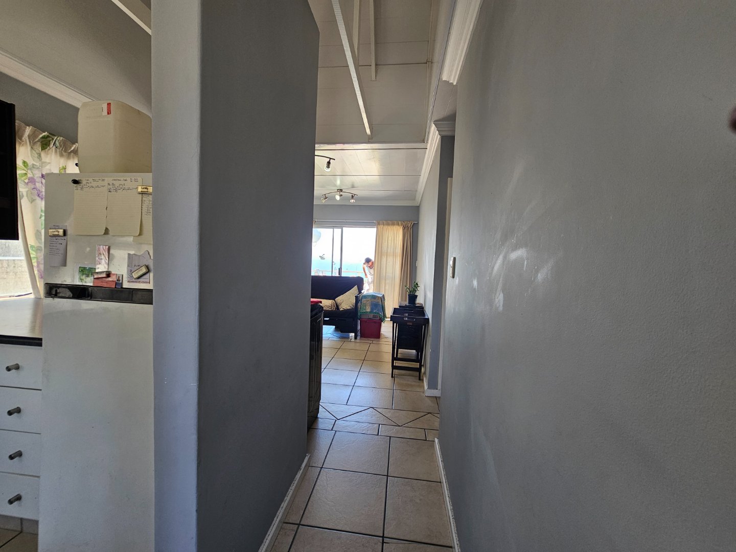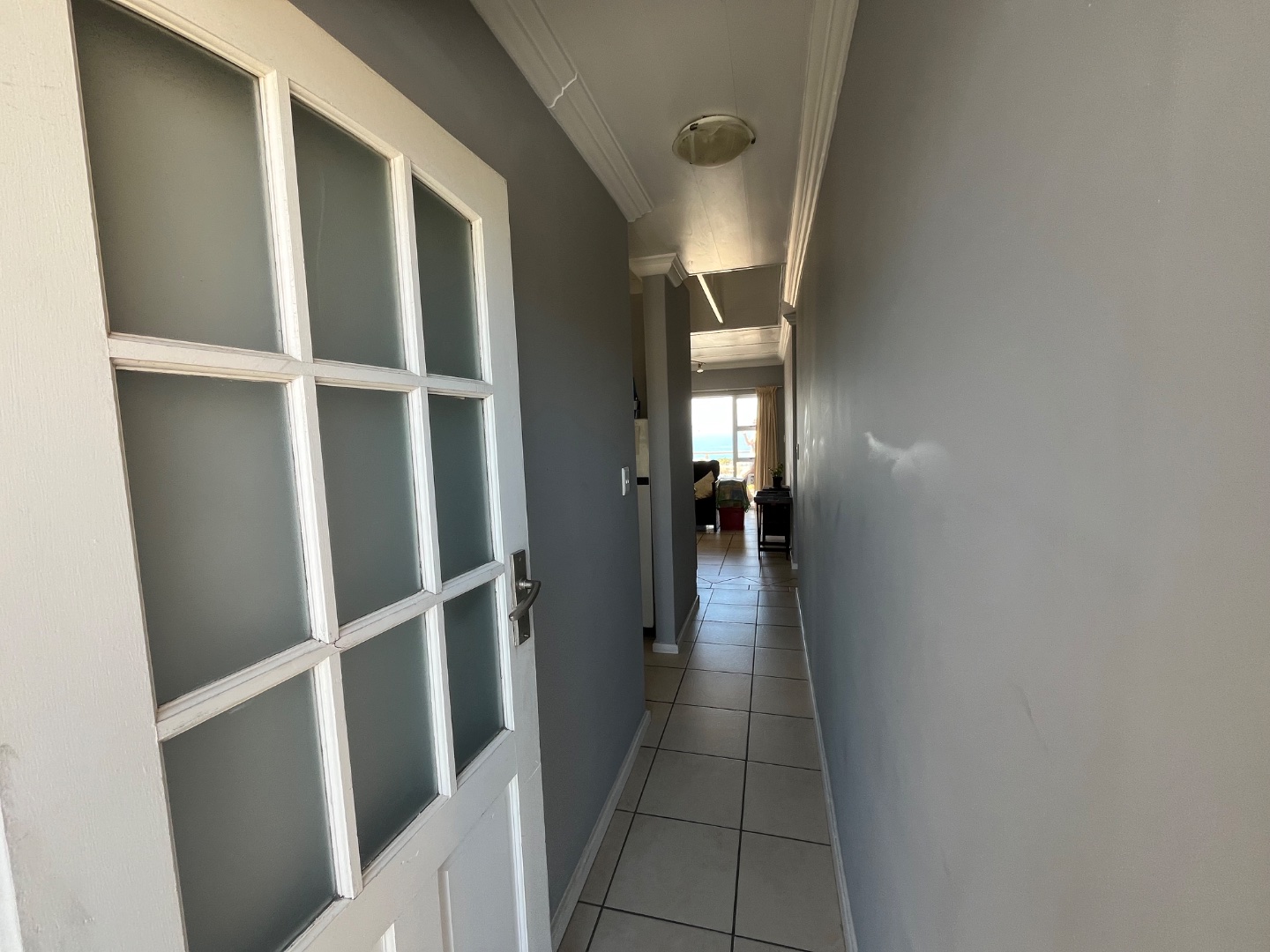 Situated on the 2nd floor, the apartment features a spacious open-plan kitchen, lounge, and dining area whch leads through sliding doors onto a private balcony with built-in braai — the ideal spot to unwind while soaking up the awesome sea views.