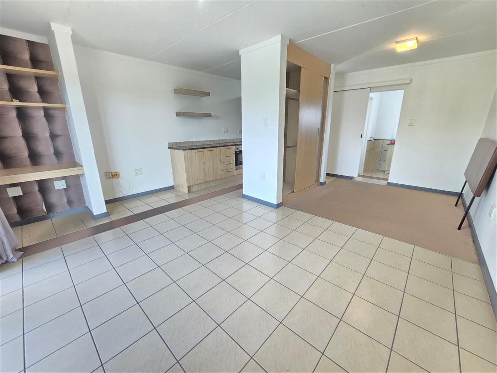 This unit offers a kitchen and lounge leading onto a covered balcony. Bedroom space with built in cupboards. 1 bathroom with a bath only.