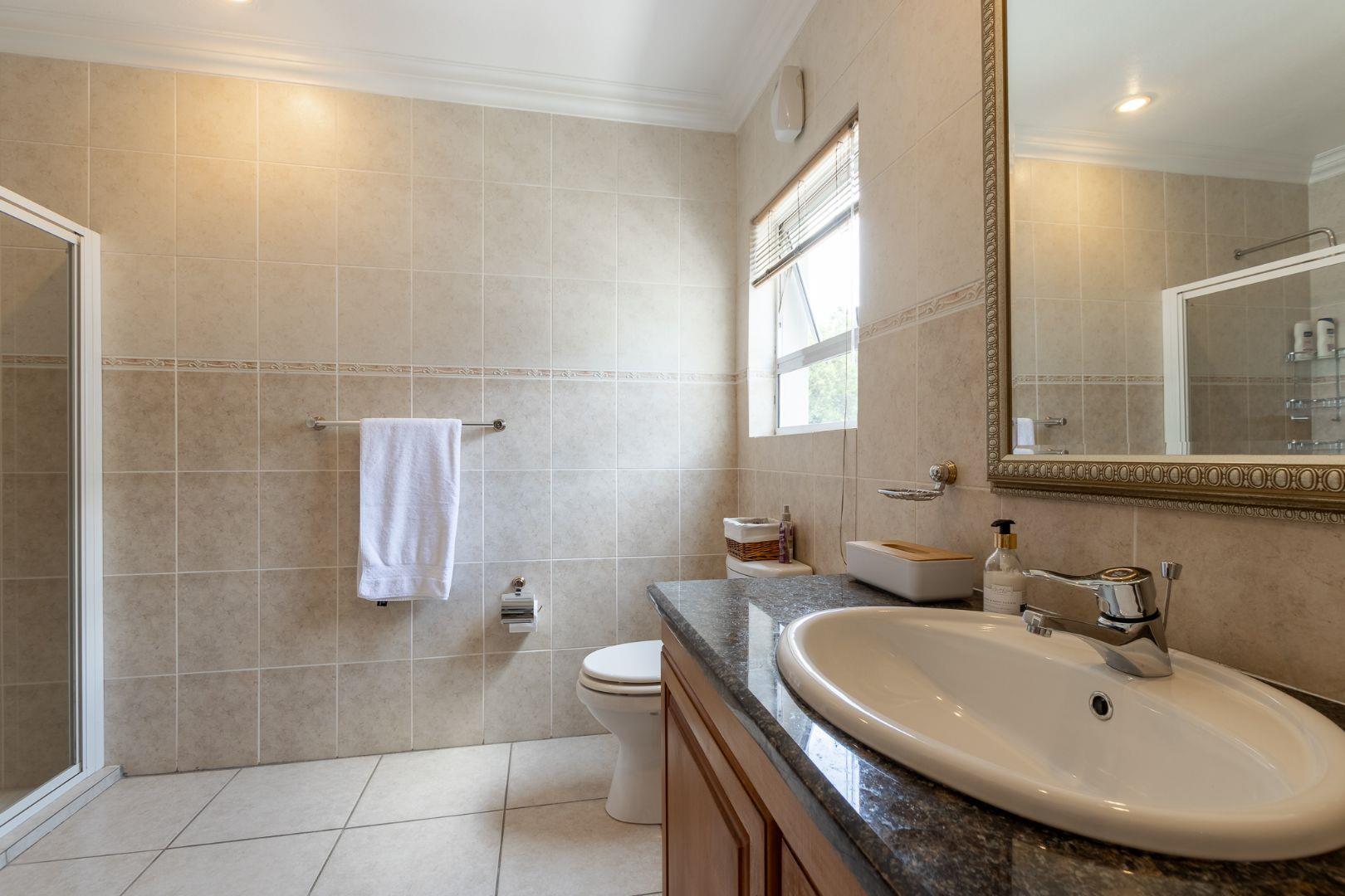 Nestled within the prestigious Dainfern Golf Estate, this beautifully maintained four-bedroom, three-bathroom family home offers an exceptional blend of elegance, comfort, and modern sustainability. Ideally positioned on a tranquil greenbelt, the home enjoys uninterrupted views, enhanced privacy, and an added sense of security—perfect for relaxed estate living.