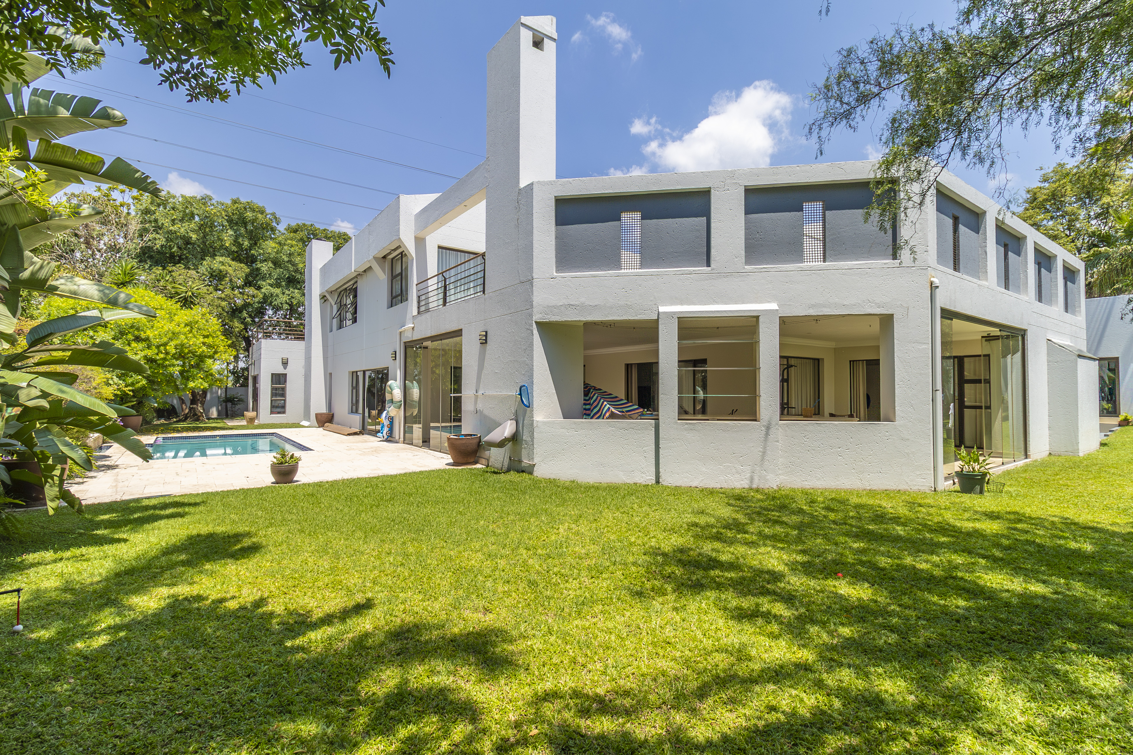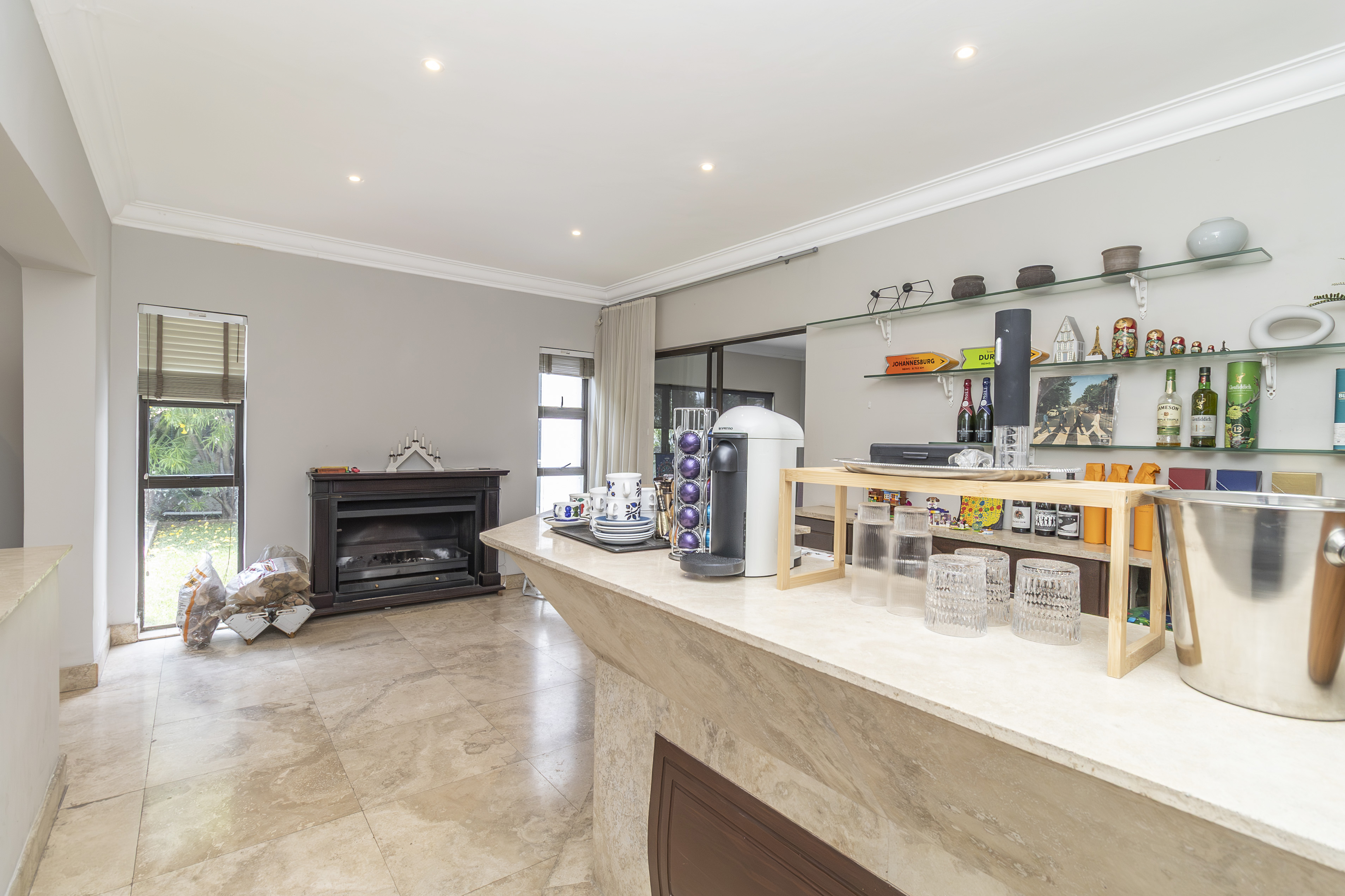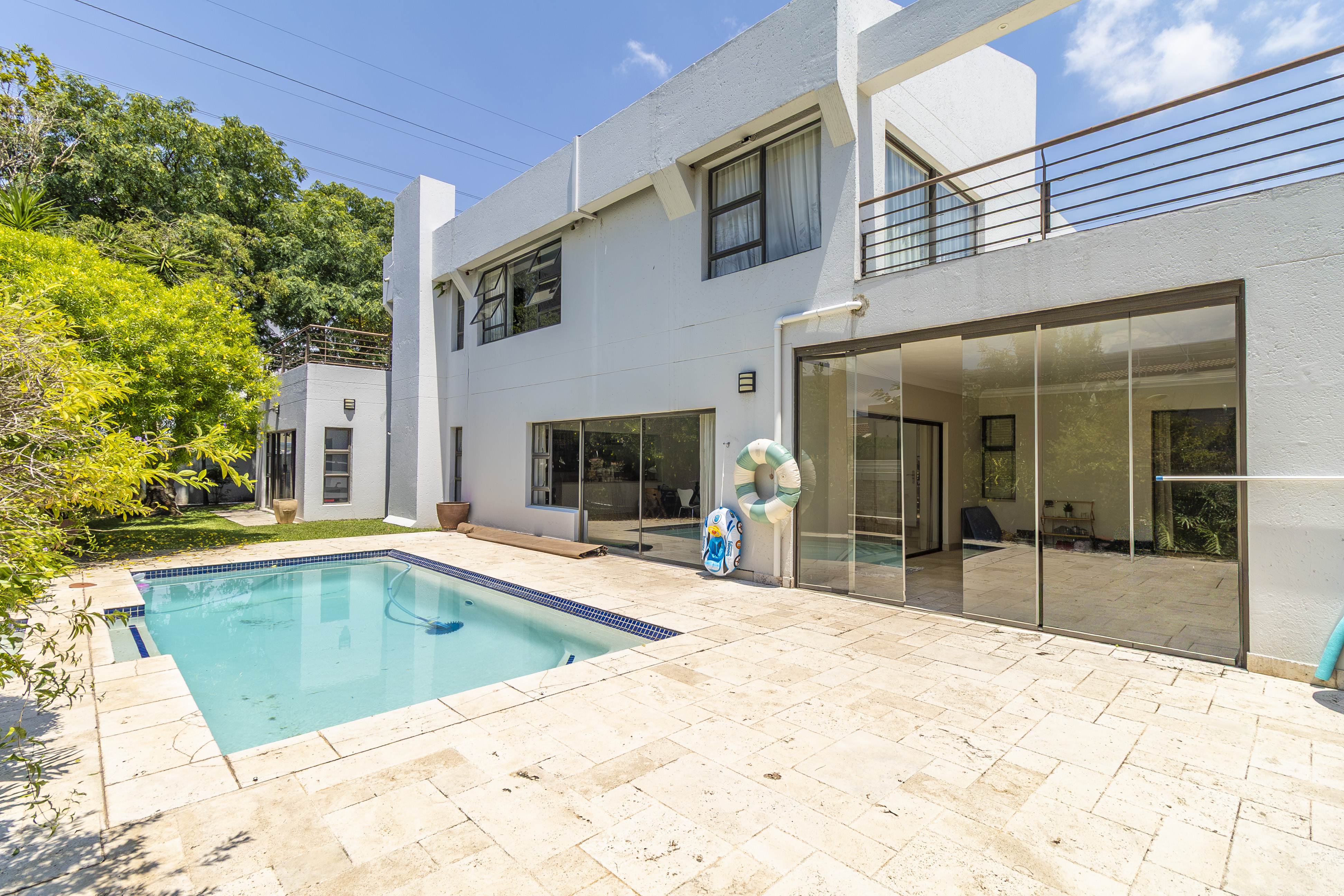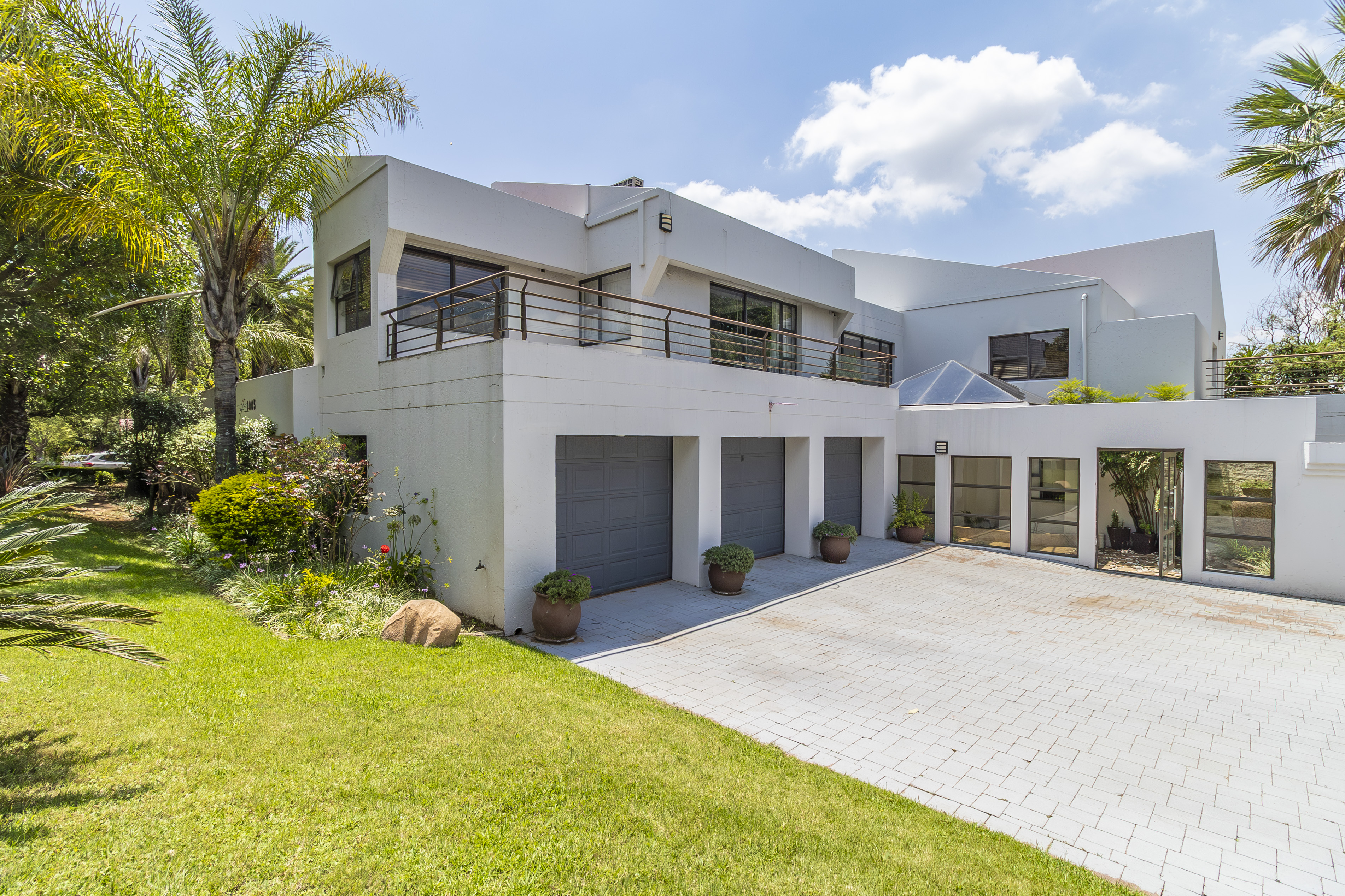 This magnificent residence offers refined estate living with generous proportions, seamless indoor-outdoor flow, and exceptional entertaining spaces, all set within the prestigious Dainfern Golf Estate. Upon arrival, three garages lead into a welcoming entrance hall that opens to a large, well-appointed kitchen with separate scullery. The dining room and formal lounge, both featuring sliding doors that open onto a covered entertainer’s patio, perfect for relaxed family living and entertaining. An expansive entertainment lounge with a built-in bar and fireplace creates a warm and inviting atmosphere, with sliding doors leading out to the entertainer’s patio. The home is designed for effortless entertaining, both inside and out. Downstairs also offers a private study with sliding doors to the garden, ideal for working from home. Two well-sized bedrooms, each with doors opening onto the garden, share a stylish Jack-and-Jill bathroom. A separate guest cloakroom completes the lower level. Upstairs, the luxurious main suite is a true retreat with fireplace. It opens onto a private balcony and features separate his-and-her walk-in closets, as well as separate full his-and-her bathrooms, both with doors leading to a private balcony and an outdoor shower, an indulgent sanctuary. Two additional en-suite bedrooms upstairs also open onto balconies, offering comfort, privacy, and beautiful outdoor access. The home boasts three balconies in total, with the main balcony being exceptionally spacious, large enough to create your own private escape or rooftop lounge. Additional features include staff accommodation with a bathroom, as well as an external space ideal for conversion into a home office or studio. The landscaped garden with swimming pool and water feature, complemented by a spacious covered entertainer’s patio with a separate serving area or bar and a gas braai, perfect for hosting in style. This exceptional home combines luxury, functionality, and outstanding entertainment spaces in one of Johannesburg’s most sought-after golf estates.