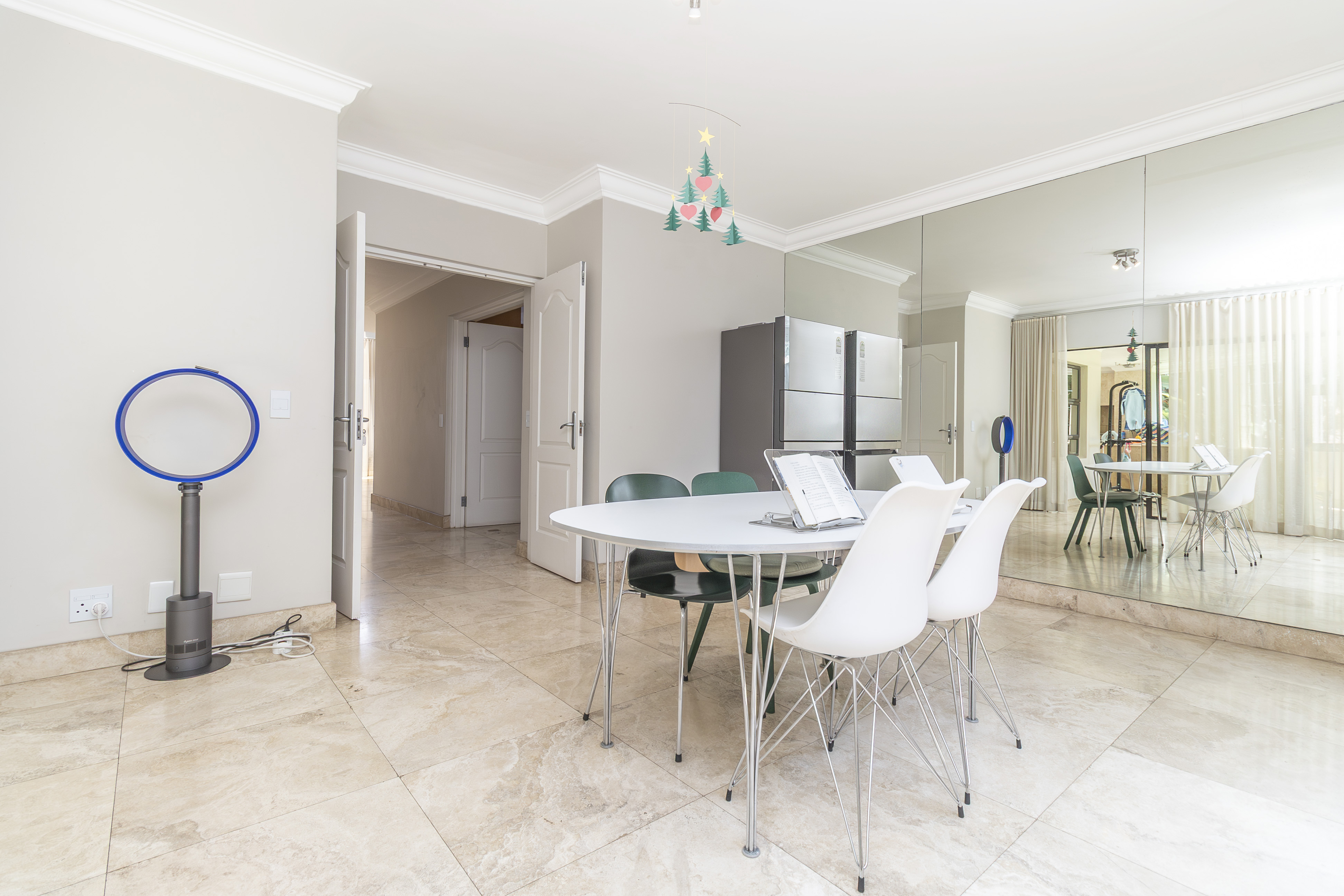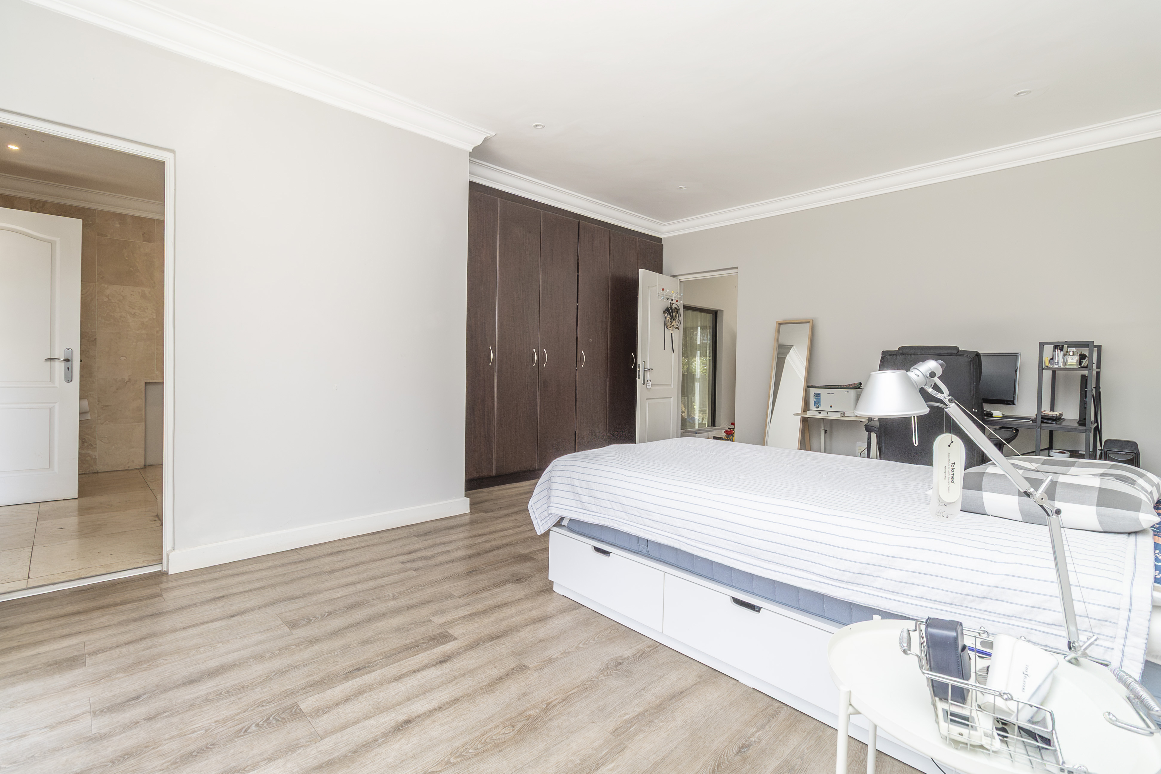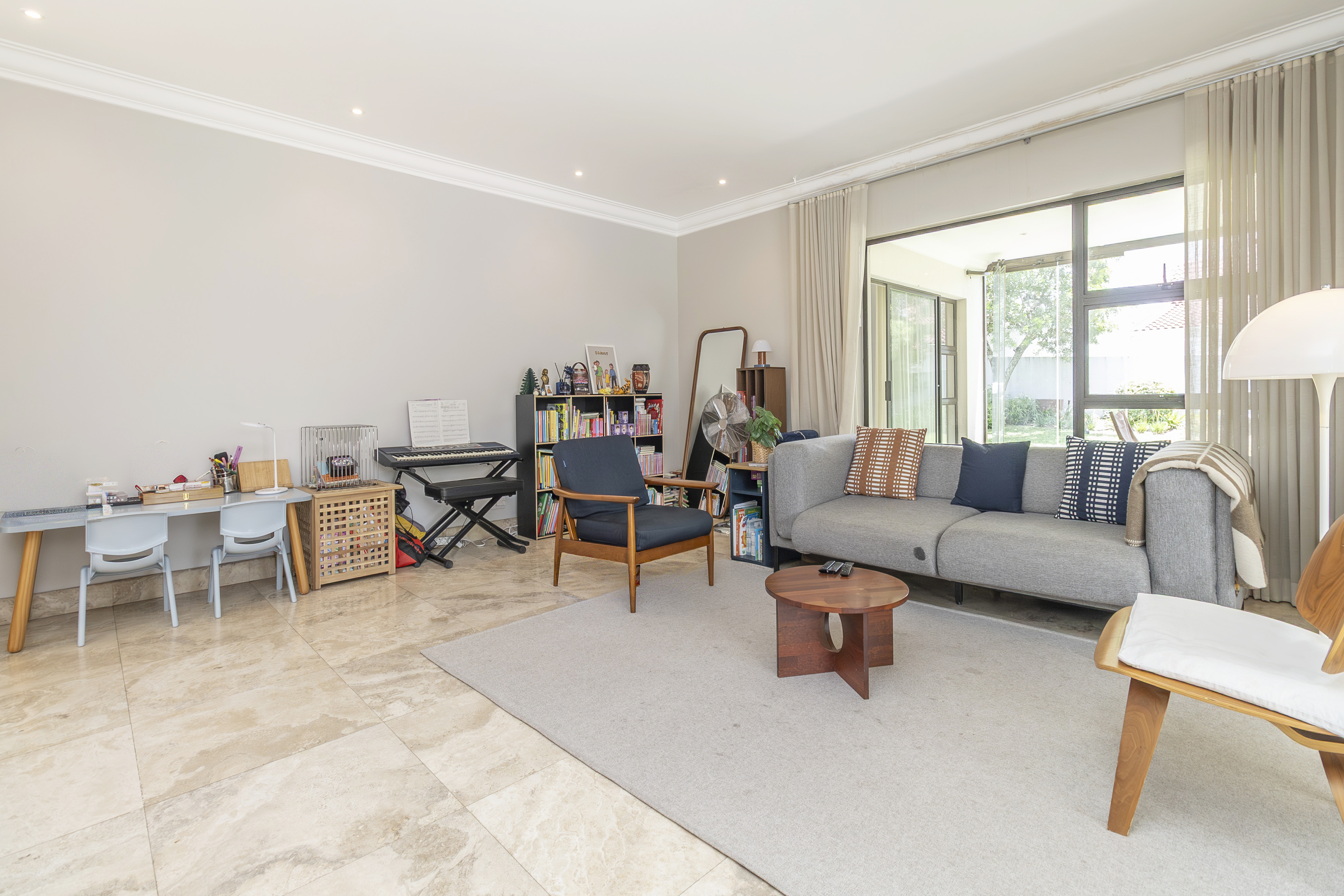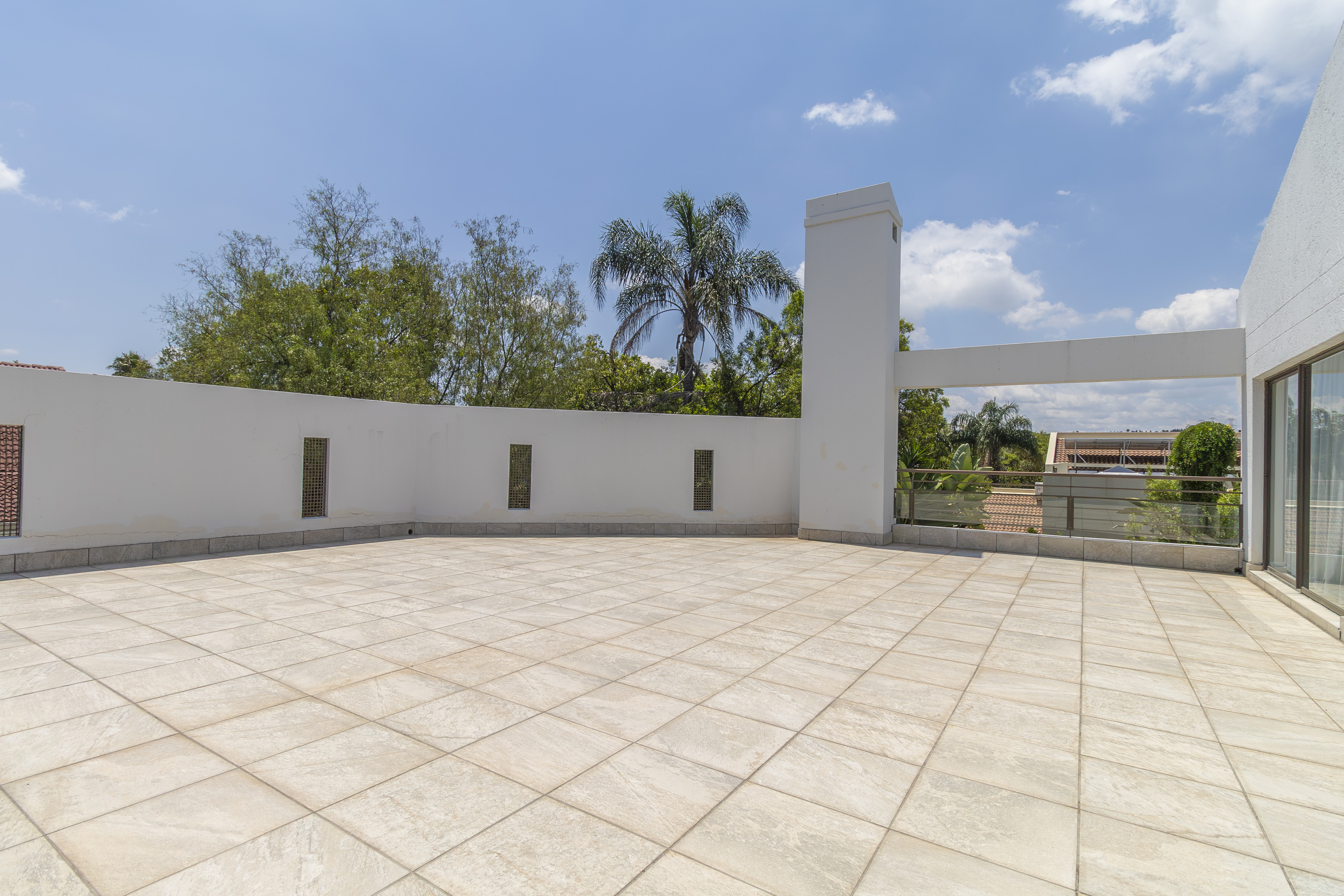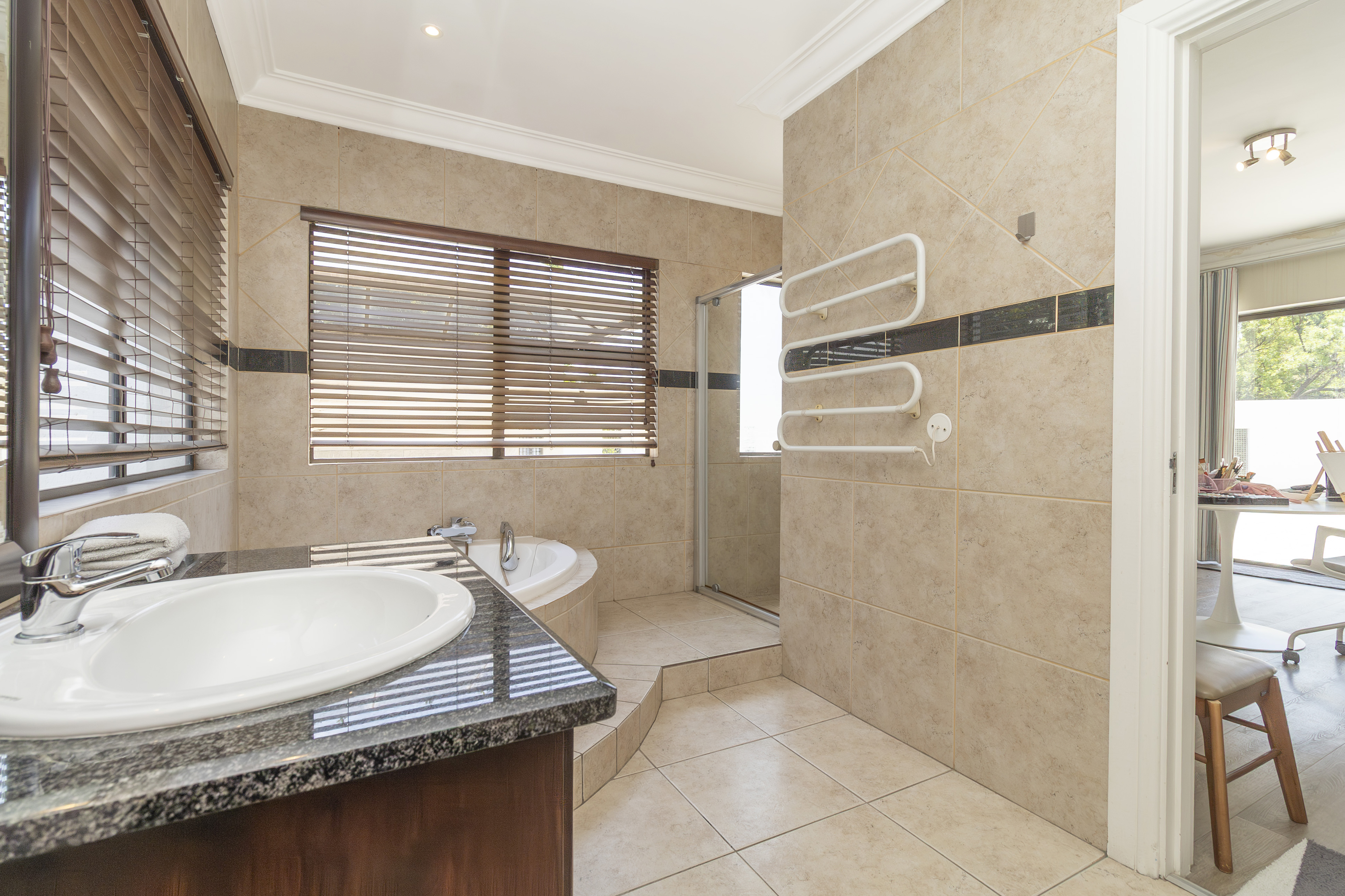 This magnificent residence offers refined estate living with generous proportions, seamless indoor-outdoor flow, and exceptional entertaining spaces, all set within the prestigious Dainfern Golf Estate. Upon arrival, three garages lead into a welcoming entrance hall that opens to a large, well-appointed kitchen with separate scullery. The dining room and formal lounge, both featuring sliding doors that open onto a covered entertainer’s patio, perfect for relaxed family living and entertaining. An expansive entertainment lounge with a built-in bar and fireplace creates a warm and inviting atmosphere, with sliding doors leading out to the entertainer’s patio. The home is designed for effortless entertaining, both inside and out. Downstairs also offers a private study with sliding doors to the garden, ideal for working from home. Two well-sized bedrooms, each with doors opening onto the garden, share a stylish Jack-and-Jill bathroom. A separate guest cloakroom completes the lower level. Upstairs, the luxurious main suite is a true retreat with fireplace. It opens onto a private balcony and features separate his-and-her walk-in closets, as well as separate full his-and-her bathrooms, both with doors leading to a private balcony and an outdoor shower, an indulgent sanctuary. Two additional en-suite bedrooms upstairs also open onto balconies, offering comfort, privacy, and beautiful outdoor access. The home boasts three balconies in total, with the main balcony being exceptionally spacious, large enough to create your own private escape or rooftop lounge. Additional features include staff accommodation with a bathroom, as well as an external space ideal for conversion into a home office or studio. The landscaped garden with swimming pool and water feature, complemented by a spacious covered entertainer’s patio with a separate serving area or bar and a gas braai, perfect for hosting in style. This exceptional home combines luxury, functionality, and outstanding entertainment spaces in one of Johannesburg’s most sought-after golf estates.