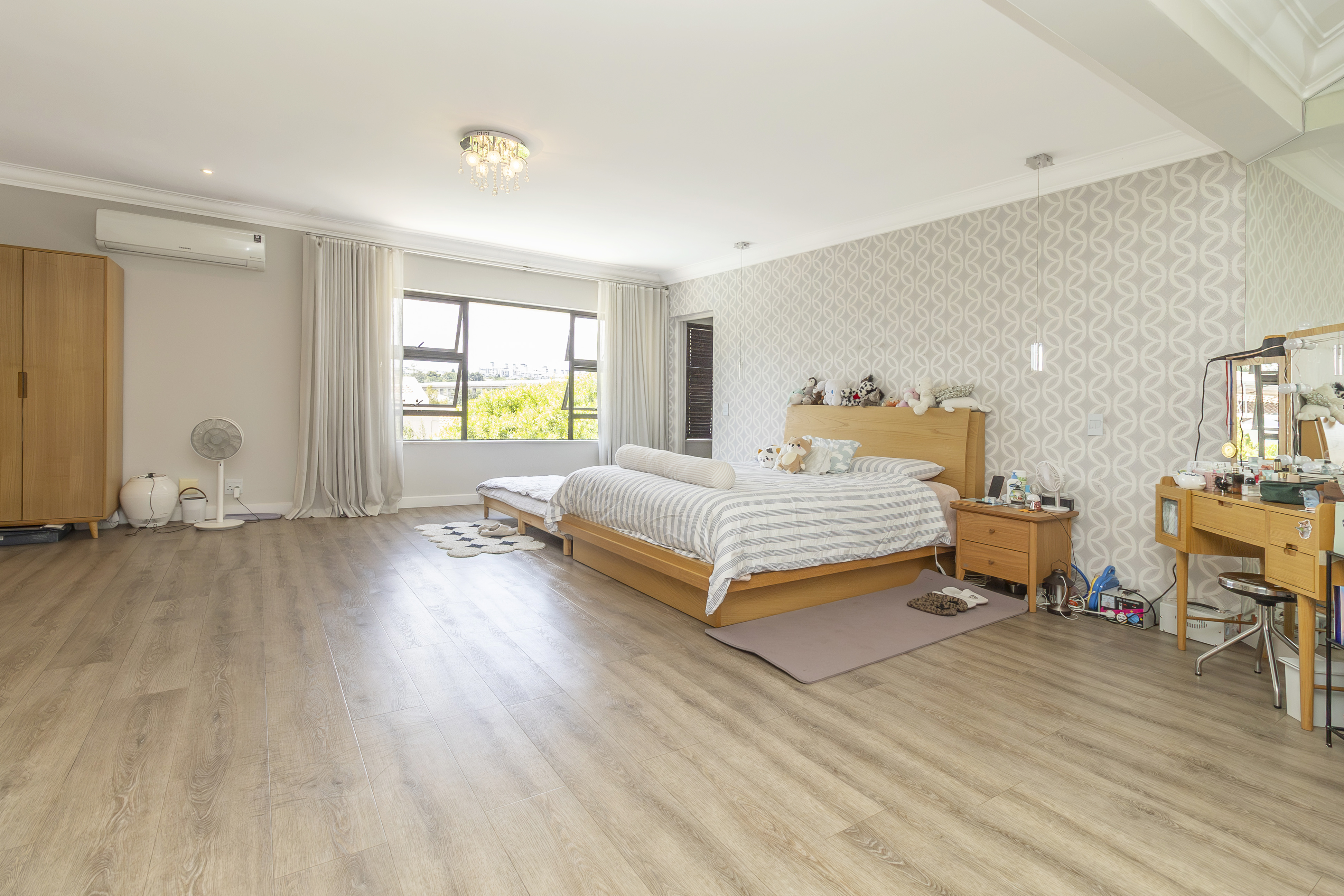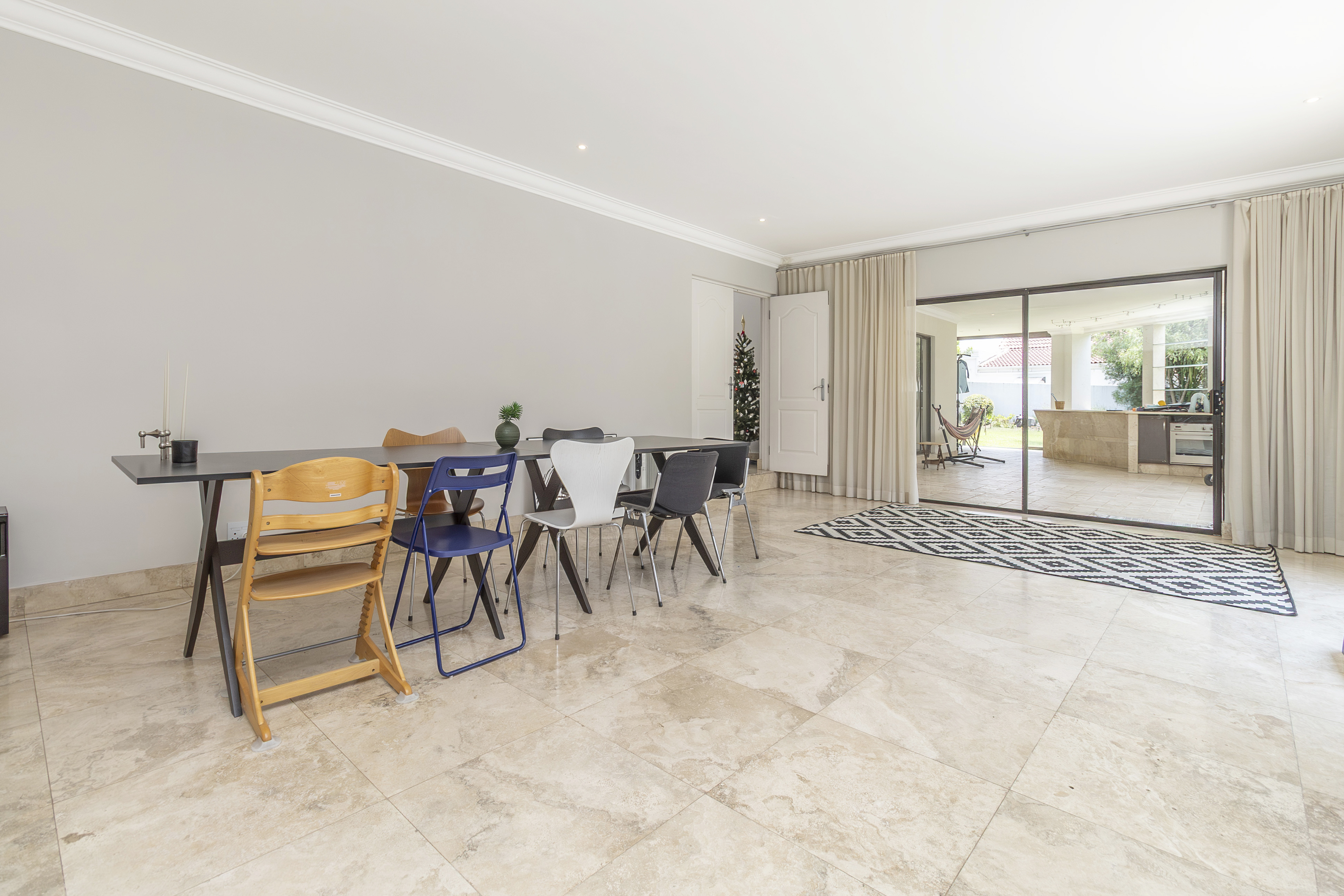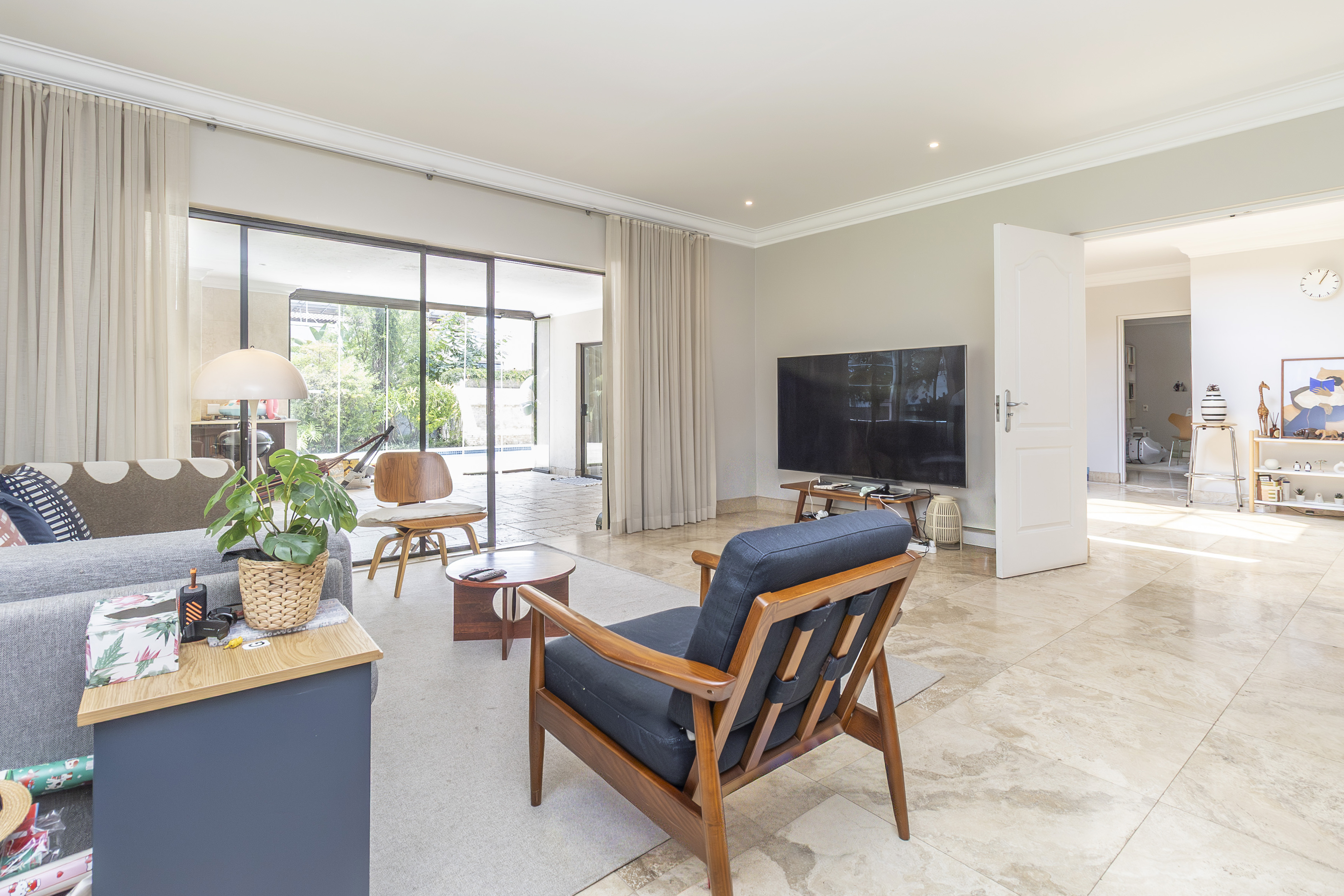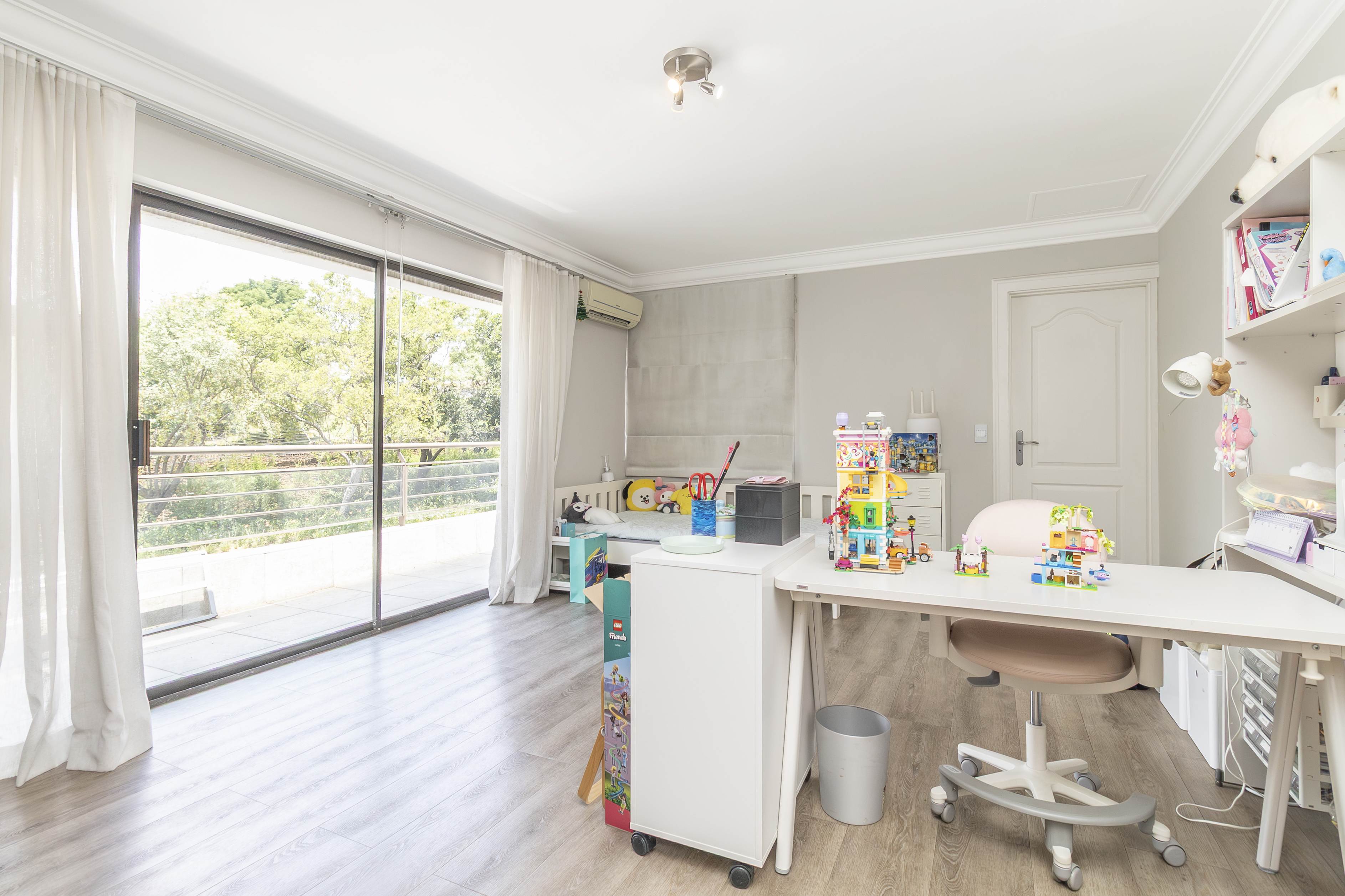 This magnificent residence offers refined estate living with generous proportions, seamless indoor-outdoor flow, and exceptional entertaining spaces, all set within the prestigious Dainfern Golf Estate. Upon arrival, three garages lead into a welcoming entrance hall that opens to a large, well-appointed kitchen with separate scullery. The dining room and formal lounge, both featuring sliding doors that open onto a covered entertainer’s patio, perfect for relaxed family living and entertaining. An expansive entertainment lounge with a built-in bar and fireplace creates a warm and inviting atmosphere, with sliding doors leading out to the entertainer’s patio. The home is designed for effortless entertaining, both inside and out. Downstairs also offers a private study with sliding doors to the garden, ideal for working from home. Two well-sized bedrooms, each with doors opening onto the garden, share a stylish Jack-and-Jill bathroom. A separate guest cloakroom completes the lower level. Upstairs, the luxurious main suite is a true retreat with fireplace. It opens onto a private balcony and features separate his-and-her walk-in closets, as well as separate full his-and-her bathrooms, both with doors leading to a private balcony and an outdoor shower, an indulgent sanctuary. Two additional en-suite bedrooms upstairs also open onto balconies, offering comfort, privacy, and beautiful outdoor access. The home boasts three balconies in total, with the main balcony being exceptionally spacious, large enough to create your own private escape or rooftop lounge. Additional features include staff accommodation with a bathroom, as well as an external space ideal for conversion into a home office or studio. The landscaped garden with swimming pool and water feature, complemented by a spacious covered entertainer’s patio with a separate serving area or bar and a gas braai, perfect for hosting in style. This exceptional home combines luxury, functionality, and outstanding entertainment spaces in one of Johannesburg’s most sought-after golf estates.