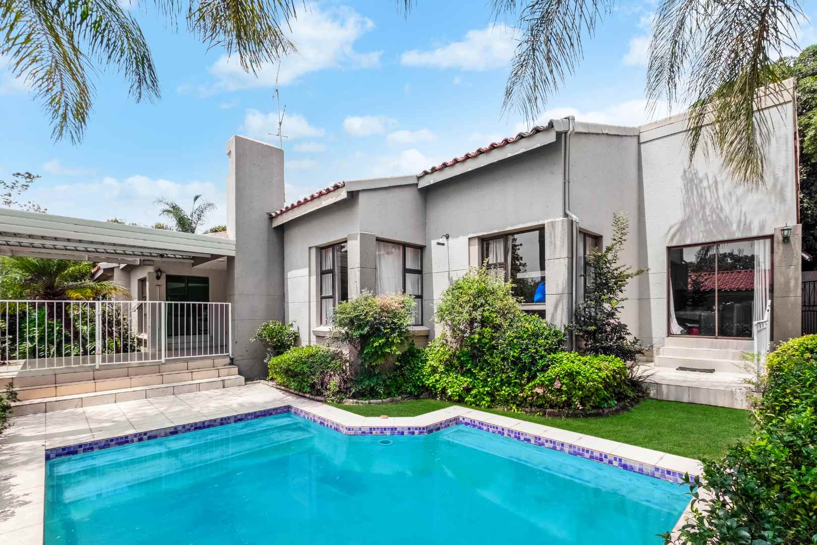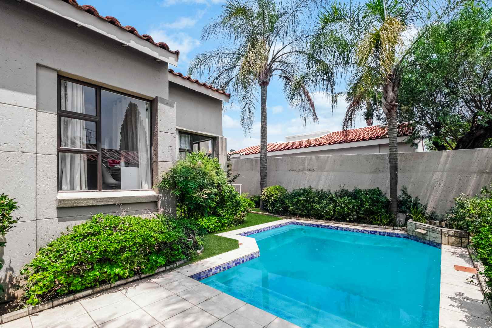 This cluster is ideal for young families, or people wanting to downscale and want to enjoy the lifestyle that Dainfern Golf Estate offers. The home has a modern feel, is light, bright and easily maintained. The entrance hall with guest cloakroom welcomes you. There are 2 open plan reception rooms: family room with gas fireplace which flows directly into the dining area, which opens onto a covered patio with a built-in braai. The perfect area for year-round entertaining overlooking the manicured garden and sparkling swimming pool - offering the utmost privacy.