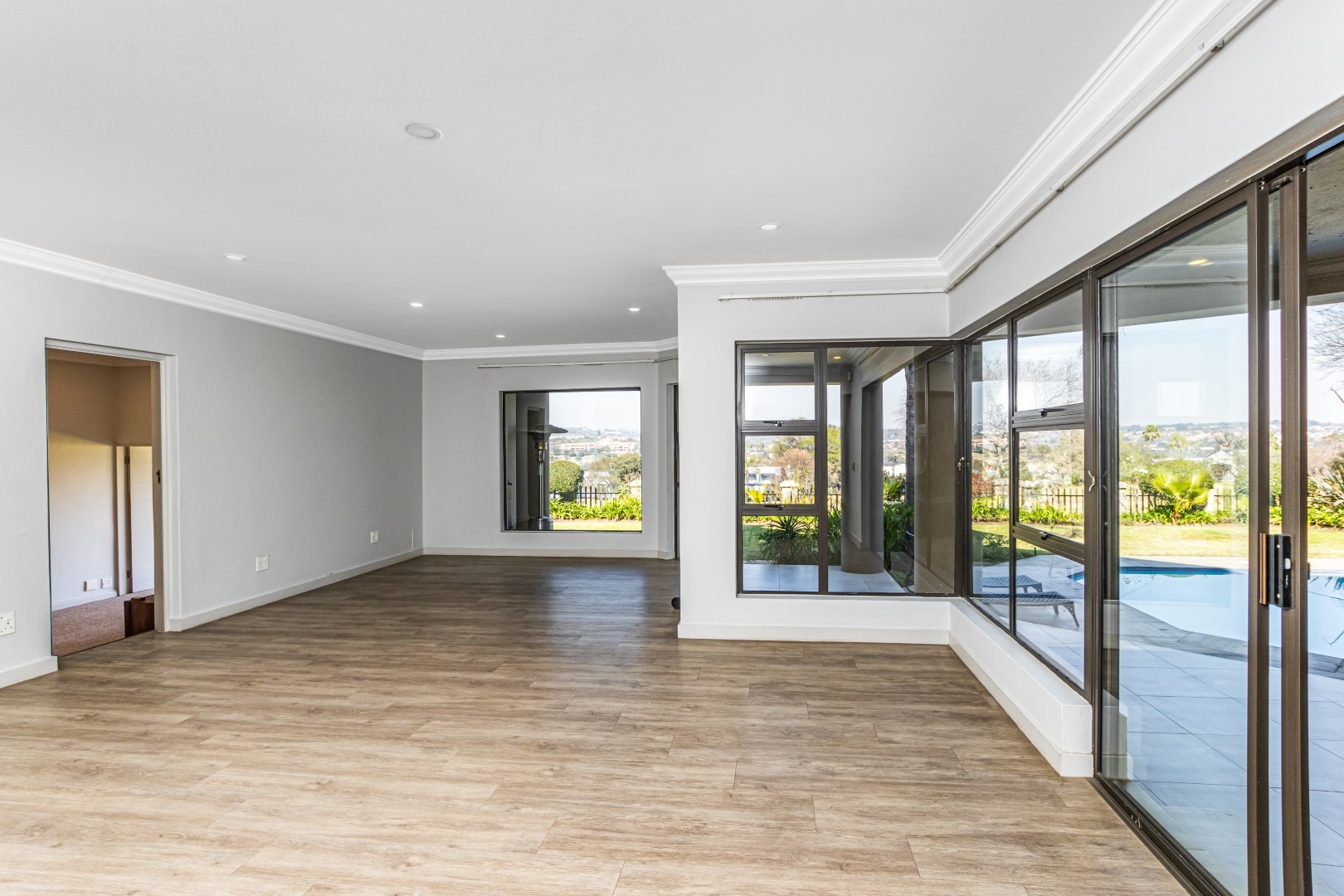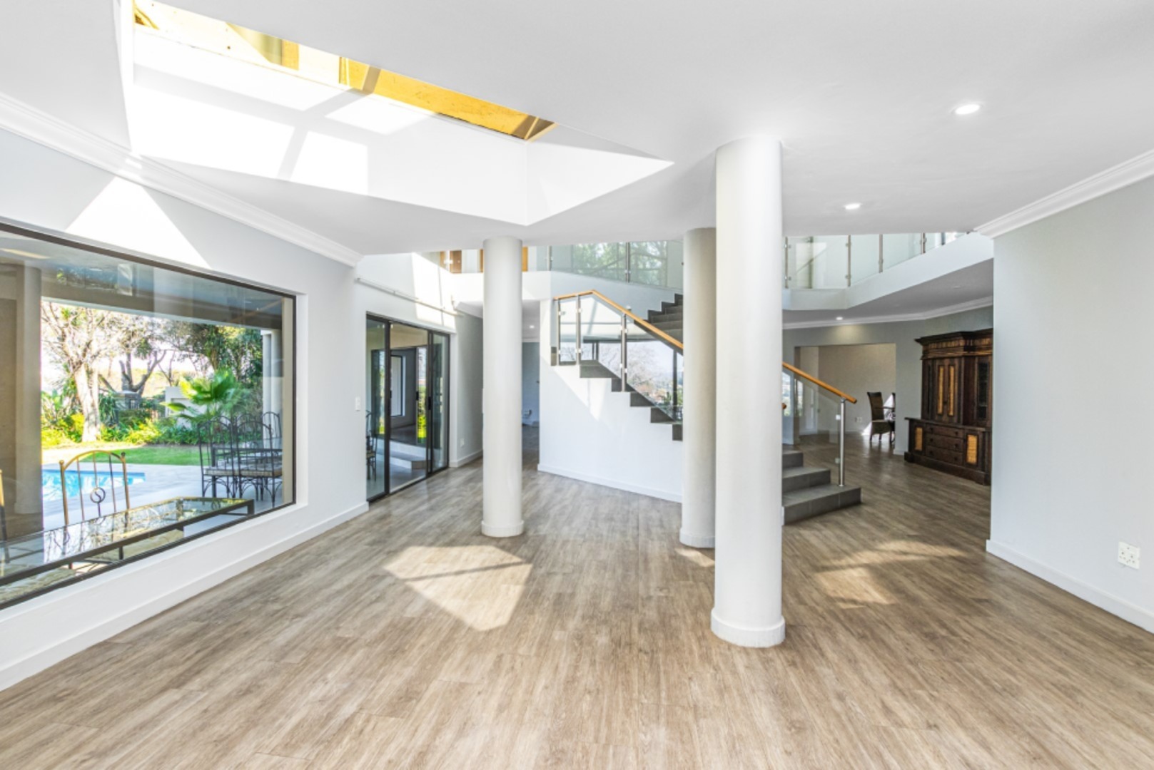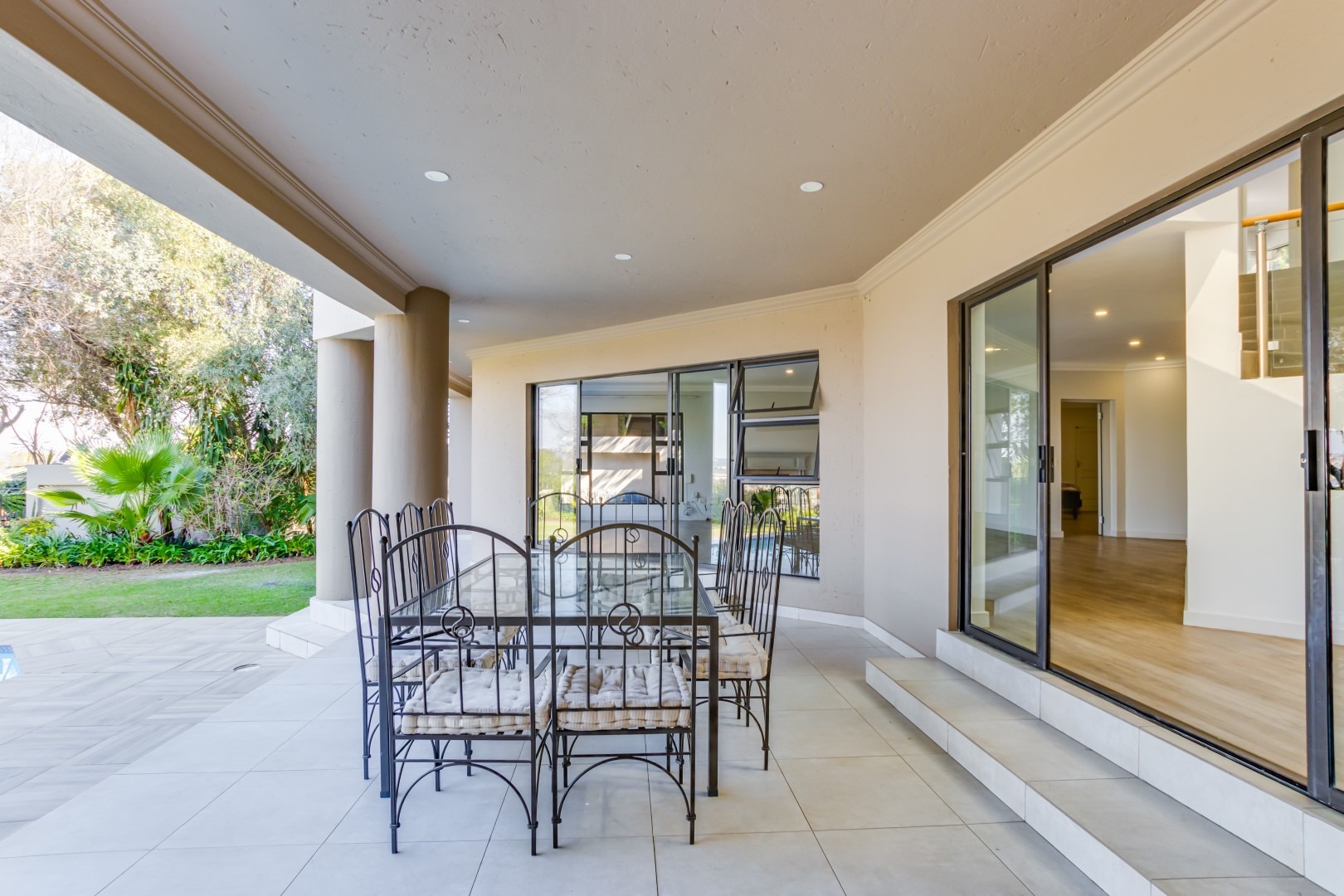 Designed to accommodate the needs of a large family, each of the five bedrooms boasts its own en-suite bathroom, ensuring comfort and privacy for all. As you explore the residence, you'll find that the reception rooms have been thoughtfully arranged to overlook the manicured garden and sparkling pool. Step out onto the entertainers’ patio, complete with a built-in braai, and relish in the seamless indoor-outdoor flow, perfect for hosting any occasion.