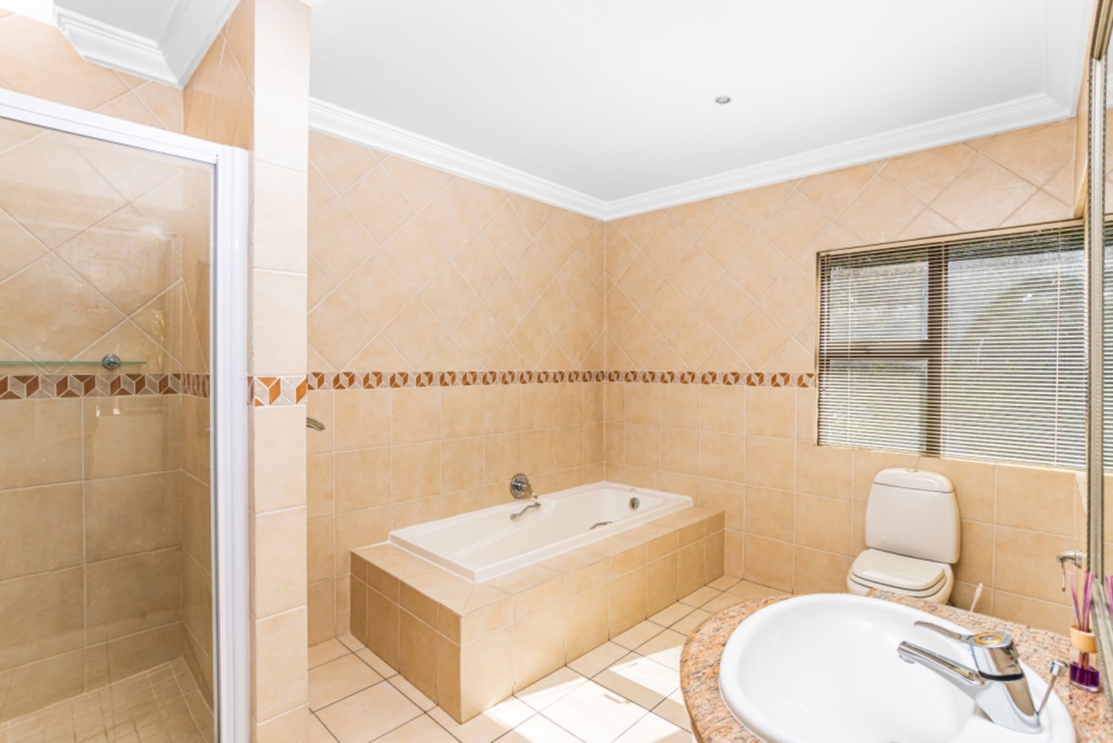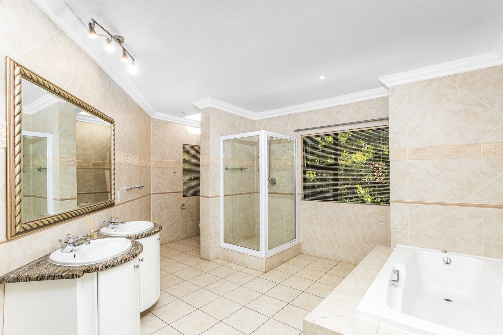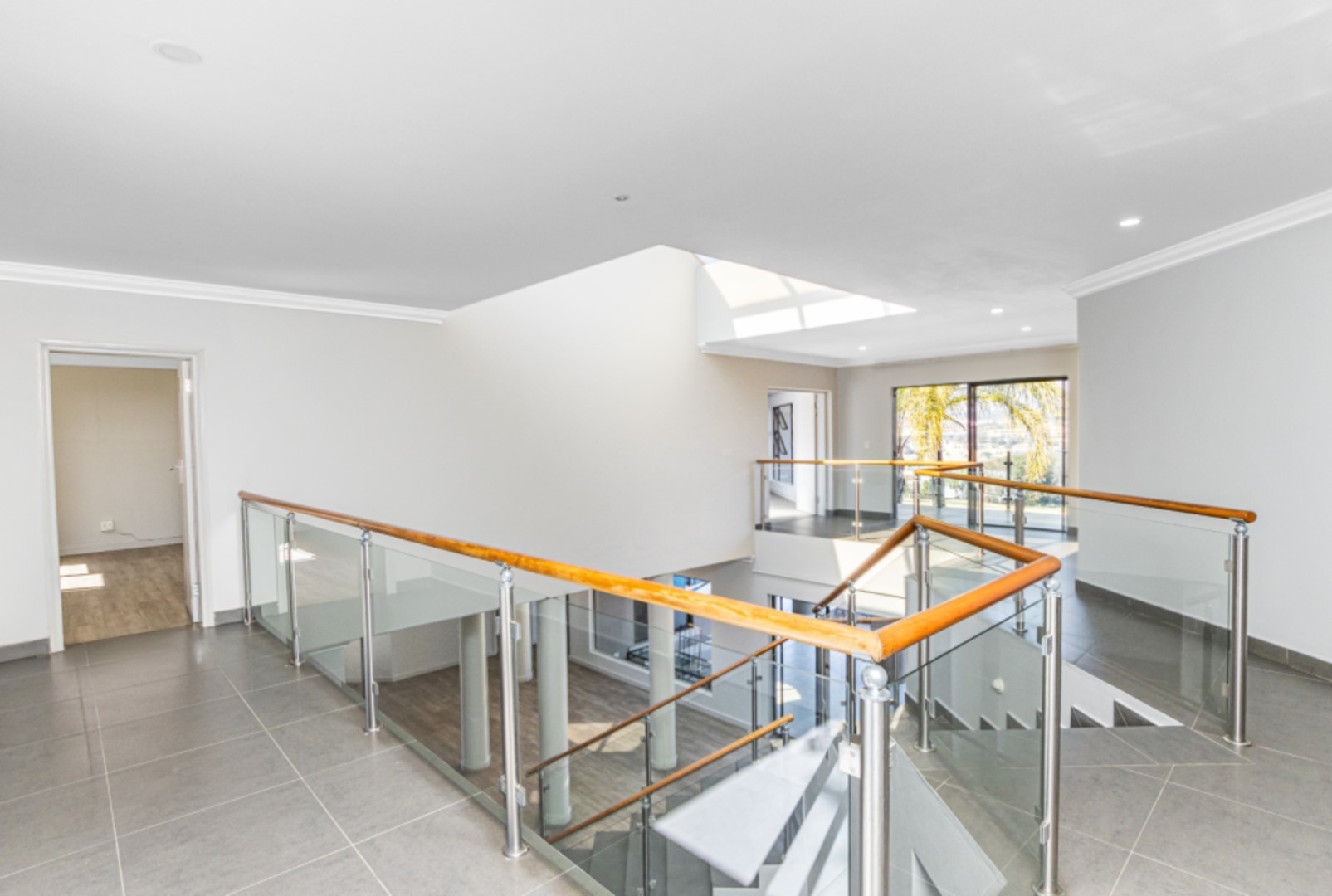 Designed to accommodate the needs of a large family, each of the five bedrooms boasts its own en-suite bathroom, ensuring comfort and privacy for all. As you explore the residence, you'll find that the reception rooms have been thoughtfully arranged to overlook the manicured garden and sparkling pool. Step out onto the entertainers’ patio, complete with a built-in braai, and relish in the seamless indoor-outdoor flow, perfect for hosting any occasion.