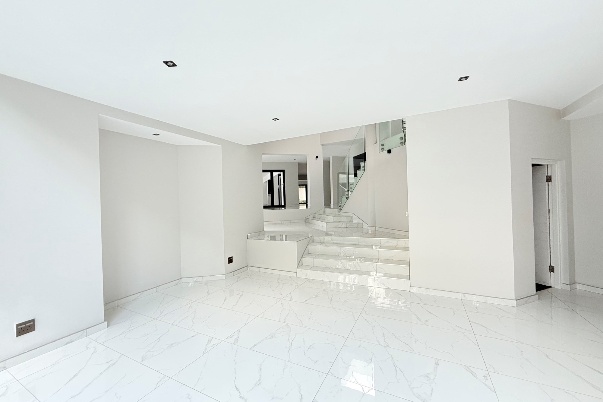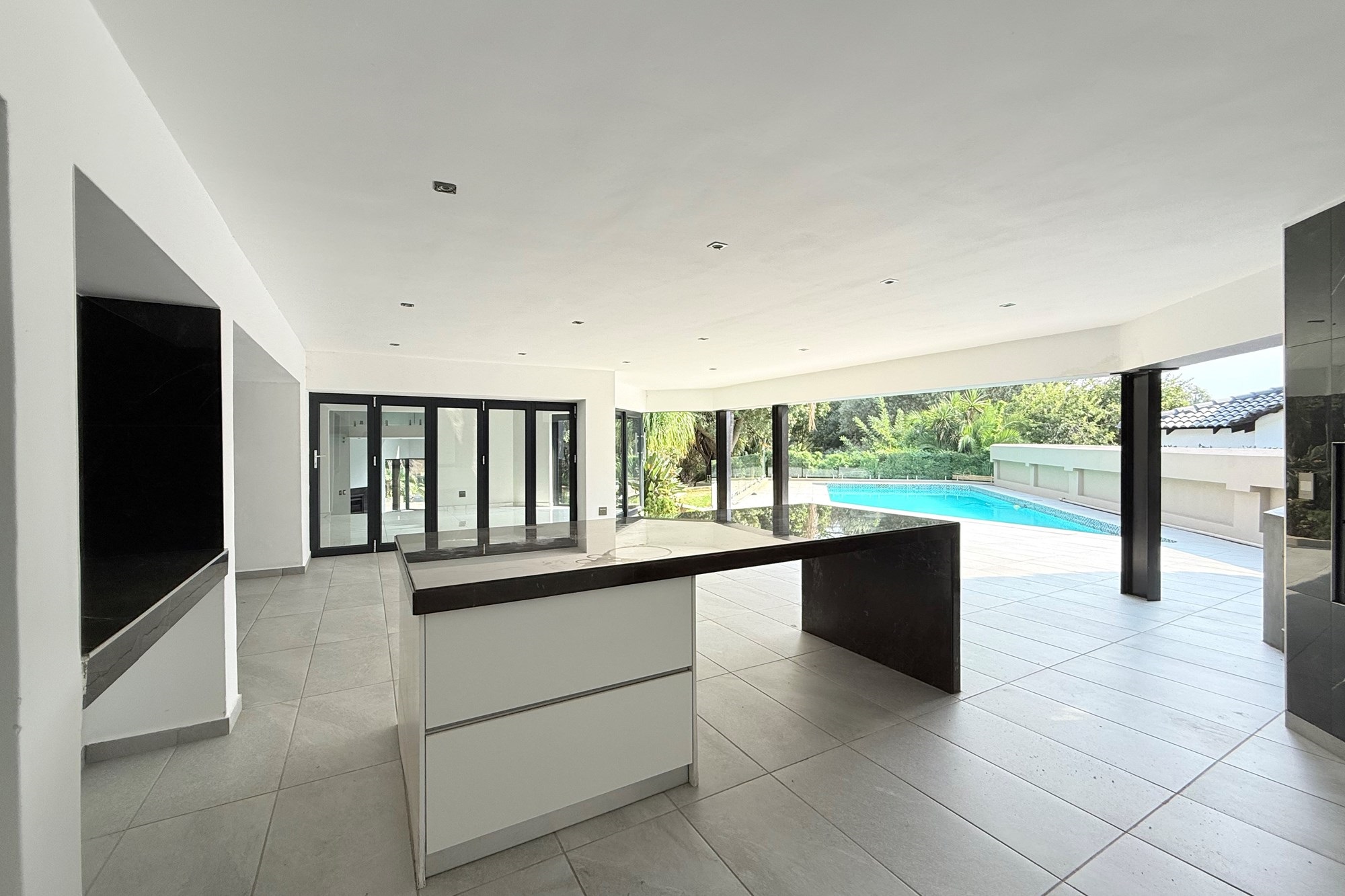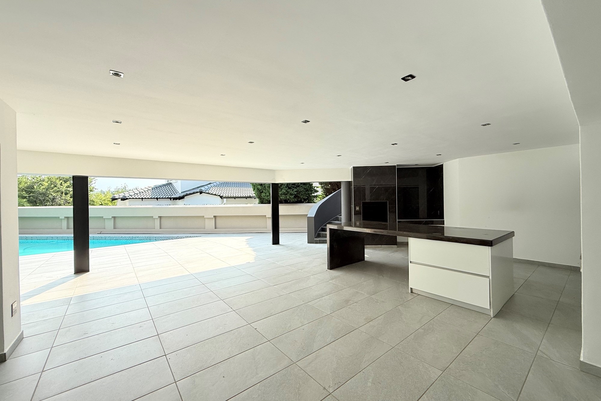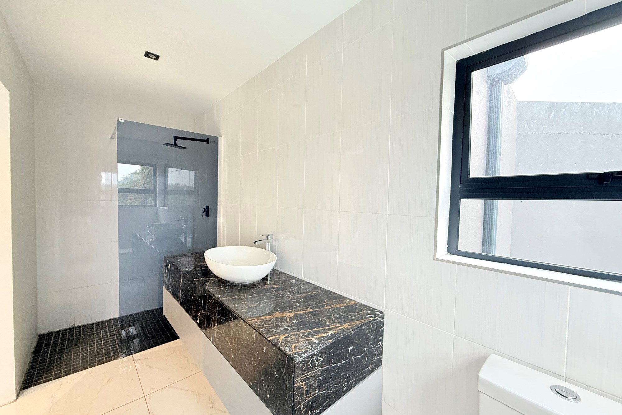 Gourmet Kitchen and Versatile Spaces - The sleek, modern kitchen is a chef`s dream, complete with a large central island, a 5-plate gas hob, and a separate scullery. The kitchen offers ample cupboard space for all your storage needs. Adjacent to the living areas is a flexible room that can be used as a playroom, study, or guest room, with its own separate bathroom for added convenience.