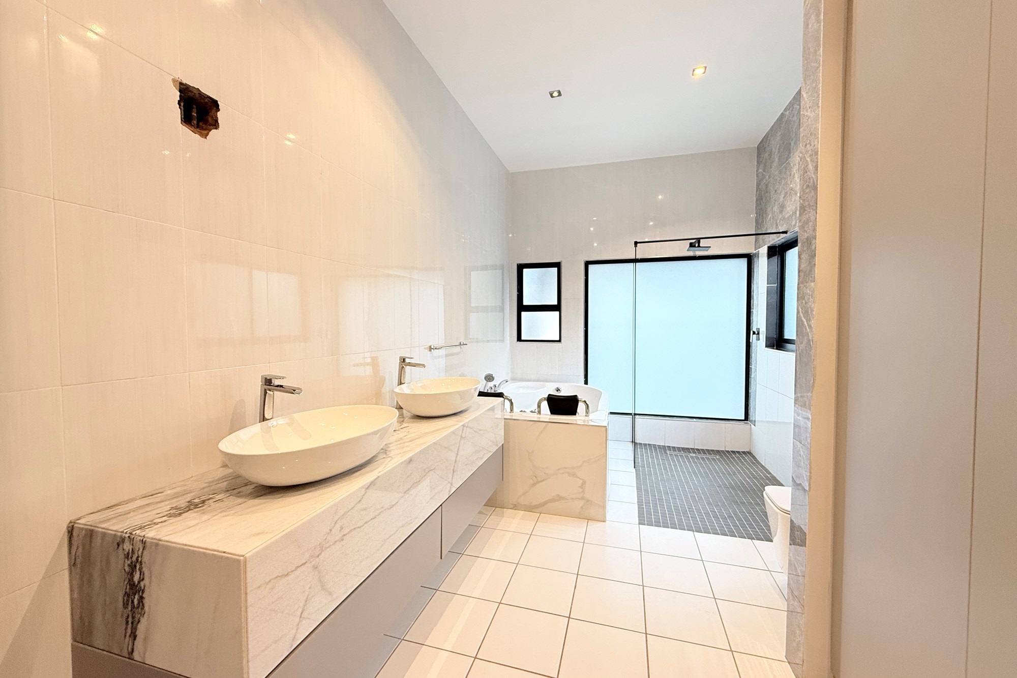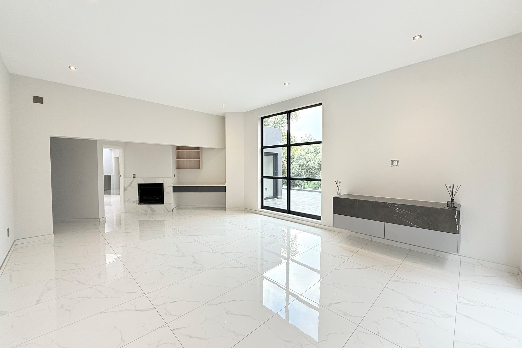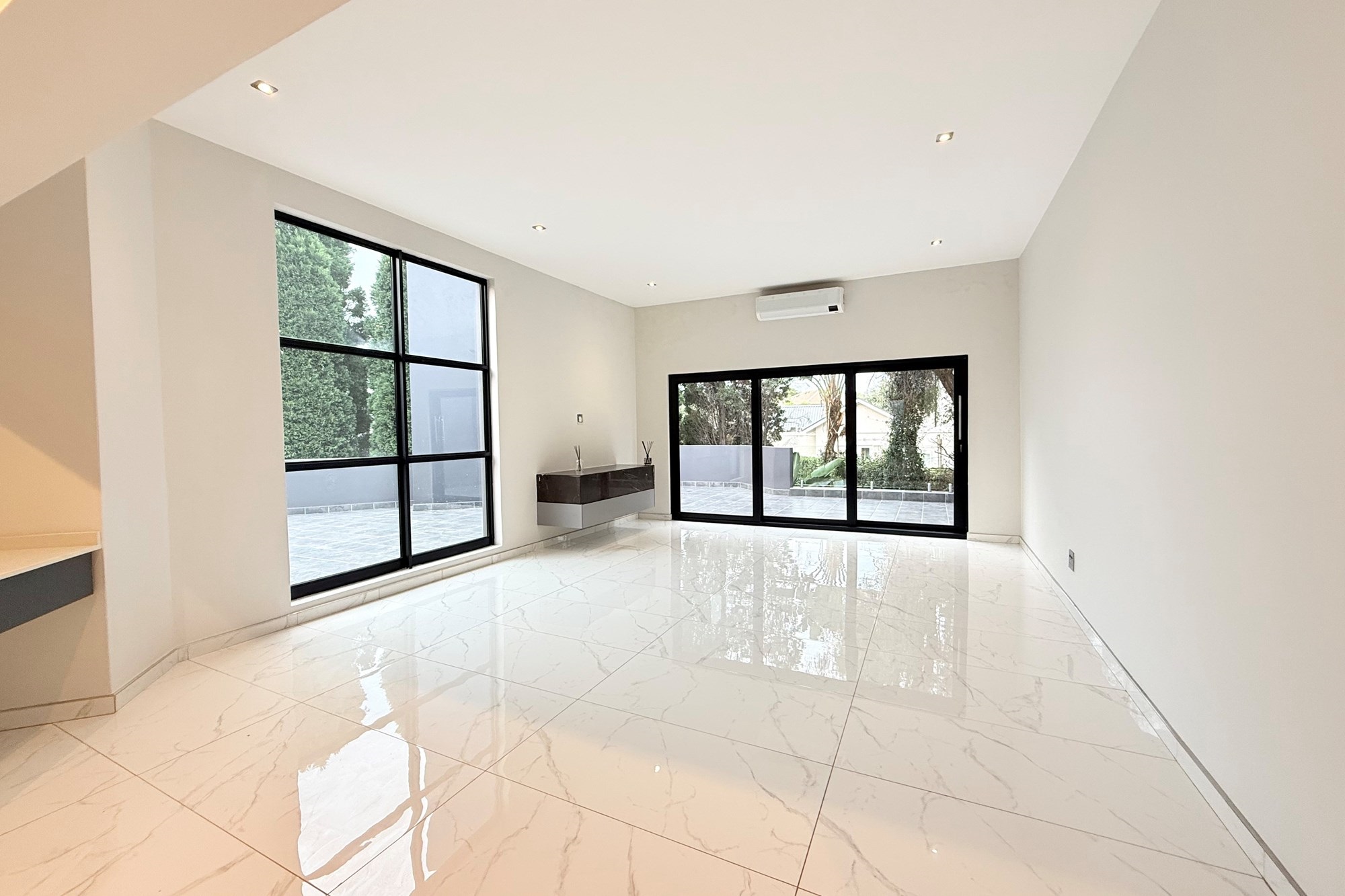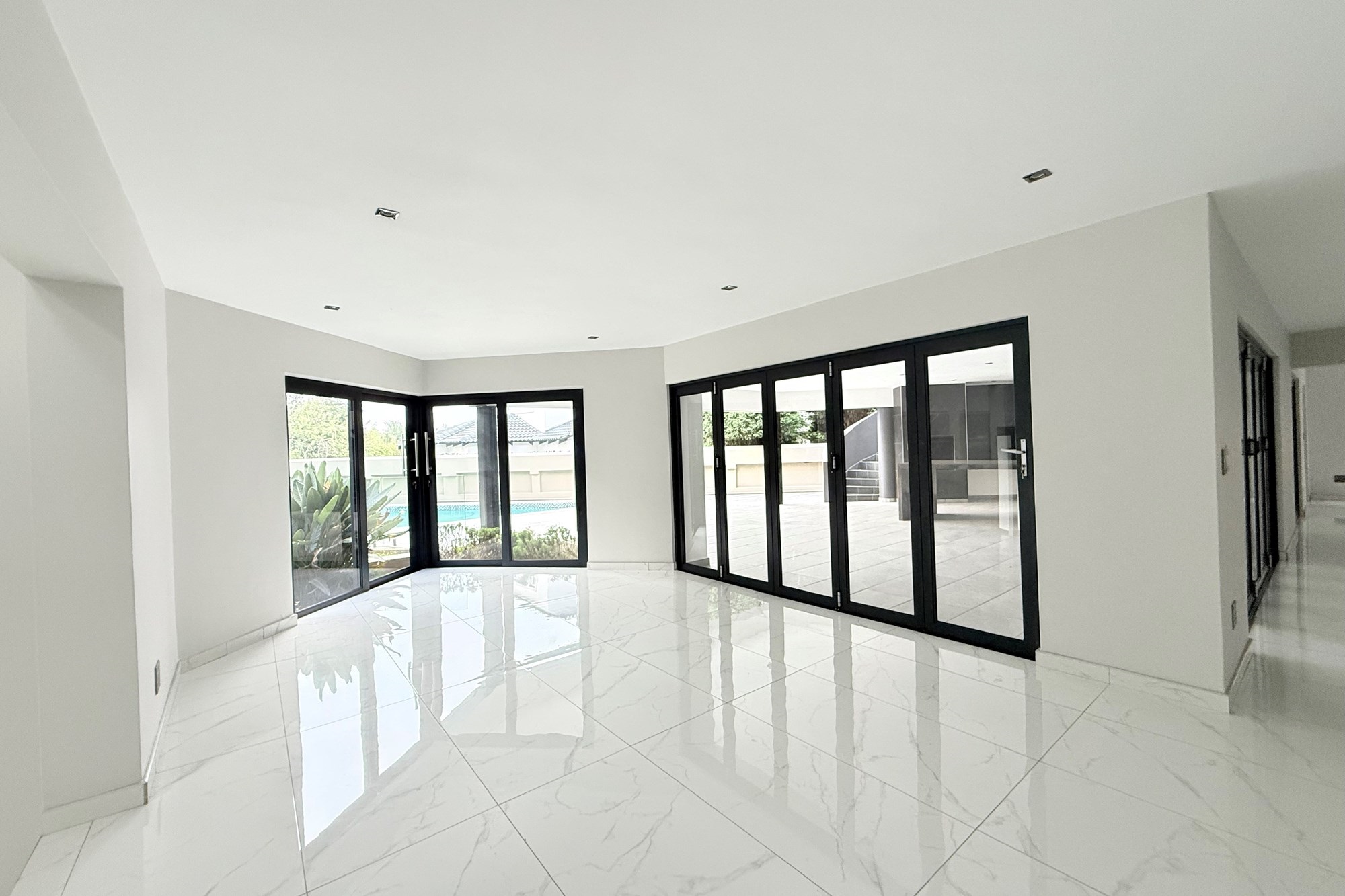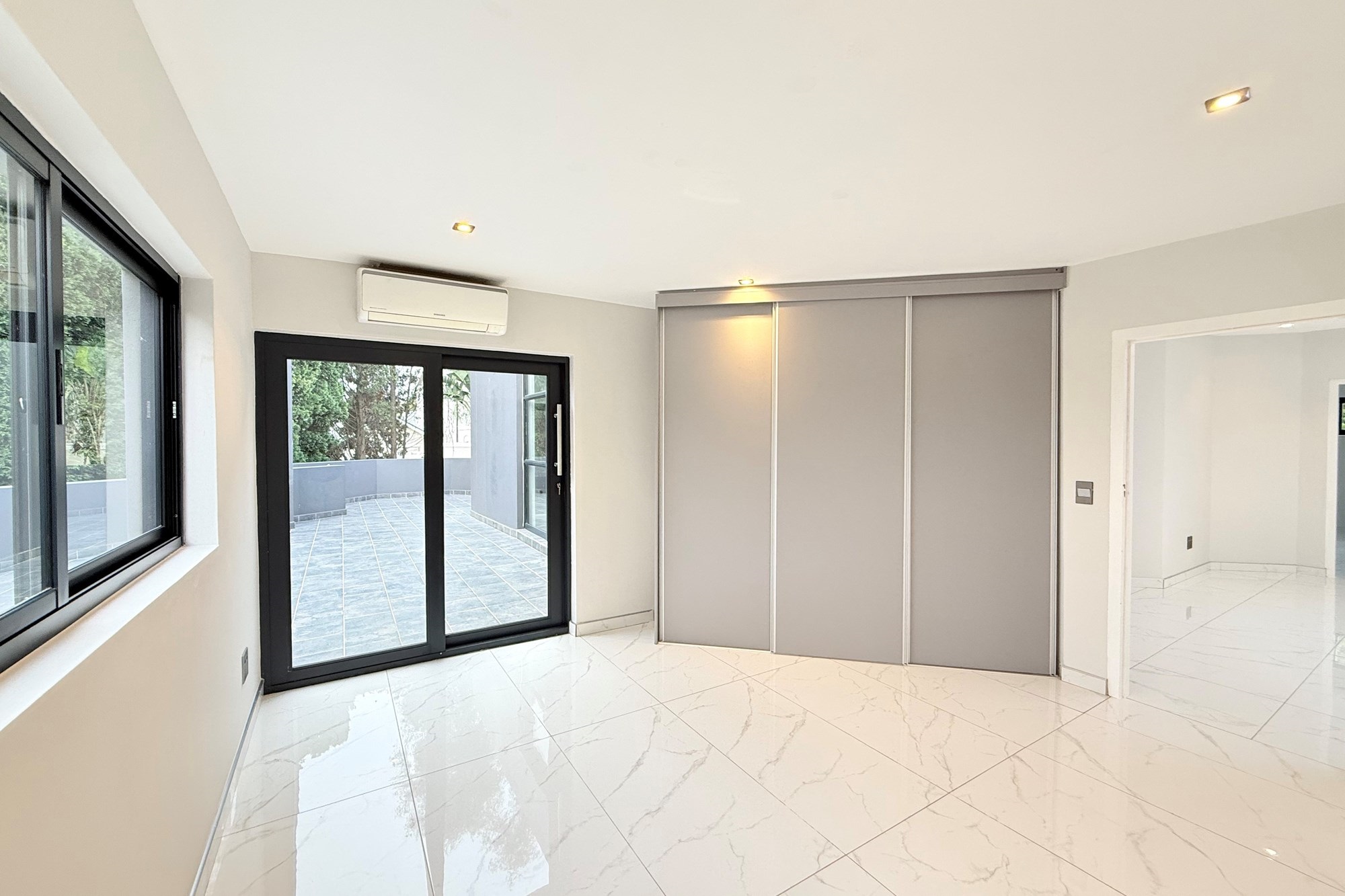 Gourmet Kitchen and Versatile Spaces - The sleek, modern kitchen is a chef`s dream, complete with a large central island, a 5-plate gas hob, and a separate scullery. The kitchen offers ample cupboard space for all your storage needs. Adjacent to the living areas is a flexible room that can be used as a playroom, study, or guest room, with its own separate bathroom for added convenience.