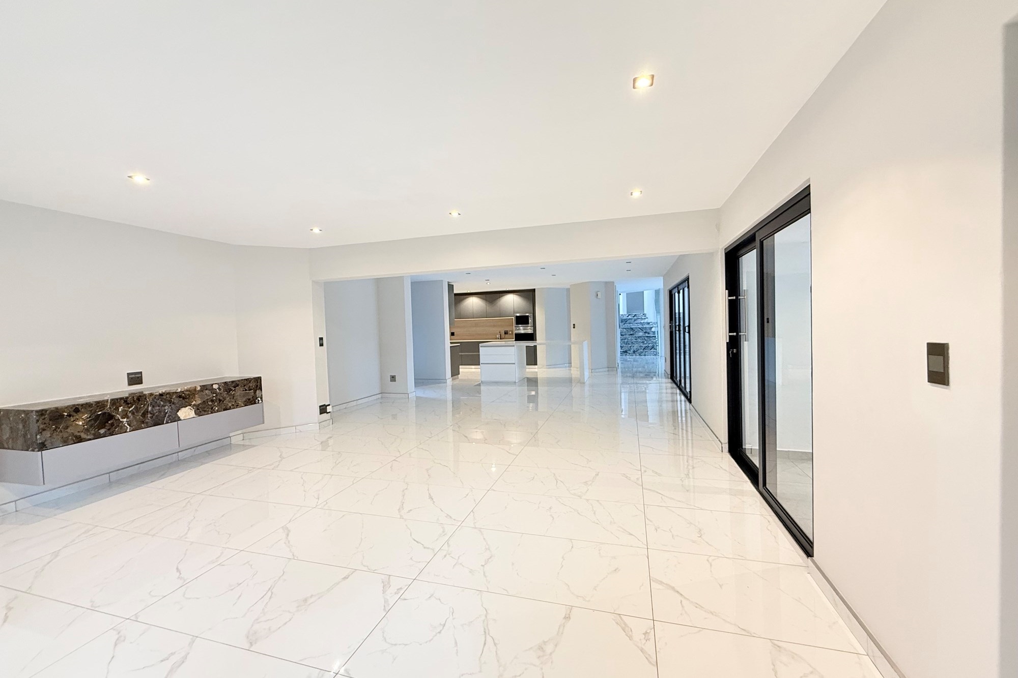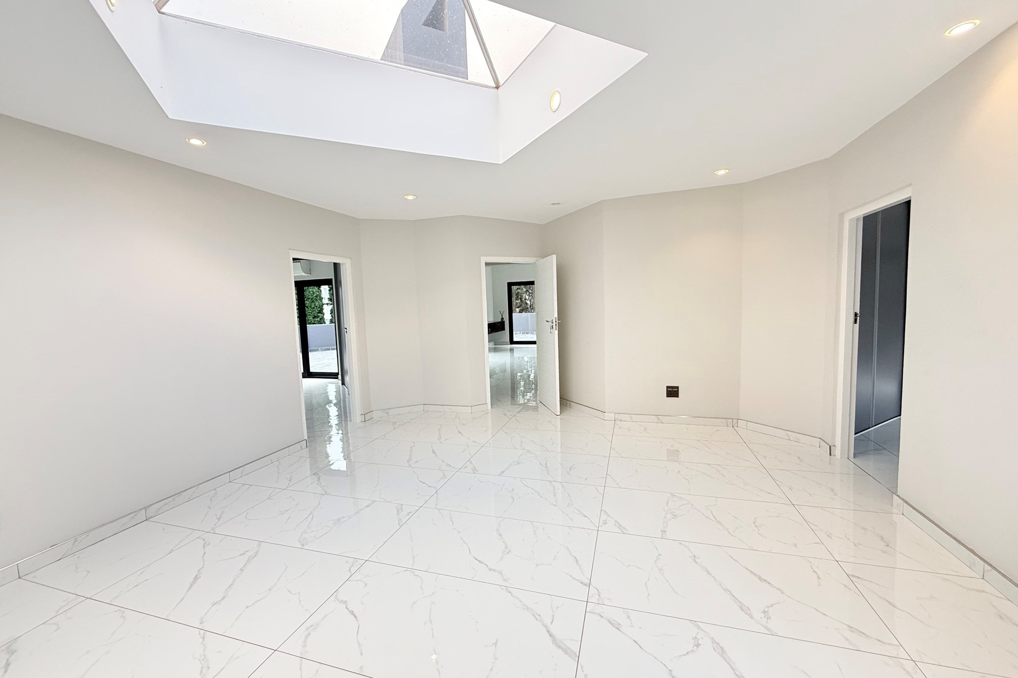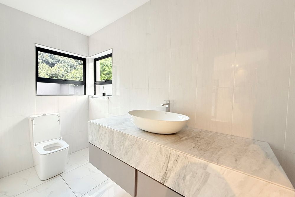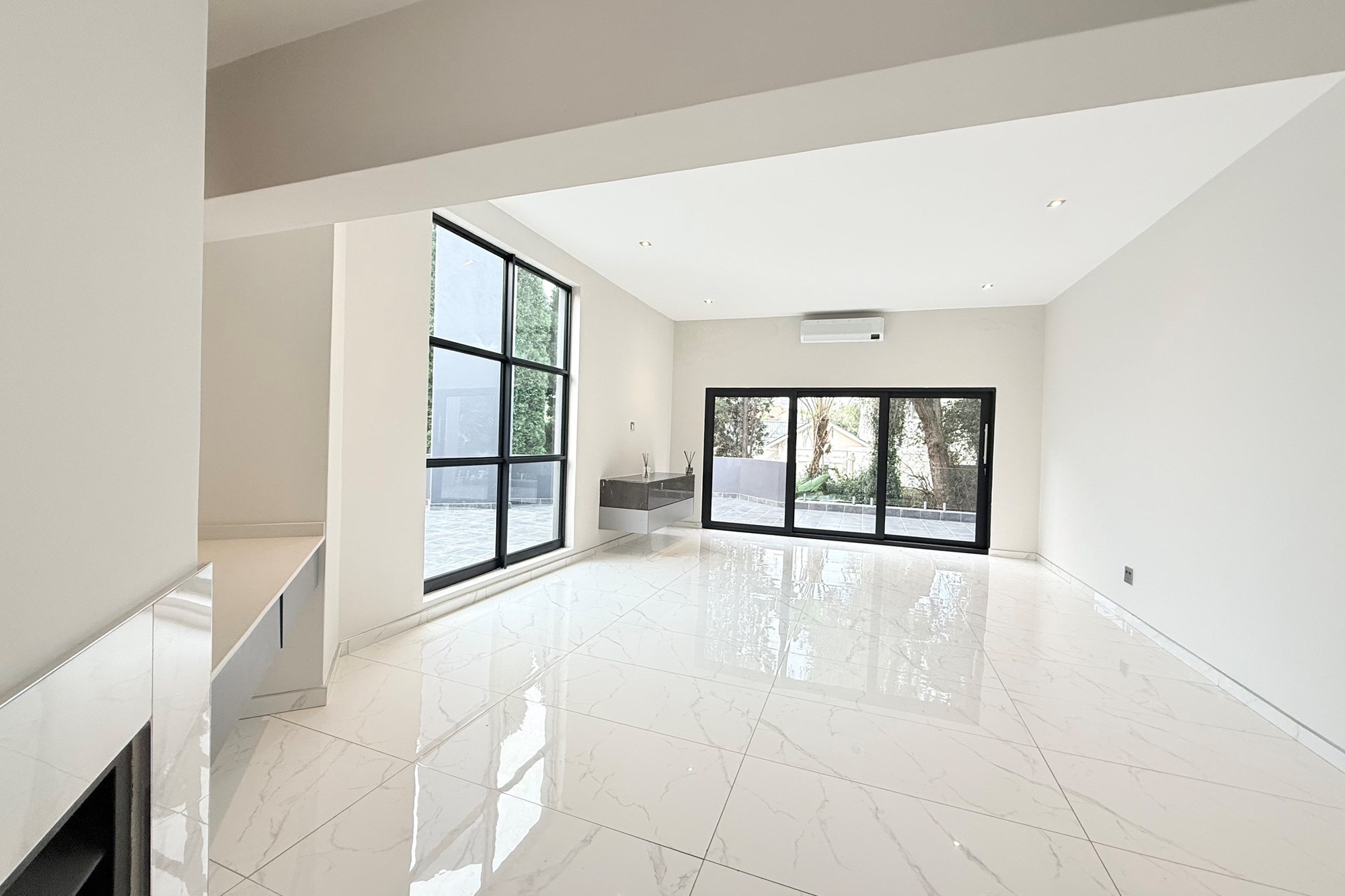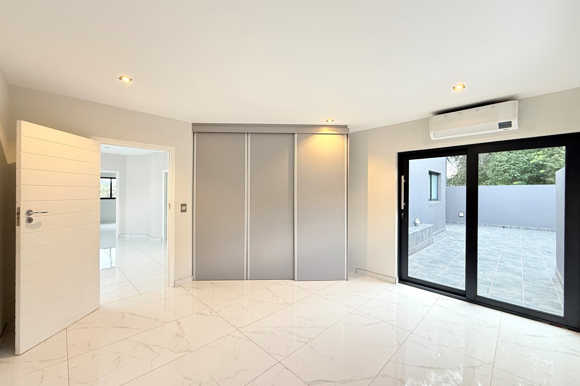 Gourmet Kitchen and Versatile Spaces - The sleek, modern kitchen is a chef`s dream, complete with a large central island, a 5-plate gas hob, and a separate scullery. The kitchen offers ample cupboard space for all your storage needs. Adjacent to the living areas is a flexible room that can be used as a playroom, study, or guest room, with its own separate bathroom for added convenience.