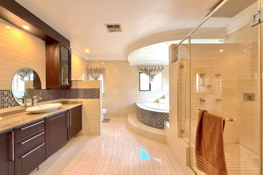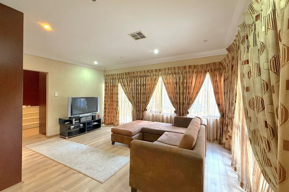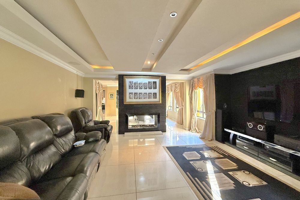 Set on a prime corner stand, this exceptional residence is designed for effortless living and entertaining. A grand double-volume entrance crowned by a dazzling chandelier welcomes you into expansive, light-filled interiors finished with modern elegance. At the heart of the home lies a breath-taking heated indoor pool, seamlessly integrated into the living spaces — the ultimate centrepiece for year-round enjoyment. The open-plan lounge and dining areas flow effortlessly onto the lush garden through sliding doors, while a built-in fireplace adds warmth and ambiance. A sleek bar and versatile indoor/outdoor patio make entertaining both stylish and convenient. The gourmet kitchen is a chef’s delight, featuring state-of-the-art appliances, two hobs, a spacious island with seating, a breakfast bar, a walk-in pantry, and a separate scullery — combining luxury with everyday practicality. A guest cloakroom and dedicated study complete the ground floor, offering both comfort and functionality. Upstairs, a pyjama lounge and cosy reading nook lead to five generously sized bedrooms and four bathrooms, four of which are en-suite. Two bathrooms have been newly renovated with chic, contemporary finishes. The luxurious main suite is a private retreat, complete with its own lounge, dressing room, opulent en-suite, and two balconies with sweeping views across Dainfern. Additional highlights include garaging for up to five cars, full solar system, staff accommodation, a landscaped garden, and a tranquil koi pond. This remarkable home perfectly balances sophisticated entertaining with relaxed family living. Call today to arrange an exclusive viewing of this one-of-a-kind home!