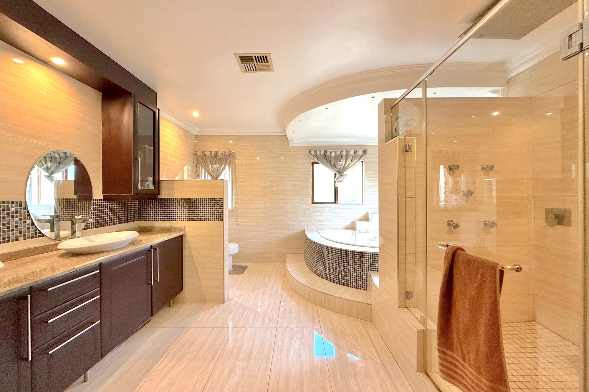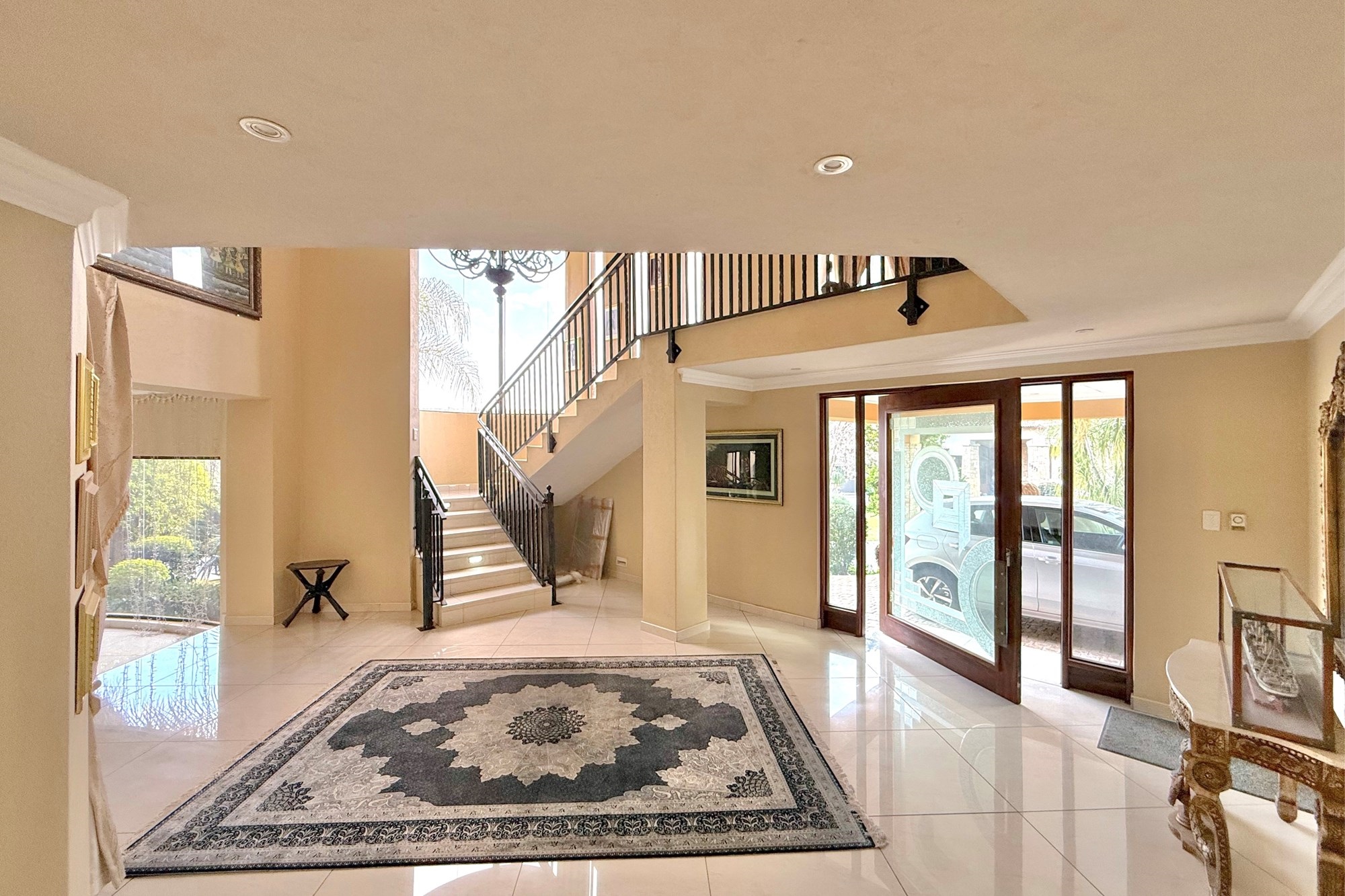 Set on a prime corner stand, this exceptional residence is designed for effortless living and entertaining. A grand double-volume entrance crowned by a dazzling chandelier welcomes you into expansive, light-filled interiors finished with modern elegance.