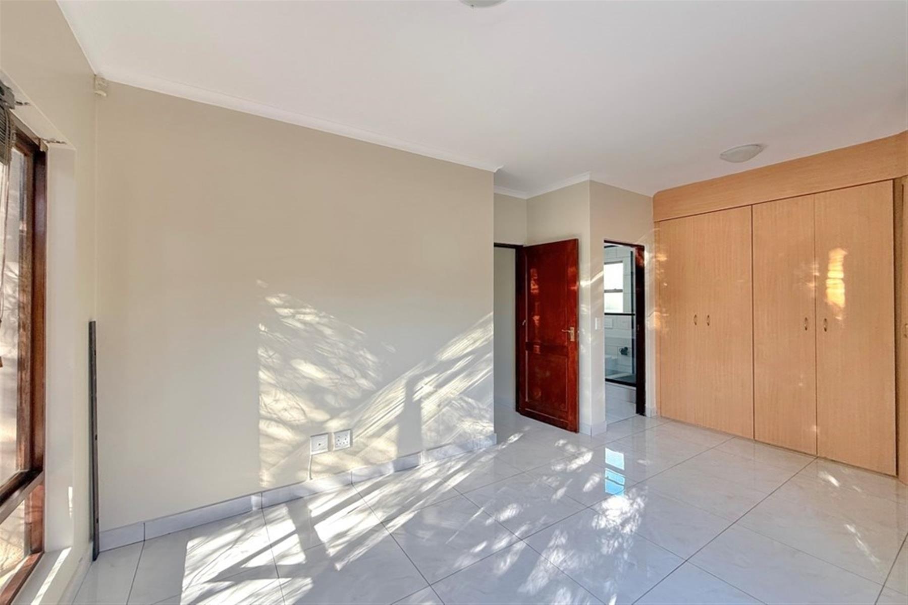 Upstairs, you’ll find three generously sized bedrooms, each featuring built-in cupboards and air conditioning. The main bedroom includes a full en-suite bathroom with both a bath and shower, ample cupboard space, and direct access to a private balcony. A second well-appointed bathroom services the remaining two bedrooms, ensuring comfort and convenience for the whole family.