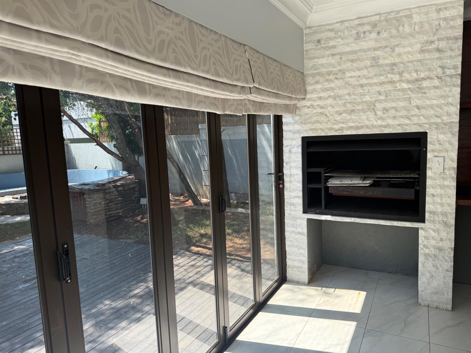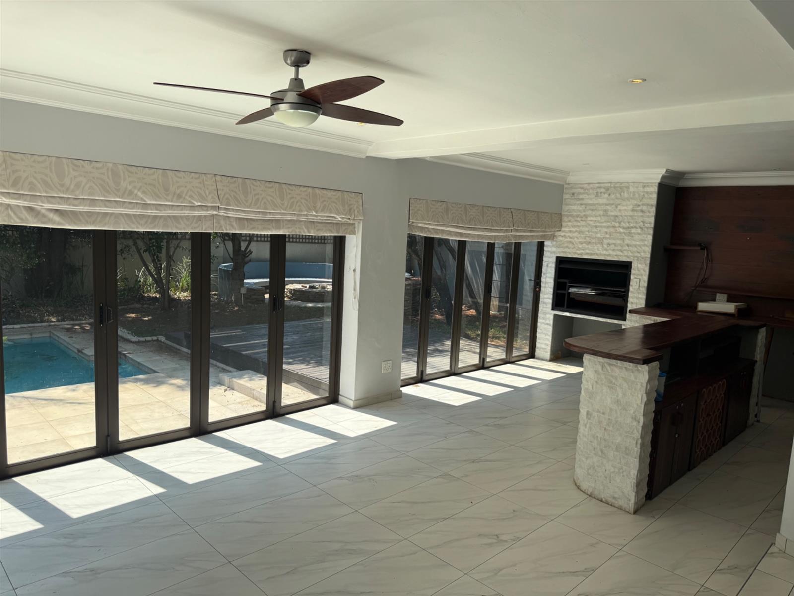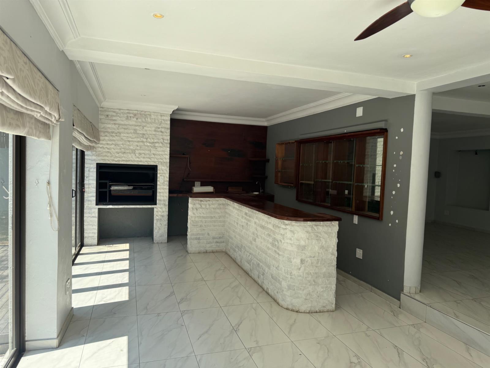 To one side, a cosy fireplace anchors the lounge, the perfect spot for quiet evenings with loved ones, while large glass doors open seamlessly onto the entertainment patio. Here, a built-in bar and braai overlook the sparkling pool, setting the scene for memorable gatherings and long summer afternoons spent in good company.